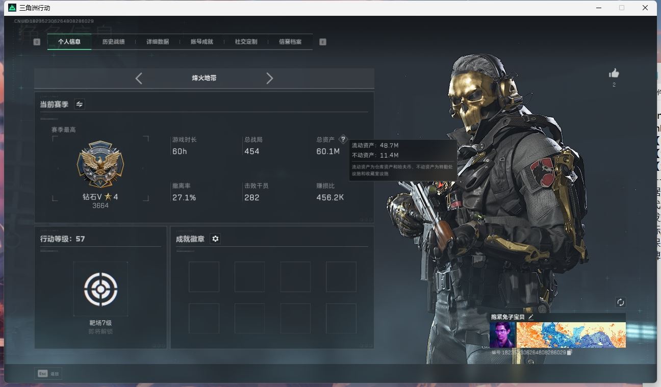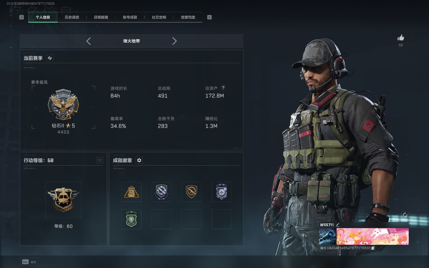 【账号佳】 ljh AK026724 包人脸 行动等级60钻石 总资产172.8m 满体s6赛季3*3【典藏 M7战斗步枪-棱镜攻势S2优品s 腾龙气象感应优品c冰属性】【SCAR-H战斗步枪-启航M250通用机枪-骑士之心AK-12突击步枪-特斯拉线圈UZ1冲锋枪-特斯拉线圈SR-3M紧凑突击步枪-特斯拉线圈腾龙突击步枪-捞点薯条 AWM狙击步枪-捞点薯条93R-捞点薯条联动 M4A1突击步枪-阿米娅联动 勇士冲锋枪-能天使-午夜邮联动 复合弓-黑-天际线联动 CAR-15突击步枪-阿米娅K437突击步枪-北极星 】【近战 北极星 黑鹰】【角色皮肤 无名-夜鹰 蜂医-送葬人无题密令 深蓝-不破誓约 】----安全箱等时效性道具请以游戏内数据为准:详情请看图----截图展示段位不代实际段位,赛季更新等不可抗拒因素发生变化、时限道具不保证所剩时间、标题未写送三角币默认不送】【主播担保+安全至上+性价比 买号卖号只选金牌商家一左友】