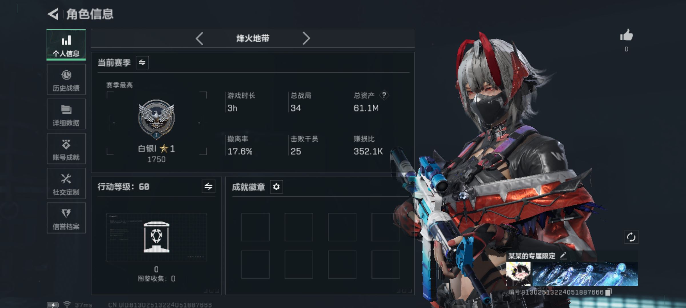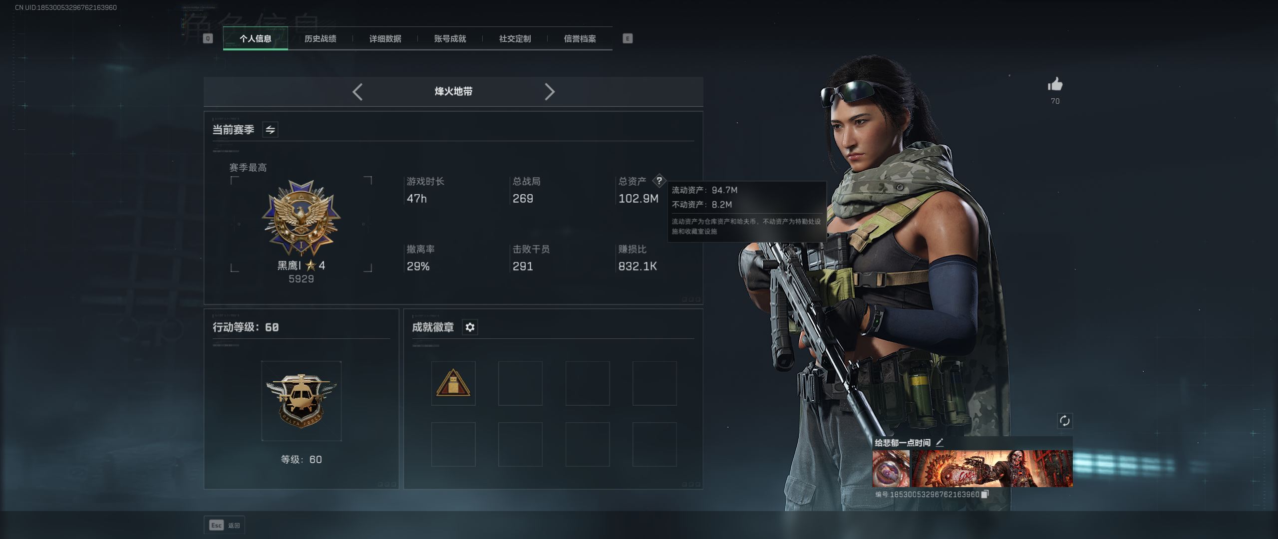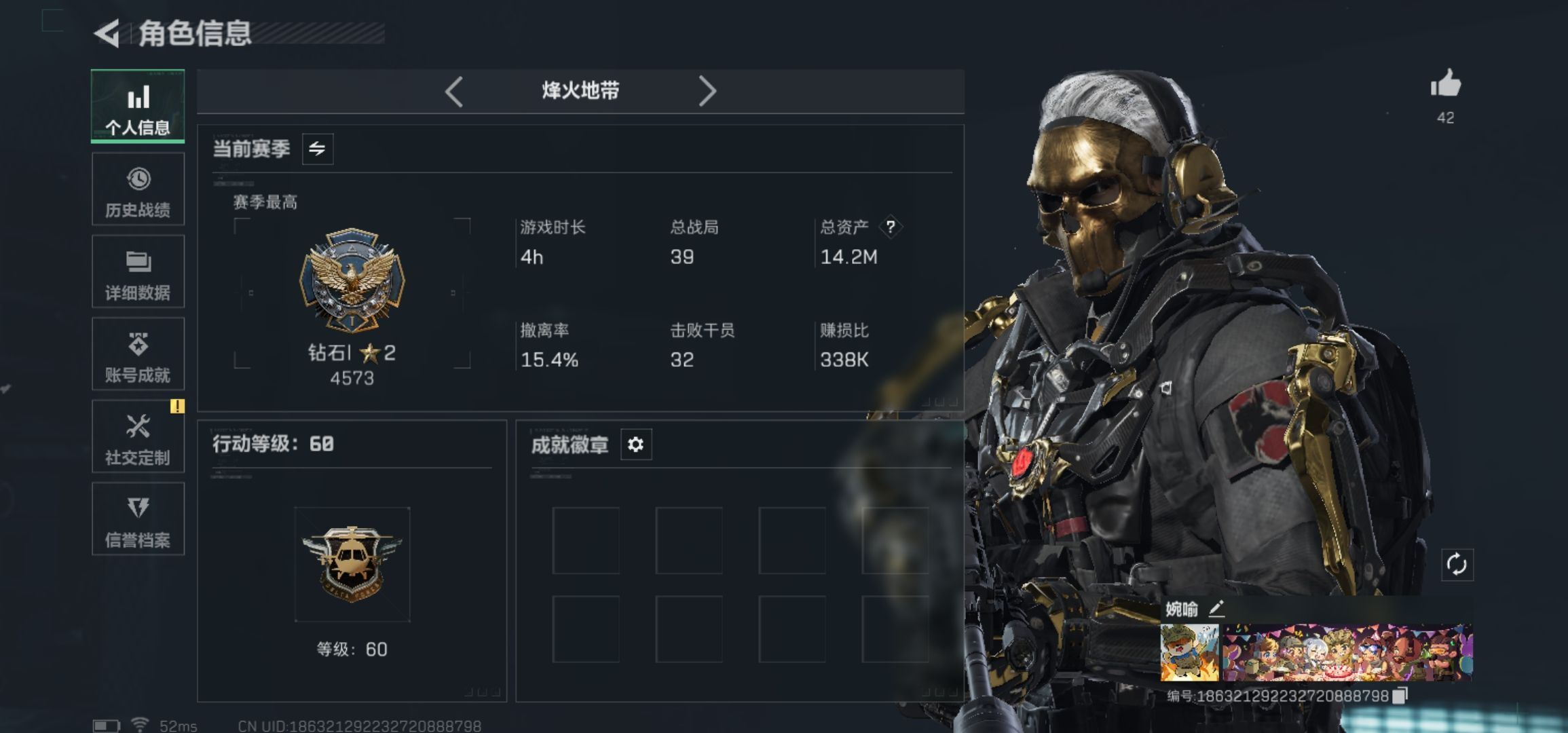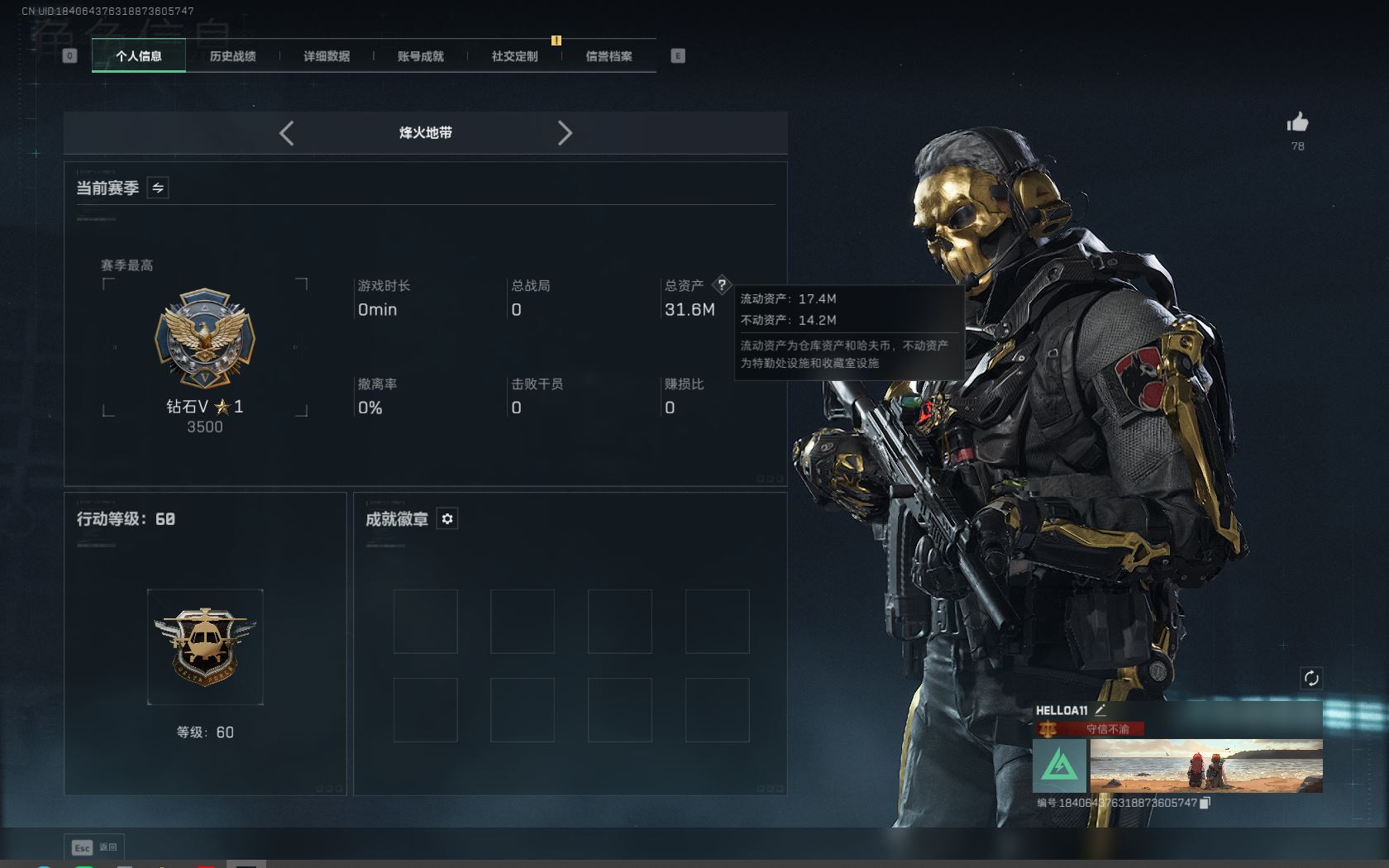 【账号佳】 ff4062 三角洲Q 行动等级60级总资产32M红狼电锯骇爪维什戴尔不破深蓝
