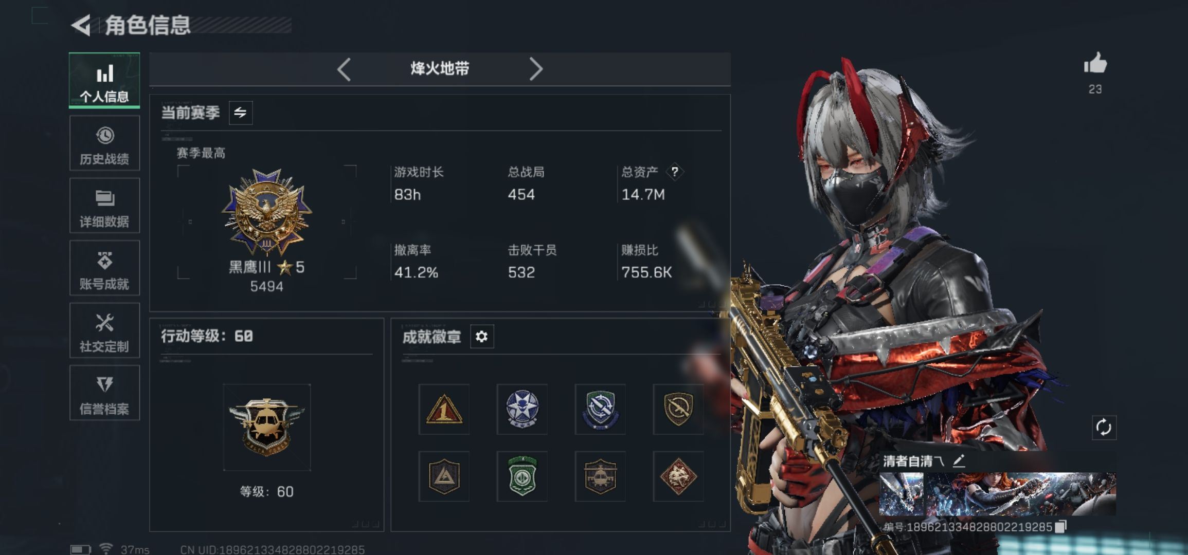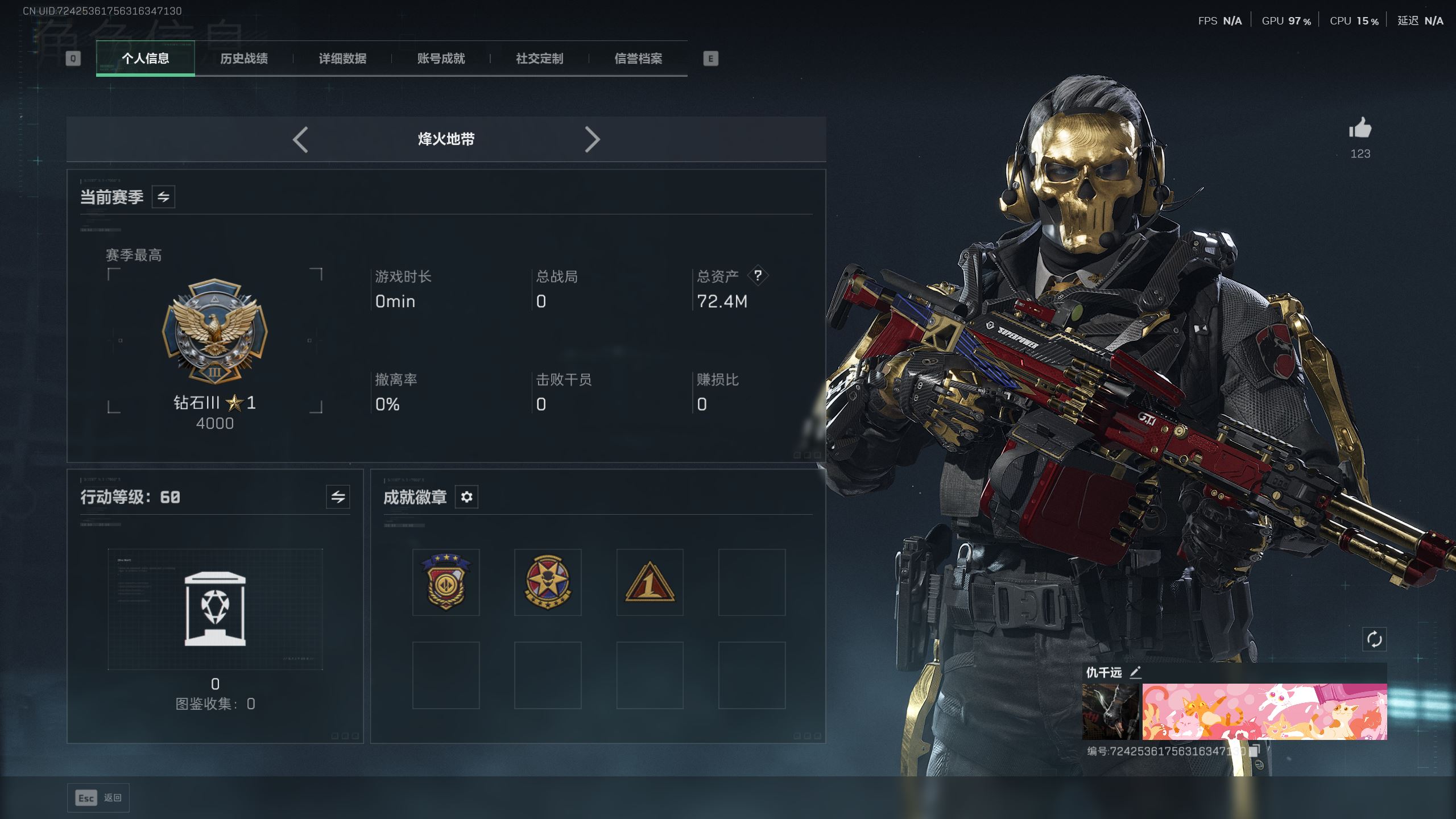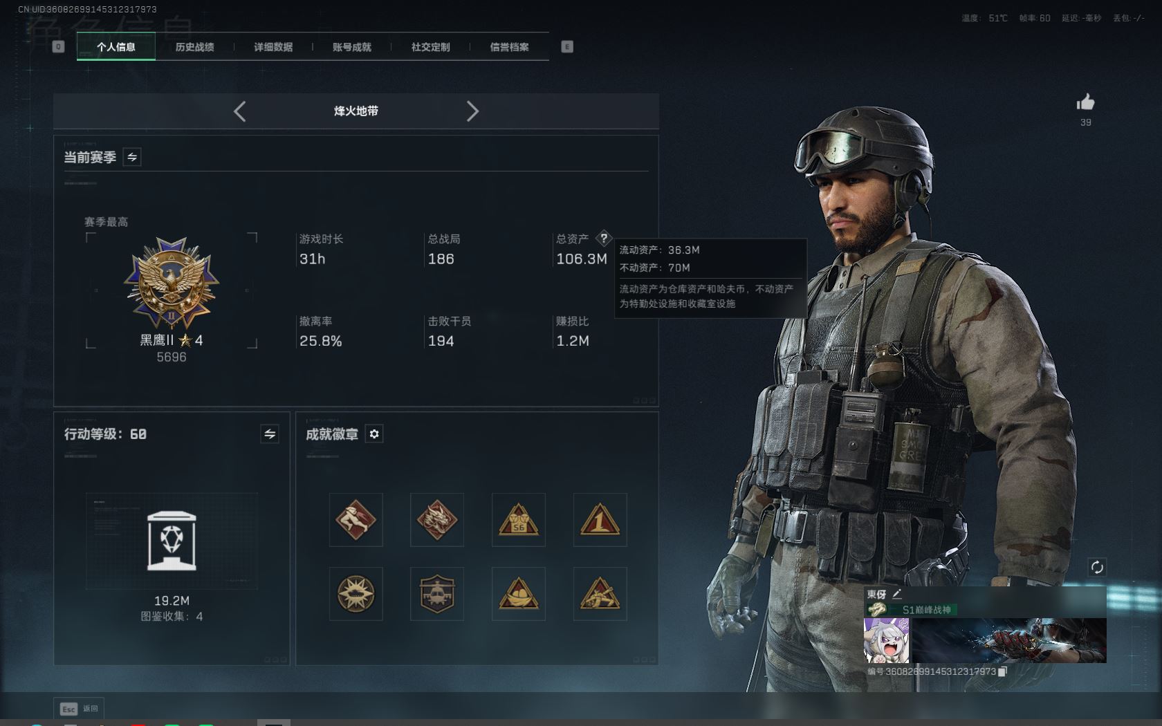 【账号佳】 ff4062 三角洲Q 行动等级60级总资产32M红狼电锯骇爪维什戴尔不破深蓝