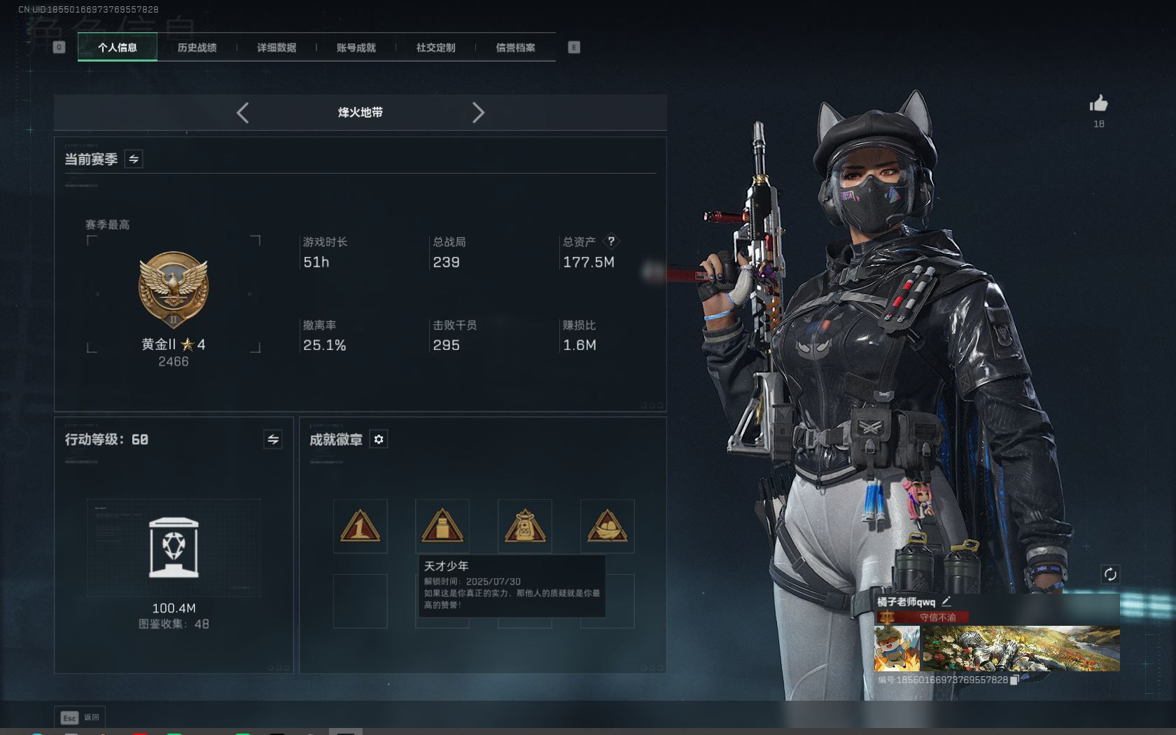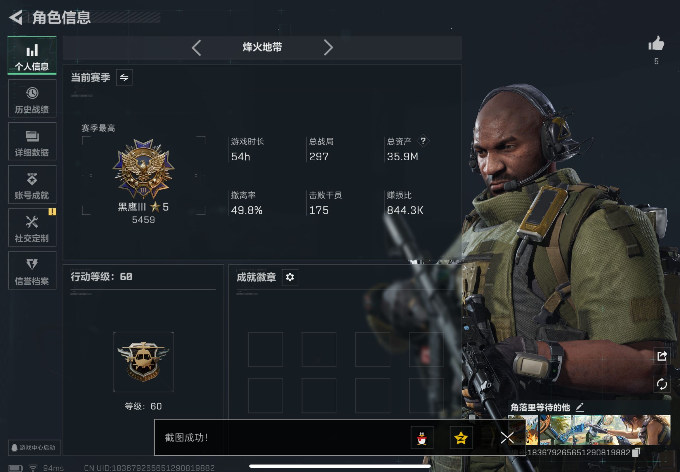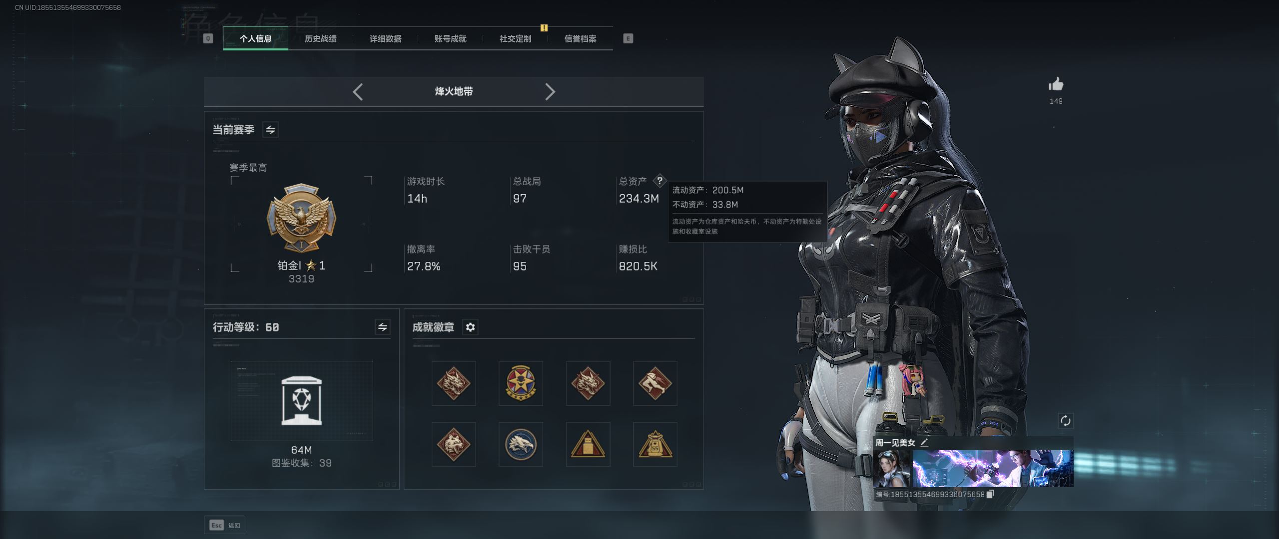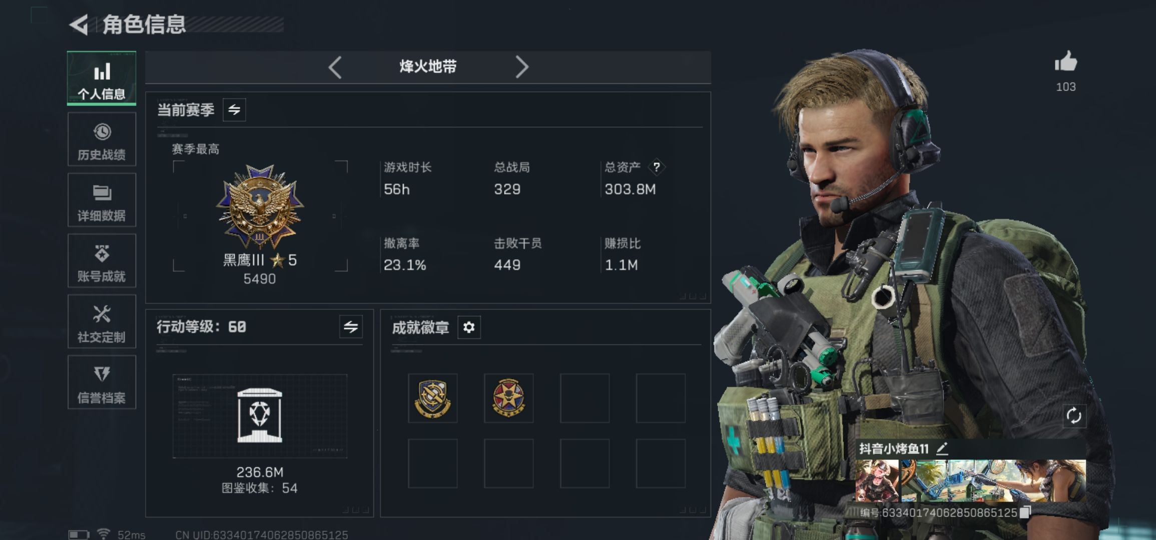 【账号佳】 ff4062 三角洲Q 行动等级60级总资产32M红狼电锯骇爪维什戴尔不破深蓝