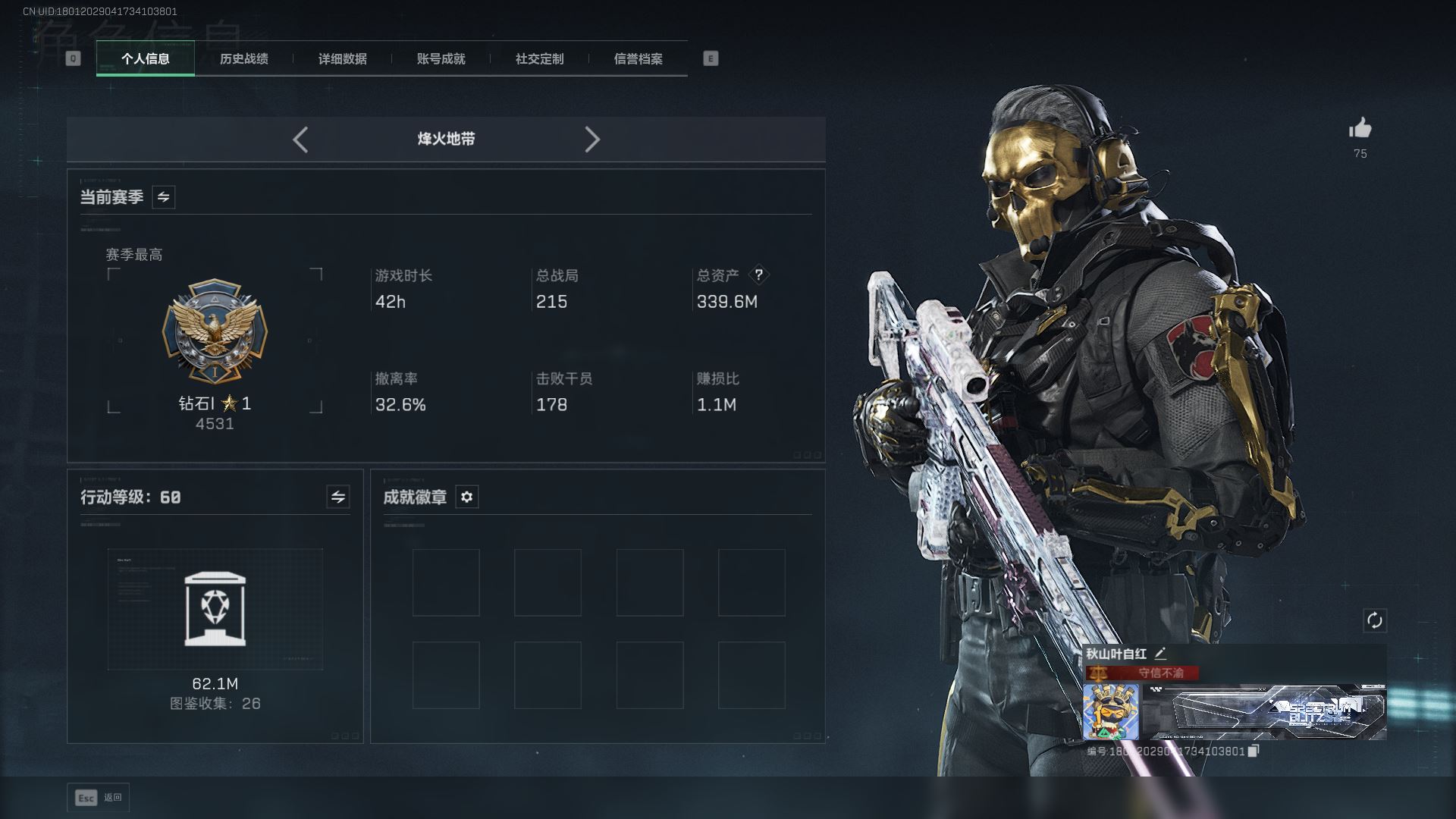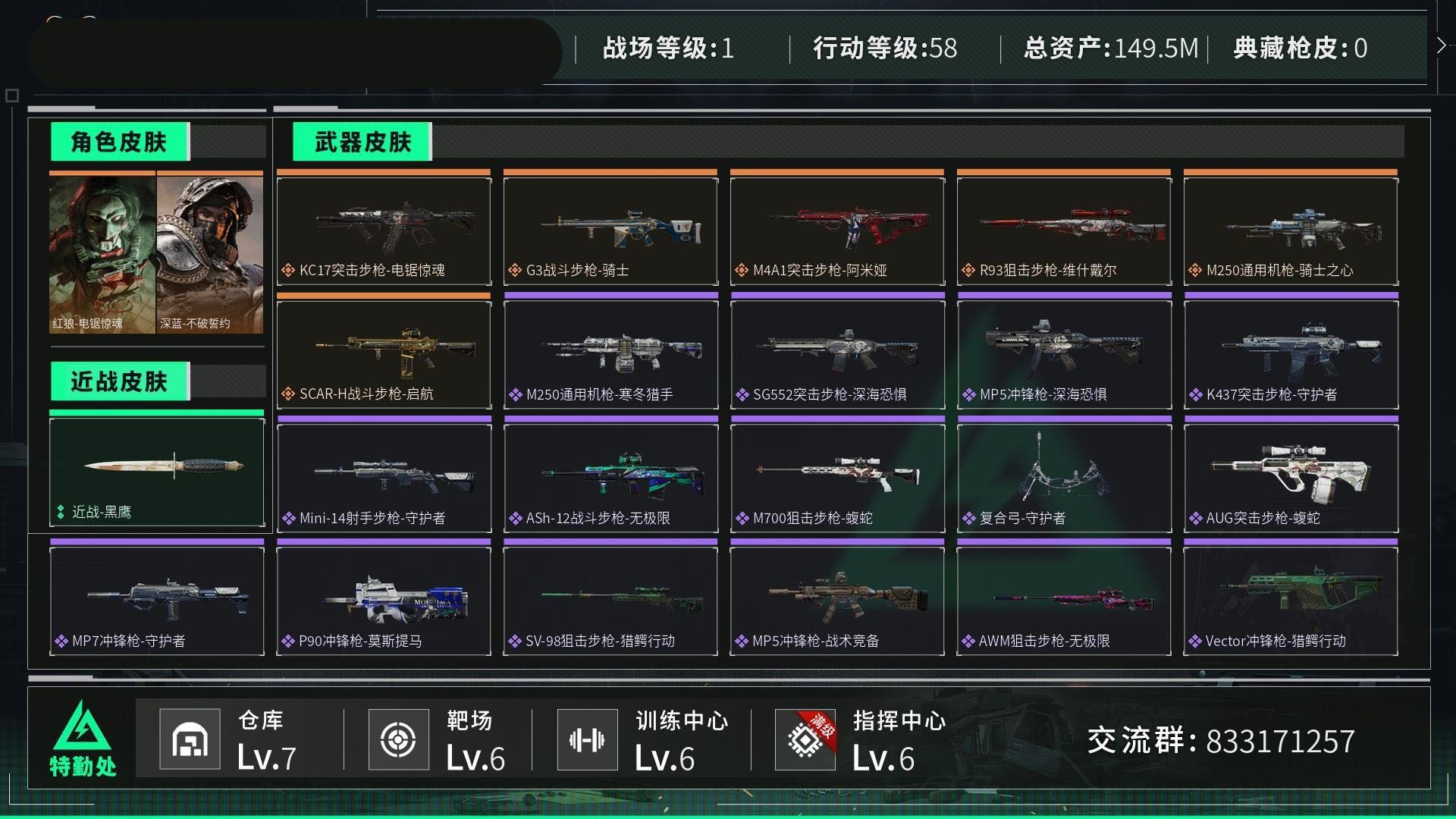 【账号佳】 R46273 可二次 QQ 【行动等级60】【总资产73.9M】【战场等级47】【仓库8 指挥中心6 训练中心7 靶场5 潜水中心1 收藏室1】【黑鹰】【M4A1突击步枪蚀金玫瑰 M4A1突击步枪阿米娅 ASH12战斗步枪鹅鸭杀 M16A4突击步枪狩猎时刻 SG552突击步枪运动员 AK12突击步枪夜鹰 SCARH突击步枪启航 SXARH战斗步枪水墨云图 SCARH战斗步枪铁艺苍穹 G3战斗步枪狩猎时刻 SAR15突击步枪阿米娅 腾龙突击步枪捞点薯条 KC17突击步枪电锯惊魂 Vector冲锋枪能天使 vector冲锋枪狩猎时刻 SMG45冲锋枪骑士 勇士冲锋枪能天使午夜邮差 QCQ17冲锋枪鹅鸭杀 725双管散弹枪送葬人无题密令 M250通用机枪骑士之心 QJB201轻机枪鹅鸭杀 SR25射手步枪水墨云图 AWM狙击步枪捞点薯条 93R捞点薯条 复合弓黑天际线】【红狼电锯惊魂 威龙壮志凌云 无名夜鹰 蜂医送葬人无题密令 蛊能天使午夜邮差 深蓝不破誓约 露娜黑天际线】各种道具详情看截图、低价出售找回包 赔、截图展示段位不带表实际段位,如赛季更新等不可抗拒因素发生变化、时限道具不保证所剩时间、标题未写送点券默认不送【卖号买号首选亿梦】