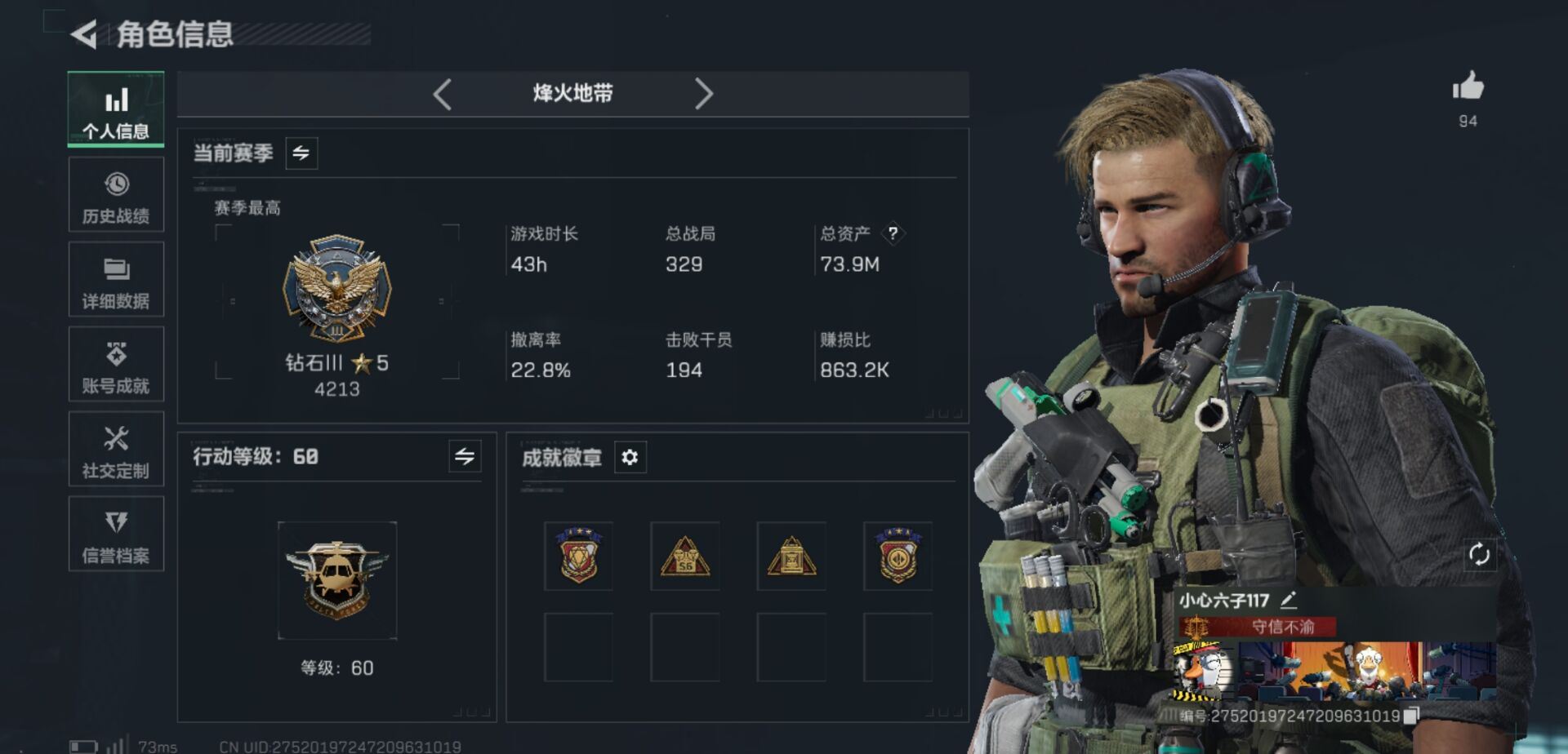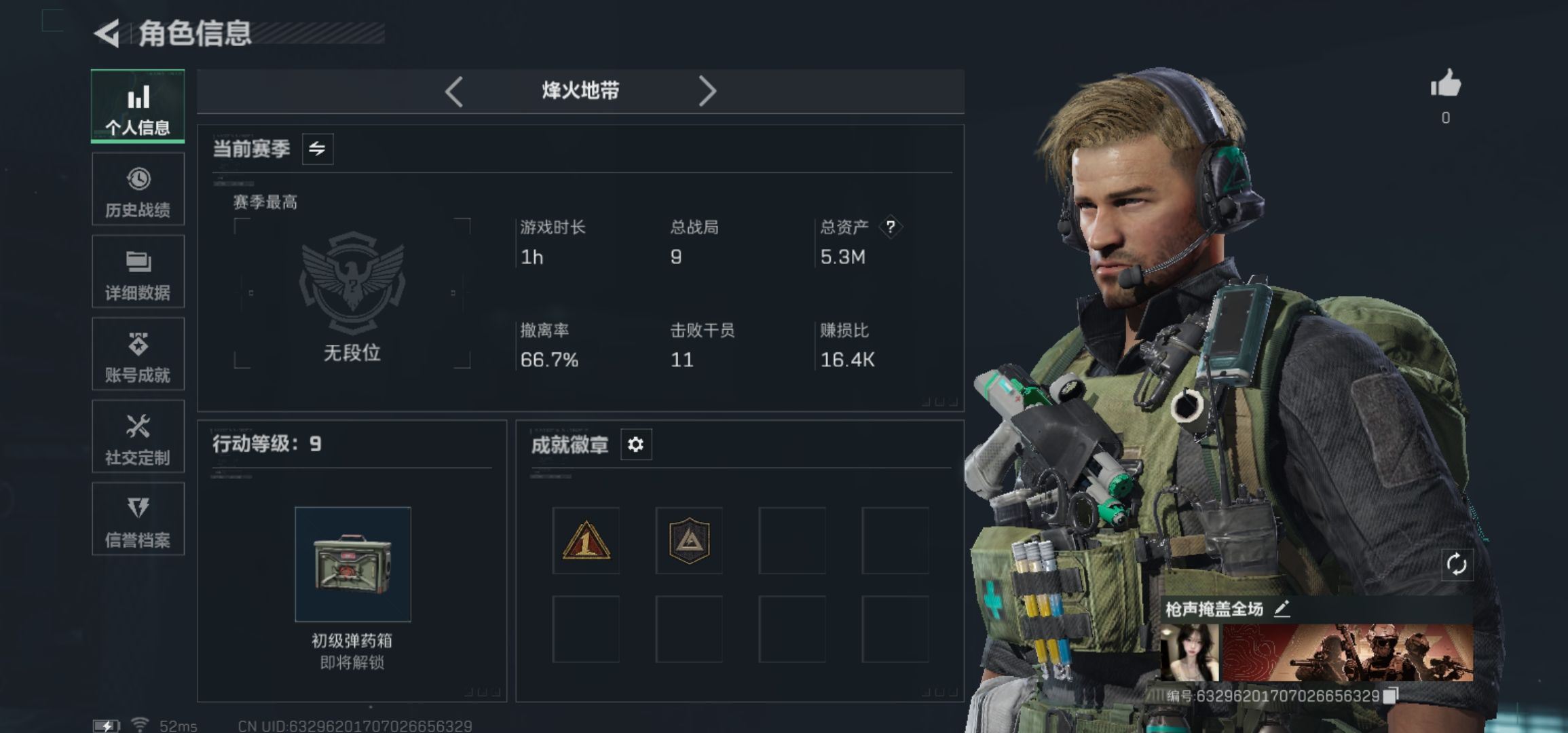 【账号佳】 胖37943战场等级:50 校官,行动等级:60 钻石【哈夫币49W【总资产】112M【货币】26三角币/18曼德尔币/0三角券【安全箱】基础安全箱2(1x2)/进阶安全箱4(2x2)/S6高级安全箱6(2x3)【通行证】烽火地带限定版【特勤处】制药台Lv.3/工作台Lv.3/仓库Lv.8/防具台Lv.3/训练中心Lv.4/靶场Lv.4/技术中心Lv.3/指挥中心Lv.3/潜水中心Lv.0/收藏室Lv.1【角色皮肤】露娜-黑天际线/红狼-蚀金玫【已拥有捆绑包】北极星捆绑包/捞点薯条捆绑包/特斯拉线圈捆绑包/【近战皮肤】近战-黑鹰/近战-北极星/【传说典藏】腾龙突击步枪-气象感应(优品C)/【步枪皮肤】M4A1突击步枪-蚀金玫瑰/QBZ95-1突击步枪-曙光/ASh-12战斗步枪-飓风行动/AUG突击步枪-蝮蛇/AKM突击步枪-林中猎手/K437突击步枪-北极星/AS Val突击步枪-典狱官/SCAR-H战斗步枪-囚徒/M16A4突击步枪-竞赛选手/CAR-15突击步枪-阿米娅/M4A1突击步枪-阿米娅/腾龙突击步枪-捞点薯条/AK-12突击步枪-特斯拉线圈/SR-3M紧凑突击步枪-特斯拉线圈/ASh-12战斗步枪-无极限/PTR-32突击步枪-工业狂潮/G3战斗步枪-骑士/腾龙突击步枪-聚光灯/SCAR-H战斗步枪-启航/SR-3M紧凑突击步枪-战术竞备/【冲锋枪皮肤】UZI冲锋枪-特斯拉线圈/QCQ171冲锋枪-北极星/勇士冲锋枪-能天使-午夜邮差/P90冲锋枪-紧急戒备/MP7冲锋枪-守护者/勇士冲锋枪-工业狂潮/MP5冲锋枪-战术竞备/【霰弹枪皮肤】S12K霰弹枪-曙光/M1014霰弹枪-林中猎手/【轻机枪皮肤】PKM通用机枪-蝮蛇/M250通用机枪-囚徒/QJB201轻机枪-OldHabits/M250通用机枪-骑士之心/【精准射手步枪皮肤】SR-25射手步枪-水墨云图/Mini-14射手步枪-守护者/【狙击步枪皮肤】SVD狙击步枪-阿萨拉工艺/M700狙击步枪-竞技风/SV-98狙击步枪-囚徒/R93狙击步枪-竞赛选手/SV-98狙击步枪-林中猎手/AWM狙击步枪-捞点薯条/【手枪皮肤】93R-捞点薯条/【特殊武器】复合弓-黑-天际线/复合弓-守护者/【挂饰】挂饰-复合弓/挂饰-枪匠/诡影狙击兵/诡影喷火兵/挂饰-骑士之心/挂饰-启程/挂饰-蚀金玫瑰/持盾者/挂饰-Relink/演出导演/重装记者/阿萨拉喷火兵/阿萨拉盾兵/挂饰-北极星/阿萨拉霰弹兵/阿萨拉狙击兵/挂饰-阿米娅/挂饰-来点薯条/挂饰-特斯拉线圈/阿萨拉徽章/紧急会议/【载具】M1A4坦克-烈焰/侦察直升机-烈焰/