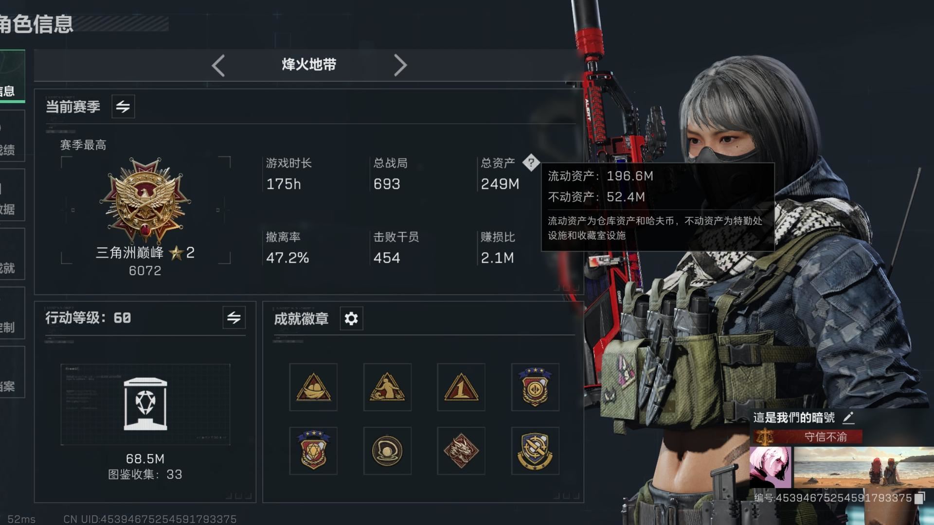 【账号佳】 【乐乐Z68】【资产36M】【现金74584】【特勤7443】【怜悯】【干员皮壮志凌云】【街头之王】