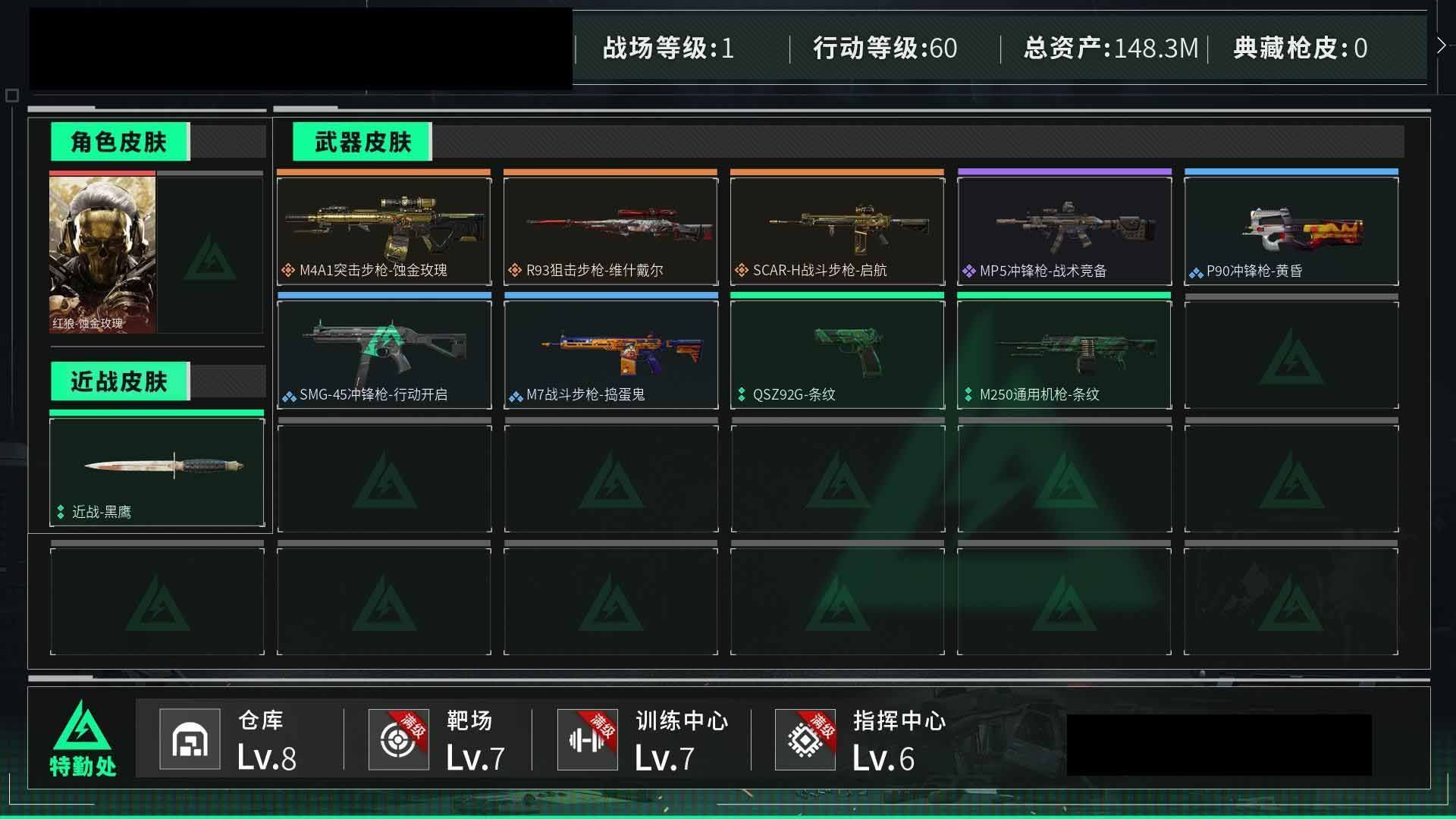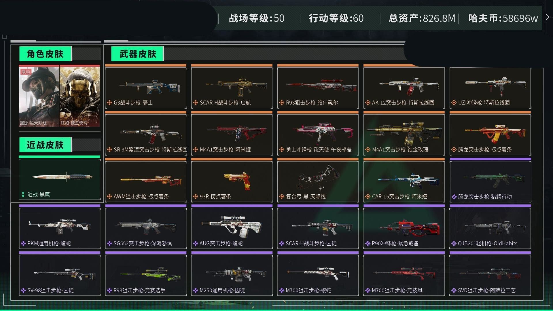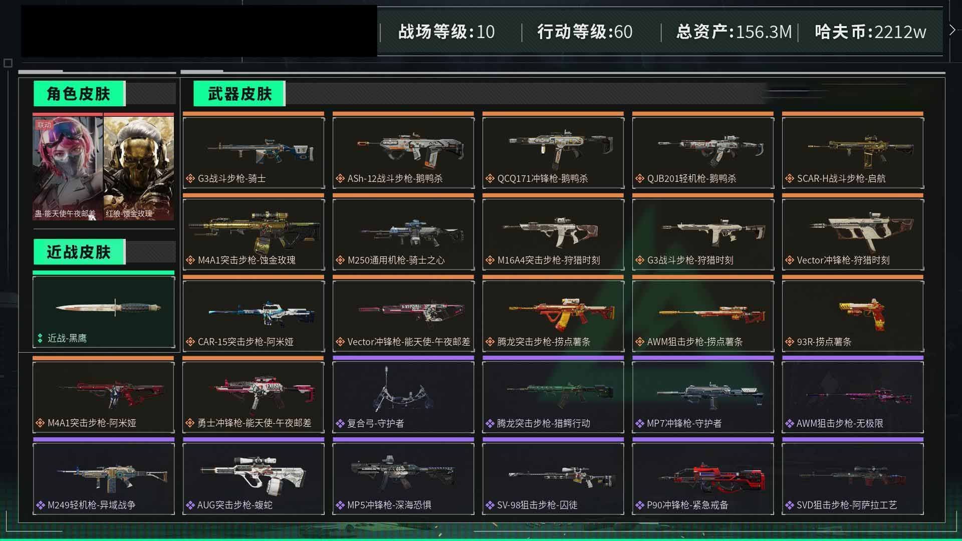 【账号佳】 汤26975 总资产 58.7m 哈夫币3901k 刀皮北极星 干员蚀金玫瑰 黑天际线 夜鹰 无题密令 仓库8级 训练7级 靶场7级详情看图