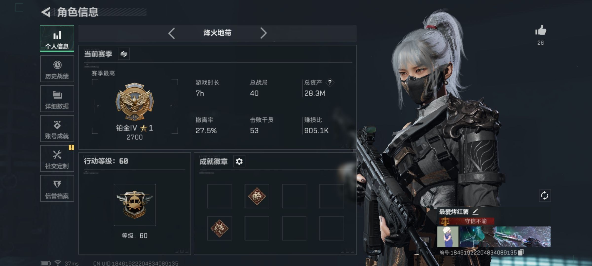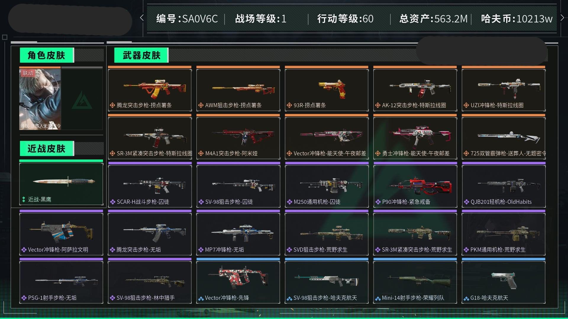 【账号佳】 R45050 可二次QQ【行动等级60】【总资产28.2m】【战场等级15】【收藏室1级】【刀:黑鹰】【红狼蚀金玫瑰+骇爪维什戴尔】【m4突击步枪阿米娅-蚀金玫瑰-ash战斗步枪鹅鸭杀+m16突击步枪狩猎时刻+ak突击步枪特斯拉线圈+scar战斗步枪启航+g3战斗步枪骑士-狩猎时刻+car突击步枪阿米娅+vector冲锋枪狩猎时刻+UZI冲锋枪特斯拉线圈+sr紧凑突击步枪特斯拉线圈+勇士冲锋枪能天使午夜邮差+qcq冲锋枪鹅鸭杀+m250通用机枪骑士之心+qjb轻机枪鹅鸭杀+R93狙击步枪维什戴尔】各种道具详情看截图、低价出售找回包 赔、截图展示段位不代 表实际段位,如赛季更新等不可抗拒因素发生变化、时限道具不保证所剩时间、标题未写送点劵默认不送【卖号买号首选亿梦】