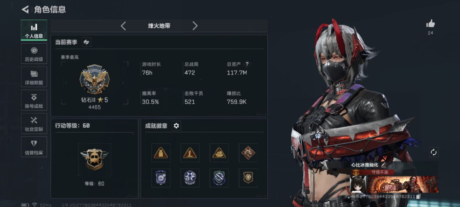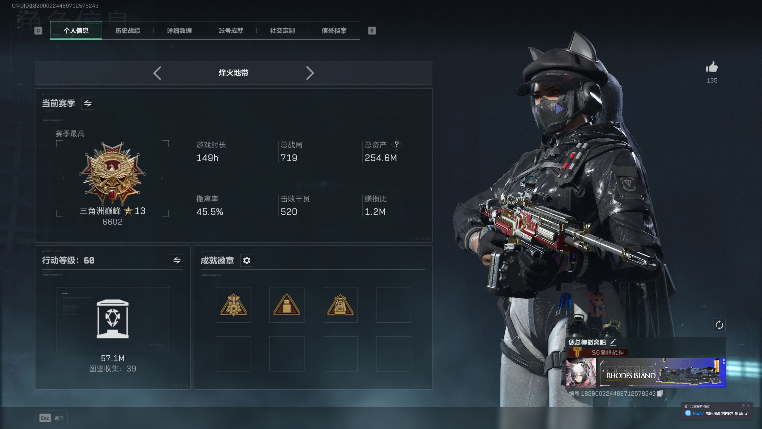 【账号佳】 R44137 可二次QQ【行动等级60】【总资产155.2m】【战场等级28】【训练中心6级】【刀:北极星+黑海+黑鹰】【红狼蚀金玫瑰+威龙飞虎+无名夜鹰+蜂医送葬人无题密令+露娜黑天际线】【m4突击步枪蚀金玫瑰-阿米娅+ash战斗步枪鹅鸭杀+ak突击步枪特斯拉线圈-夜鹰+scar战斗步枪启航+car突击步枪阿米娅-黑鹰坠落+腾龙突击步枪捞点薯条+k437突击步枪北极星+mp5冲锋枪黑海+UZI冲锋枪特斯拉线圈+smg冲锋枪骑士+sr紧凑突击步枪特斯拉线圈+勇士冲锋枪能天使午夜邮差+qcq冲锋枪鹅鸭杀-北极星+725双管霰弹枪送葬人无题密令+m250通用机枪骑士之心+qjb轻机枪鹅鸭杀-黑海+m14射手步枪电锯惊魂+awm捞点薯条+93R捞点薯条+复合弓黑天际线】详情请看图片【卖号买号首选亿梦】