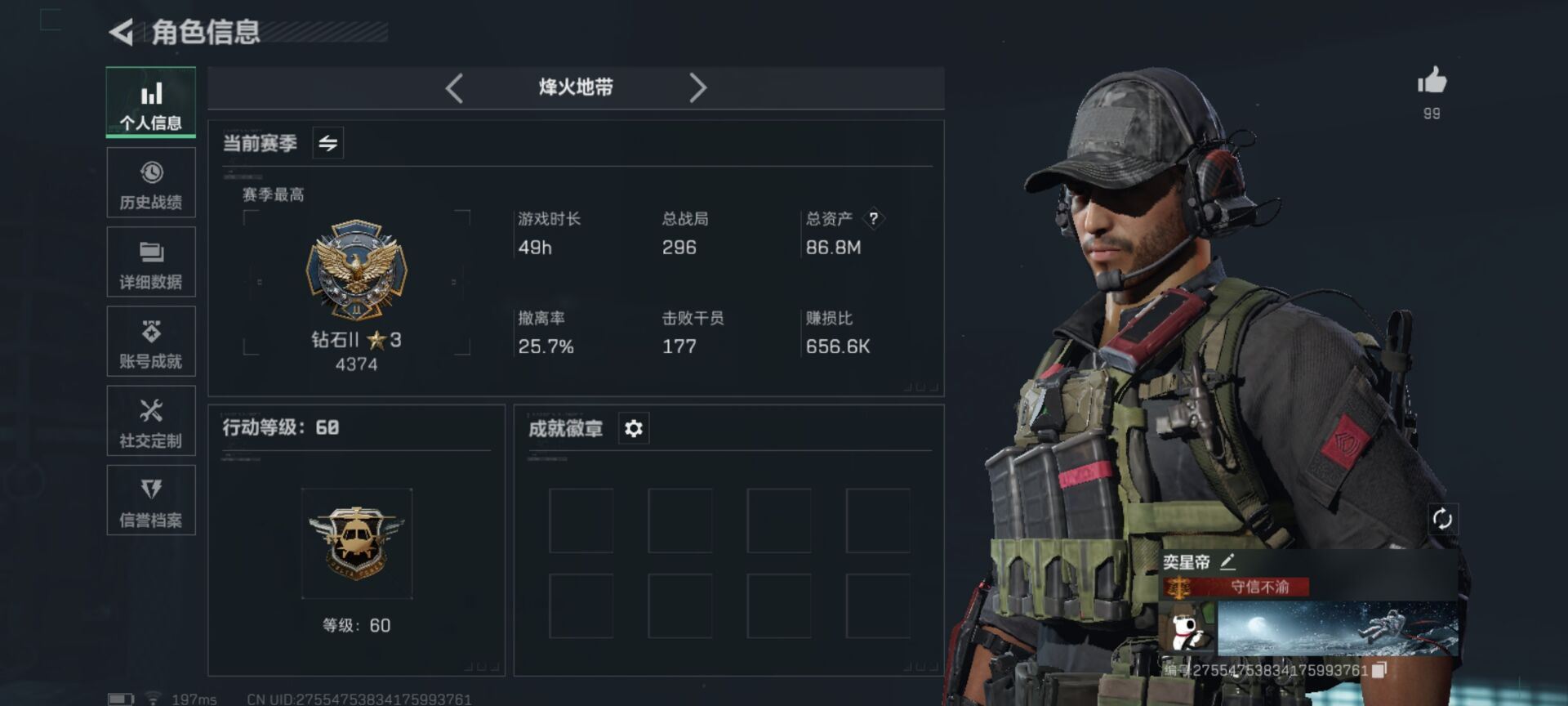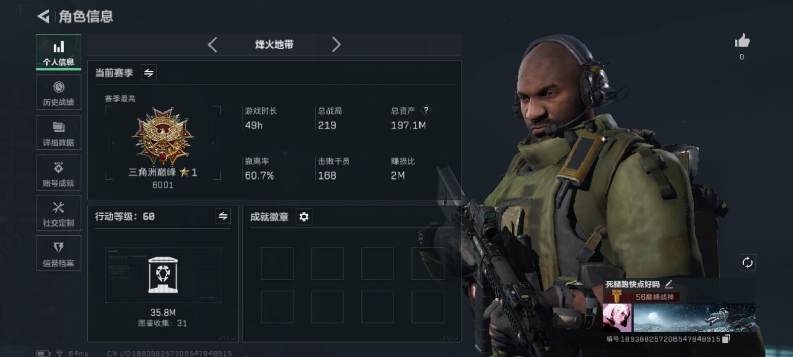 【账号佳】 R44138 可二次QQ【行动等级60】【总资产197.1m】【战场等级4】【突击步枪棱镜攻势优品B+scar战斗步枪打他优品A】【仓库10级+指挥中心6级+训练中心7级+靶场7级+收藏室1级】【刀:北极星+黑鹰】【红狼蚀金玫瑰+蜂医送葬人无题密令+蛊能天使午夜邮差+骇爪水墨云图-维什戴尔】【m4突击步枪蚀金玫瑰-阿米娅+ash战斗步枪鹅鸭杀+ak突击步枪特斯拉线圈+scar战斗步枪启航-水墨云图+g3战斗步枪骑士+car突击步枪阿米娅+腾龙突击步枪捞点薯条+k437突击步枪北极星+vector冲锋枪能天使+UZI冲锋枪特斯拉线圈+sr紧凑突击步枪特斯拉线圈+勇士冲锋枪能天使午夜邮差+qcq冲锋枪鹅鸭杀-北极星+725双管霰弹枪送葬人无题密令+m250通用机枪骑士之心+qjb轻机枪鹅鸭杀+R93狙击步枪维什戴尔+awm狙击步枪捞点薯条+93R捞点薯条】详情请看图片【卖号买号首选亿梦】