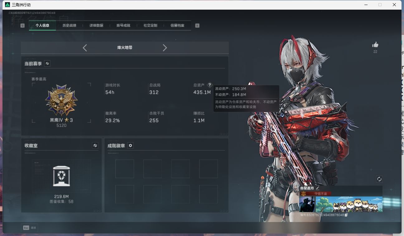 【账号佳】 ljh AK028495 包人脸 行动等级33白银 总资产10.7m【SCAR-H战斗步枪-启航G3战斗步枪-骑士联动 R93狙击步枪-维什戴尔腾龙突击步枪-捞点薯条AWM狙击步枪-捞点薯条93R-捞点薯条联动 M4A1突击步枪-阿米娅 】【近战 黑鹰】【角色皮肤 骇爪-维什戴尔 】----安全箱等时效性道具请以游戏内数据为准:详情请看图----截图展示段位不代实际段位,赛季更新等不可抗拒因素发生变化、时限道具不保证所剩时间、标题未写送三角券默认不送】【主播担保+安全至上+性价比 买号卖号只选金牌商家一左友】