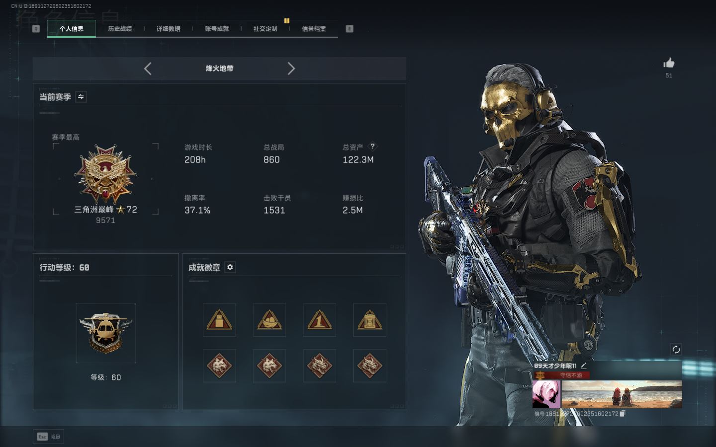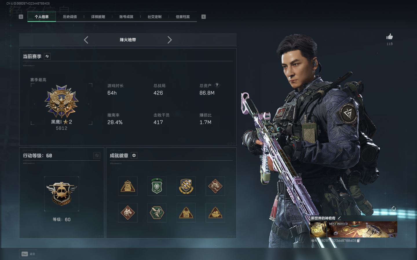 【账号佳】 ljh AK028638 有二次 行动等级60黑鹰 总资产86.8m 满体 【典藏 ASVal突击步枪-悬赏令(优品b)SCAR-H战斗步枪-电玩高手(优品b)M7战斗步枪-棱镜攻势S2(优品s)腾龙气象感应(优品s)毁灭之源4s】【P90冲锋枪-信条SR-25射手步枪-信条KC17突击步枪-电锯惊魂 QCQ171冲锋枪-鹅鸭杀QJ日201轻机枪-鹅鸭杀SCAR-H战斗步枪-启航 AK-12突击步枪-特斯拉线圈UZI冲锋枪-特斯拉线圈 AWM狙击步枪-捞点薯条93R-捞点薯条 】【近战 信条 电锯 北极星 黑鹰】【角色皮肤 红狼-蚀金玫瑰 红狼-电锯惊魂 威龙-飞虎 无名-夜鹰 蜂医-送葬人无题密令 蛊-能天使午夜邮差 深蓝-不破誓约露娜-黑天际线 骇爪-维什戴尔 骇爪-水墨云图】----安全箱等时效性道具请以游戏内数据为准:详情请看图----截图展示段位不代实际段位,赛季更新等不可抗拒因素发生变化、时限道具不保证所剩时间、标题未写送三角券默认不送】【主播担保+安全至上+性价比 买号卖号只选金牌商家一左友】
