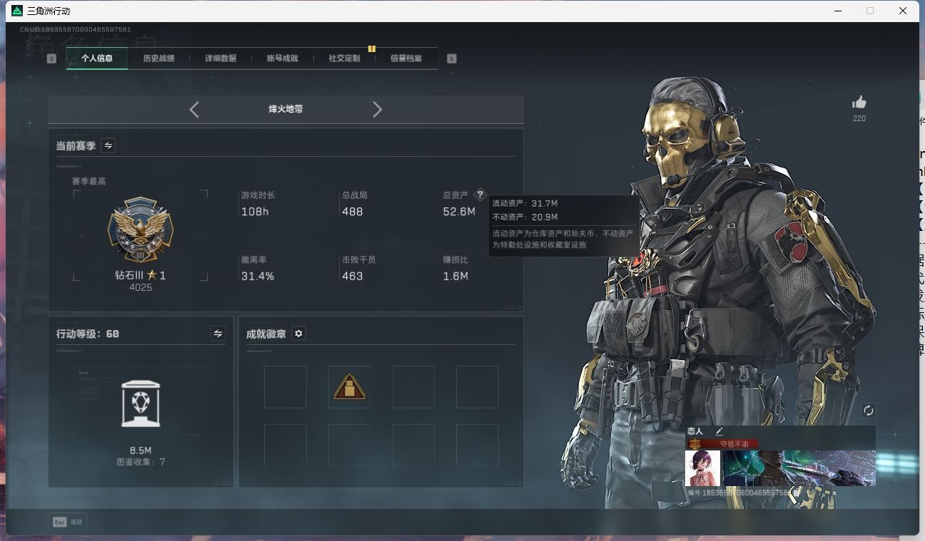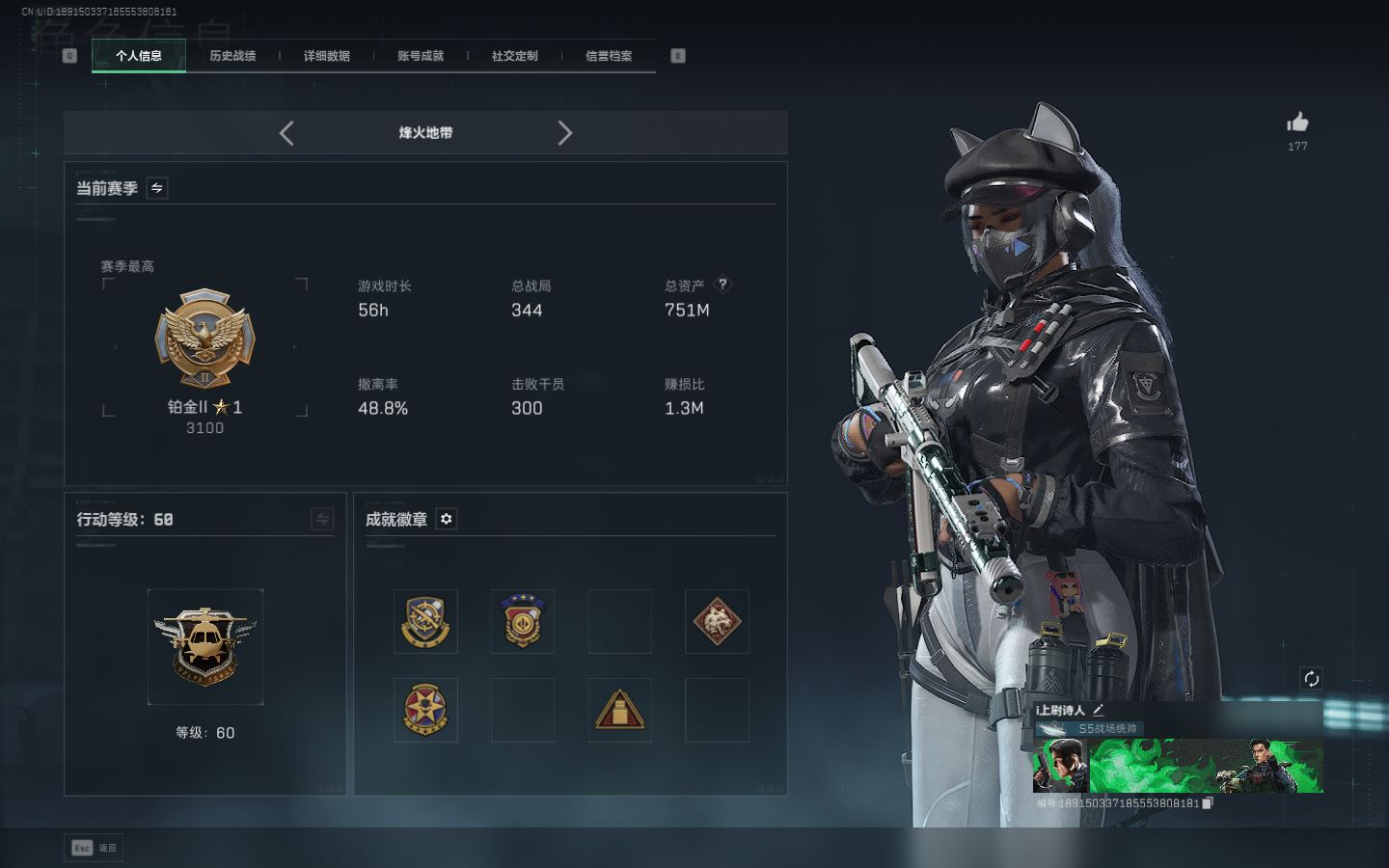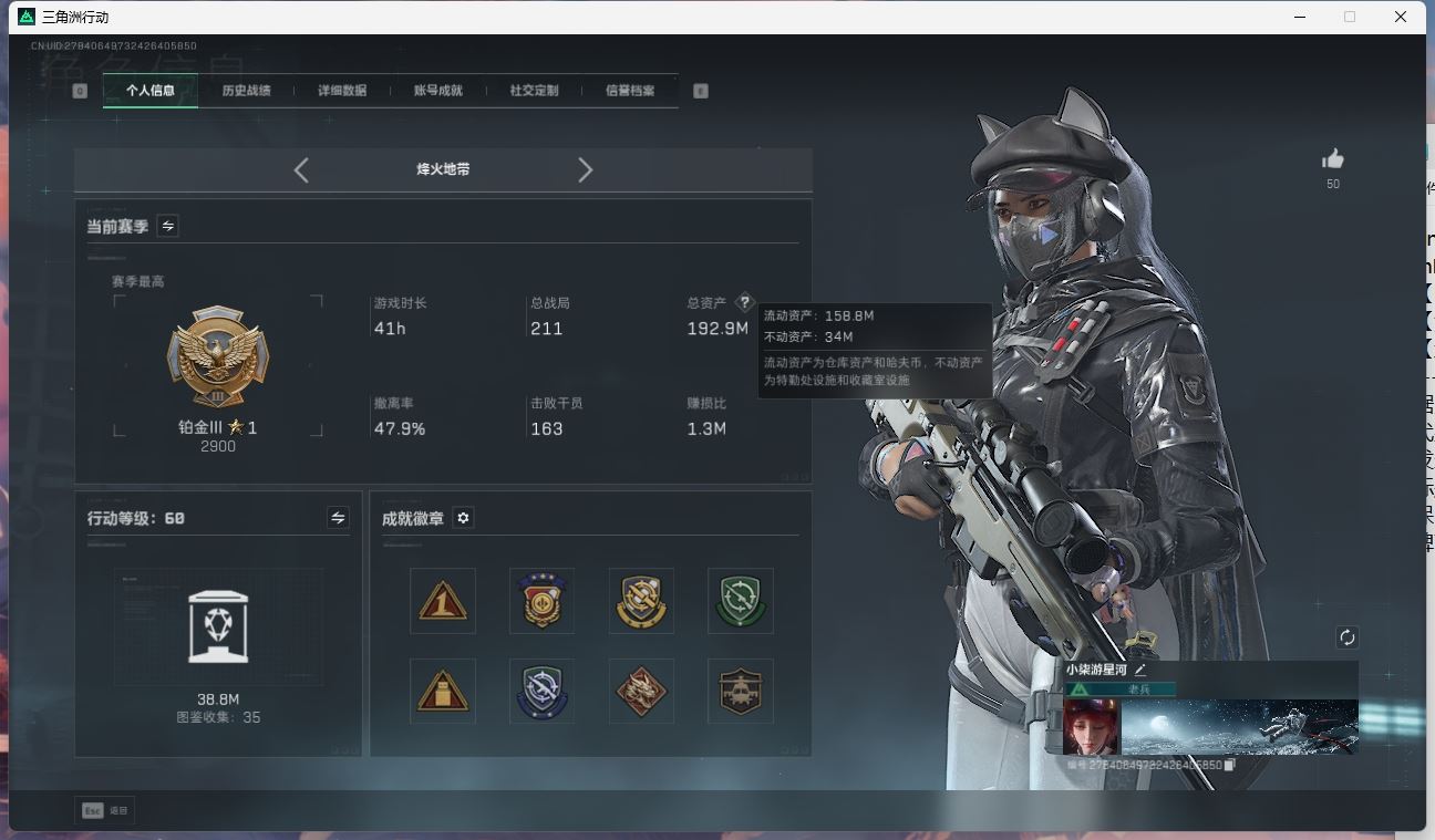 【账号佳】 hmcAK028690 行动等级:60白银,总资产220m哈夫币 【全满级特勤处 90aw子弹 格赫罗斯的密藏 s7赛季33 】【呛皮:KC17突击步枪-电锯惊魂SG552突击步枪-运动别】【近战:黑鹰 】----安全箱等时效性道具请以游戏内数据为准:详情请看图----截图展示段位不代实际段位,赛季更新等不可抗拒因素发生变化、时限道具不保证所剩时间、标题未写送三角币默认不送】【主播担保+安全至上+性价比 买号卖号只选金牌商家一左友】