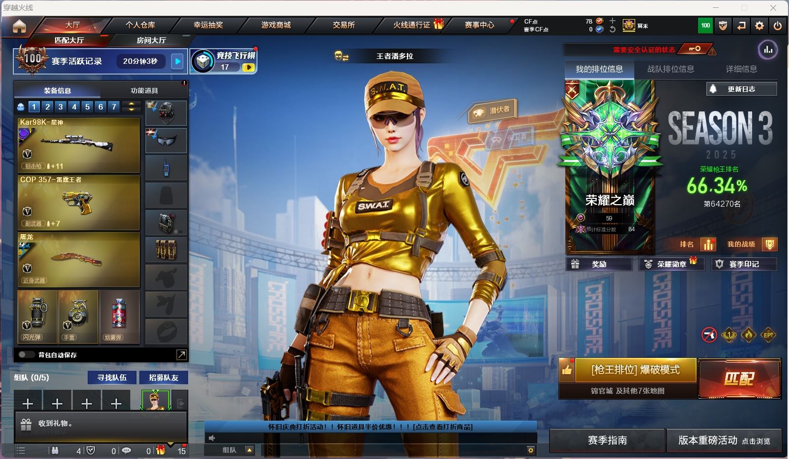 【账号佳】 【可二次实名】ljh AK024415 浙江一区 vip6 67v 【M200-幻神+音效卡+幻神-冠军之幻+幻神-周瑜】 【scar白虎+音效卡】 【qbz金色蔷薇】 【生化 6烈龙 迷你小钢】 【裁决+音效卡】 【毁灭+音效卡】 【极光+音效卡】 【火麒麟】 【雷神+雷神-冠军之魄】 【黑骑士+音效卡+黑骑士-冠军之势】 【王者之心 王者之魄 王者之势】 【8手枪 修罗*3 cop 堕天神 cop幻灵 usp神工天巧 冠军之特*2】 【7近战 屠龙 擎天 麒麟刺 幻灵之锋*2 王者之啸】 【手雷 堕天神*3 幻灵雷 神工天巧*4】 【四防 晴雅 王者葵貂蝉 王者潘多拉】 -----【更多炫彩背包/光效/名片/武器具体看图!截图展示段位不代实际段位,赛季更新等不可抗拒因素发生变化、时限道具不保证所剩时间、标题未写送点券默认不送】【主播担保+安全至上+性价比 买号卖号只选金牌商家一左友】