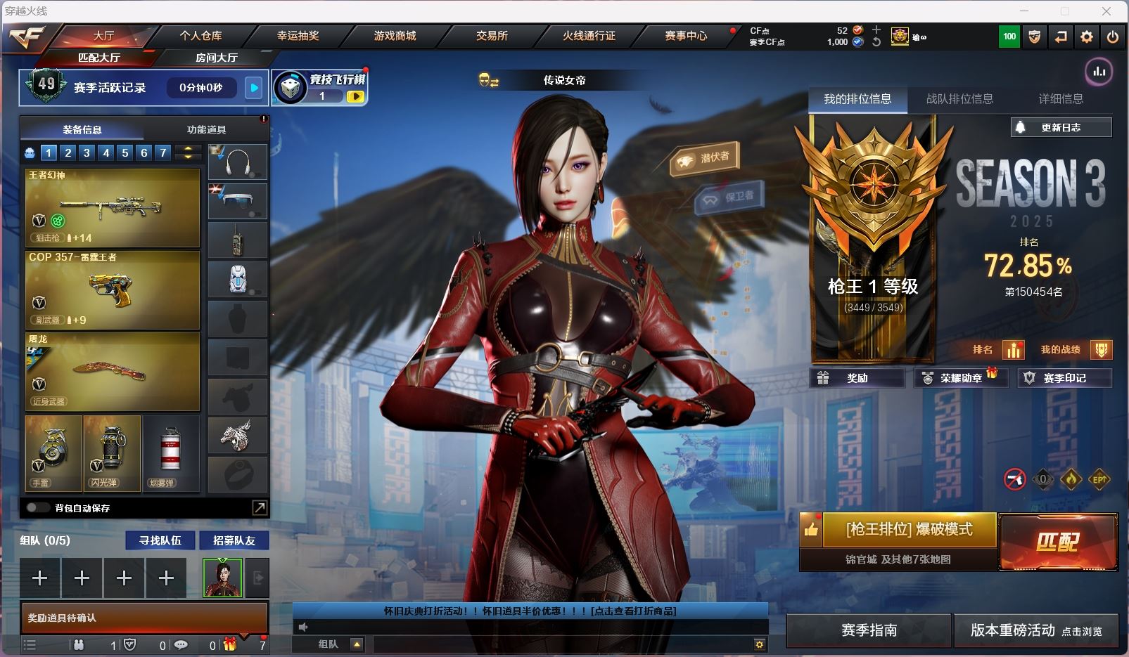 【账号佳】 【可二次实名】ljh AK027719 四川一区 52v【亮点解析 哔哩哔哩名片】【传说女帝】【竞技荣光套】【王者星神】【王者白虎】【生化 2盘龙 6炼狱】【极光】【火麒麟+音效卡】【黑龙+音效卡】【雷神+音效卡+heartshot+烈虎】【黑骑士】【王者冰魄 王者火魄 王者之烈】【无影 黑武士 黑鲨 青龙】【7手枪 修罗*2 天神*3 usp雷暴】【7近战 屠龙*2 龙啸 擎天 麒麟刺】【手雷 竞技荣光*2】【四防 王者葵惊若翩鸿】----更多炫彩背包/光效/名片/武器具体看图!截图展示段位不代实际段位,赛季更新等不可抗拒因素发生变化、时限道具不保证所剩时间、标题未写送点券默认不送】【主播担保+安全至上+性价比 买号卖号只选金牌商家一左友】