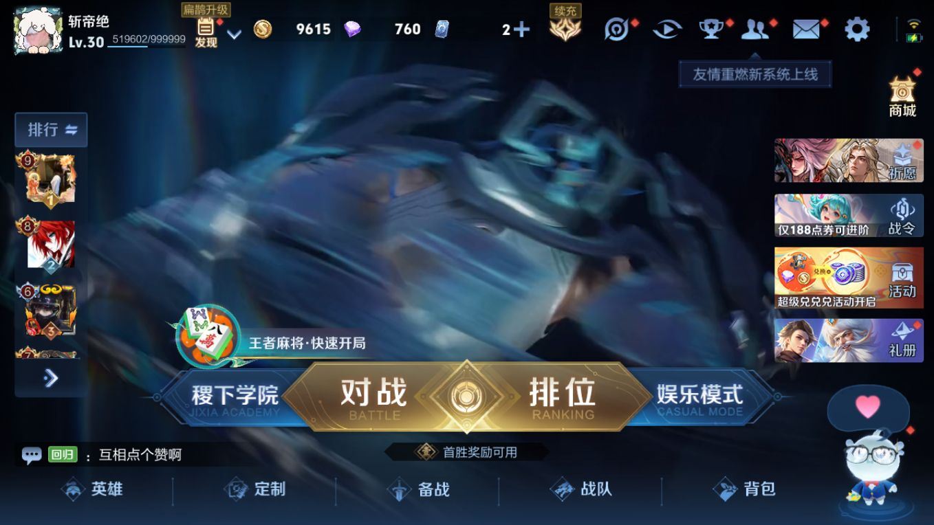 【账号佳】 【可二次实名】v3!神剑启示录!久胜战神!可二次!【永久社交限制 介意勿拍!】贵族积分-2000 B14975-IOS微信154区-19皮1典藏1传说 典藏1个-神鉴启示录 传说1个-久胜战神