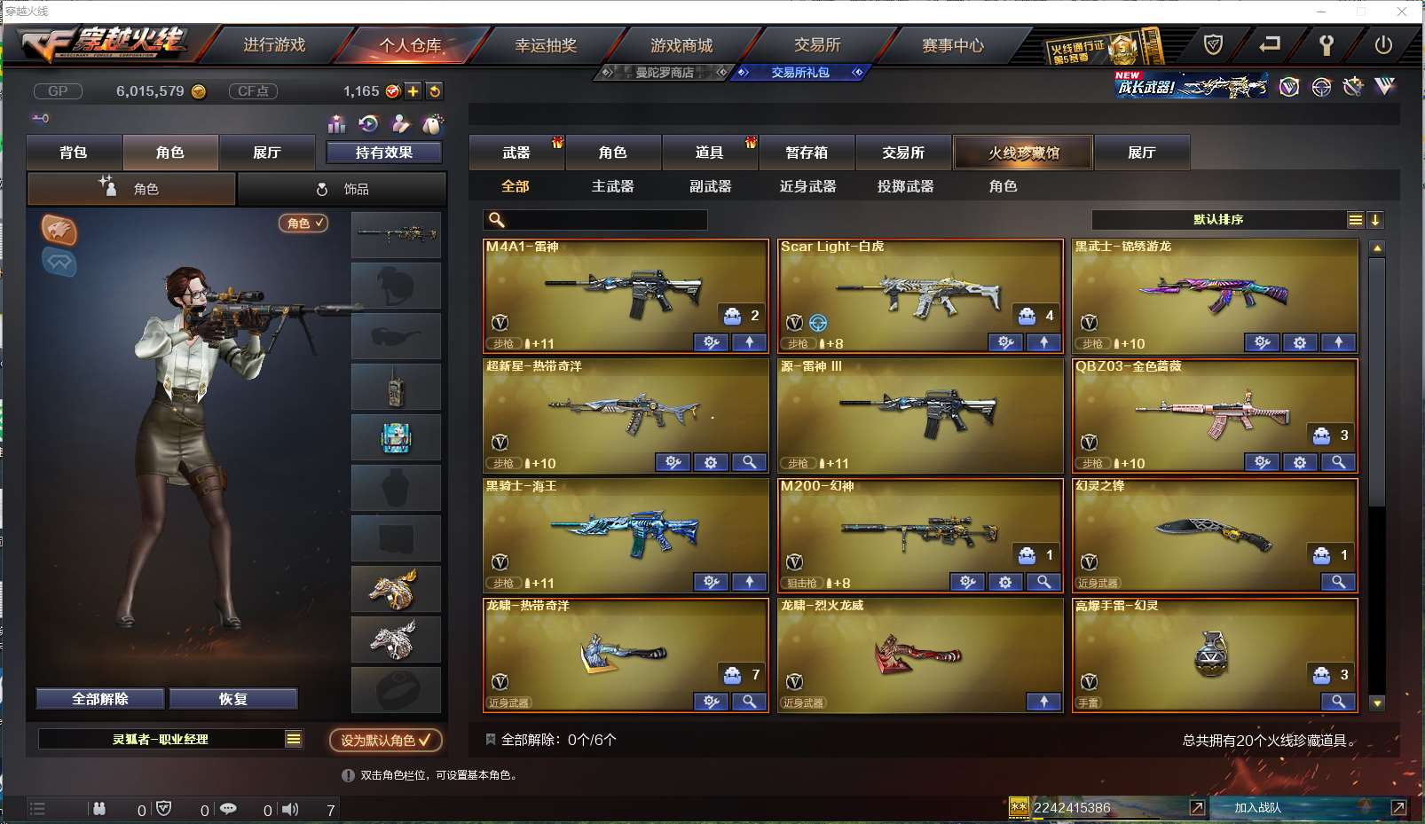 【账号佳】【穿越火线】【编号:806183】【可二次实名】【kf903】重庆1区幻神宠儿套, m200幻神/幻神音效卡/幻神宠儿/冠军之幻 白虎,雷神,qbz金色蔷薇+热带海洋【王者炫职业经理4防】