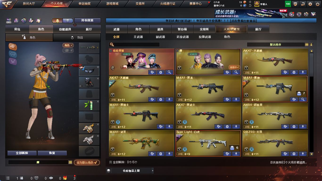 【账号佳】【穿越火线】【编号:941622】【可包人脸】ljh AK028551 四川一区 vip4 83v【传说星骇】【M200-幻神+音效卡+幻神-AG-CFPLS17+幻神-电流骇客】【Kar98K-星神】【g36c幻影】【ScarLight-白虎+音效卡】【QBZ03-金色蔷薇+量子蔷薇】【裁决+音效卡】【毁灭】【火麒麟+火麒麟-横秒之巅】【黑龙】【雷神】【黑骑士+音效卡+黑骑士-冠军之势】【王者玄武】【黑武士 超新星】【14手枪 修罗 天神*7 usp雷暴 usp冥王 王者之灵 冠军之特 usp雷暴王者】【7近战 屠龙*4 王者之锋 王者之啸 王者之击】【手雷 竞技荣光*2 玄豹*4】【四防 王者葵貂蝉 王者玲珑小乔】 ----更多炫彩背包/光效/名片/武器具体看图!截图展示段位不代实际段位,赛季更新等不可抗拒因素发生变化、时限道具不保证所剩时间、标题未写送点卷默认不送】【主播担保+安全至上+性价比 买号卖号只选金牌商家一左友】