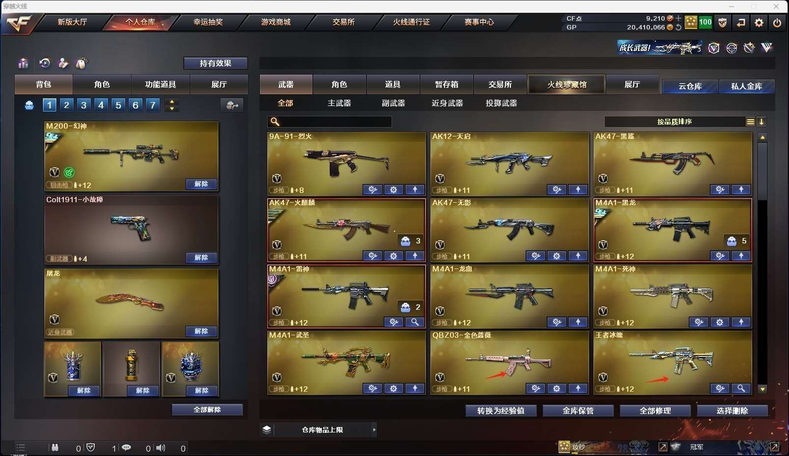 热门武器:火麒麟,雷神,QBZ金色蔷薇,毁灭