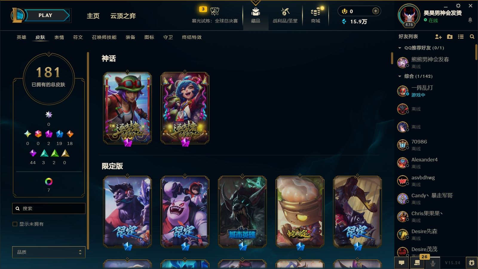 【账号佳】【英雄联盟】【编号:513250】【可包人脸】hmcAK028470班德尔城 476等级 172英雄 181皮肤【2神话 19限定 18传说 44史诗 7炫彩】【神话皮肤2】 十五周年纪念希维尔 十周年纪念安妮【限定皮肤19】 冠军之矛卡莉丝塔 死亡誓约劫 魄罗骑士瑟庄妮 张辽文远 FNATIC古拉加斯 雪默丁格 SKTT1薇恩 FNATIC嘉文四世 暗杀星蒙多 点心宝贝阿木木 FNATIC卡尔萨斯 都铎王朝图奇 SSW辛吉德 SKTT1贾克斯 暗杀星努努和威朗普 暗影沃里克 胜利剑圣易 防暴天使凯尔 胜利之运崔斯特----【截图展示段位不代表实际段位,如赛季更 新等不可抗拒因素发生变化、时限道具不保证所剩时间、标题未写送点券默认不送】买号找【左友】
