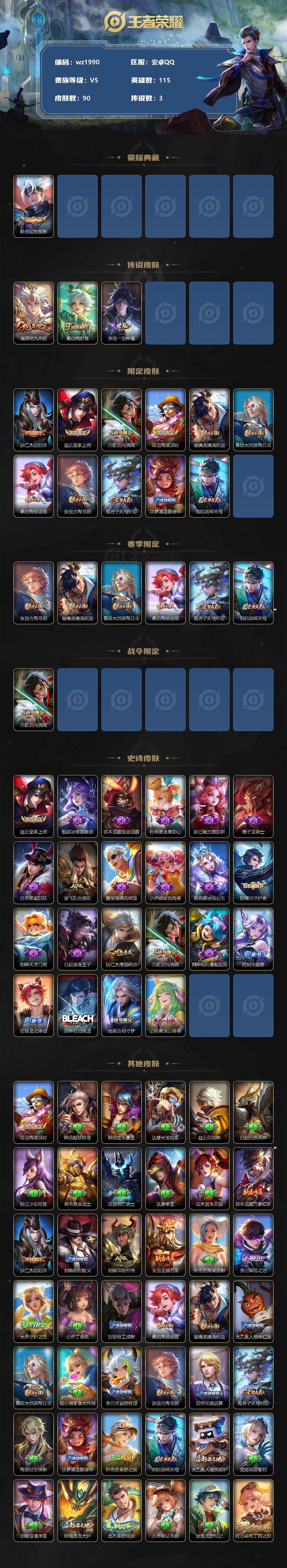 【账号佳】【王者荣耀】【编号:3339045】【可二次实名】【wz1990】安卓Q-V5-永恒钻石IV段位-115英雄-90皮肤-1典藏-0珍品无双-0无双-0珍品传说-3传说-22史诗 【荣耀典藏】:韩信弑枪猎影 【传说皮肤】:澜愿照九州拓,桑启鸣野蒿,李信一念神魔 【限定皮肤】:狄仁杰阴阳师,赵云皇家上将,元歌云间偶戏,项羽海滩派对,裴擒虎擒涛扼浪,鲁班大师探海日志,桑启海盐诗旅,张良古海寻踪,鬼谷子天穹祈灯,沈梦溪龙舞盛年,刘邦剑破天穹 【赛季限定】:张良古海寻踪,裴擒虎擒涛扼浪,鲁班大师探海日志,桑启海盐诗旅,鬼谷子天穹祈灯,刘邦剑破天穹 【战令限定】:元歌云间偶戏 【史诗皮肤】:赵云皇家上将,甄姬冰雪圆舞曲,宫本武藏鬼剑武藏,孙尚香水果甜心,妲己魅力维加斯,墨子龙骑士,吕布圣诞狂欢,张飞乱世虎臣,夏侯惇乘风破浪,小乔缤纷独角兽,雅典娜冰冠公主,铠曙光守护者,刘禅天才门将,白起星夜王子,狄仁杰鹰眼统帅,元歌云间偶戏,刘禅电玩爆裂旋风,阿轲化蝶舞,狂铁龙之律动,后羿石田雨龙,周瑜百相守梦,公孙离涂山容容 【其他皮肤】:项羽海滩派对,韩信教廷特使,韩信街头霸王,达摩大发明家,赵云忍炎影,白起白色死神,妲己少女阿狸,典韦黄金武士,亚瑟死亡骑士,达摩拳王,花木兰兔女郎,宫本武藏万象初新,狄仁杰阴阳师,刘备纽约教父,刘备汉昭烈帝,关羽龙腾万里,钟无艳海滩丽影,李白敏锐之力,大乔守护之力,小乔丁香结,狂铁特工战影,桑启海盐诗旅,裴擒虎擒涛扼浪,太乙真人劲辣红锅,鲁班大师探海日志,姬小满零食大作战,李元芳妄想特派,张良古海寻踪,后羿完美运算,鬼谷子天穹祈灯,海诺时空谍影,沈梦溪龙舞盛年,钟无艳春野之旅,刘邦剑破天穹,太乙真人谧流熔炉,戈娅玫蓝誓约,刘备浪漫序章,钟馗虚灵犬护,苏烈春野闲踪,小乔秘证寻踪,张良灵野札记,阿古朵布丁狗之约,露娜命运加冕,白起死霸装,甄姬逆浪荇歌,孙策百相守梦,哪吒罗小黑战记,亚瑟荣光之誓,项羽帝国元帅,曹操超能战警,孙悟空西部大镖客,虞姬加勒比小姐,关羽天启骑士,夏侯惇战争骑士,马可波罗激情绿茵,铠龙域领主,百里守约绝影神枪,苏烈爱与和平,明世隐占星师,马超幸存者,镜冰刃幻境,澜孤猎,司空震启蛰,云缨赤焰之缨 【内测皮肤】:狂铁特工战影 【营地ID】:1703126798