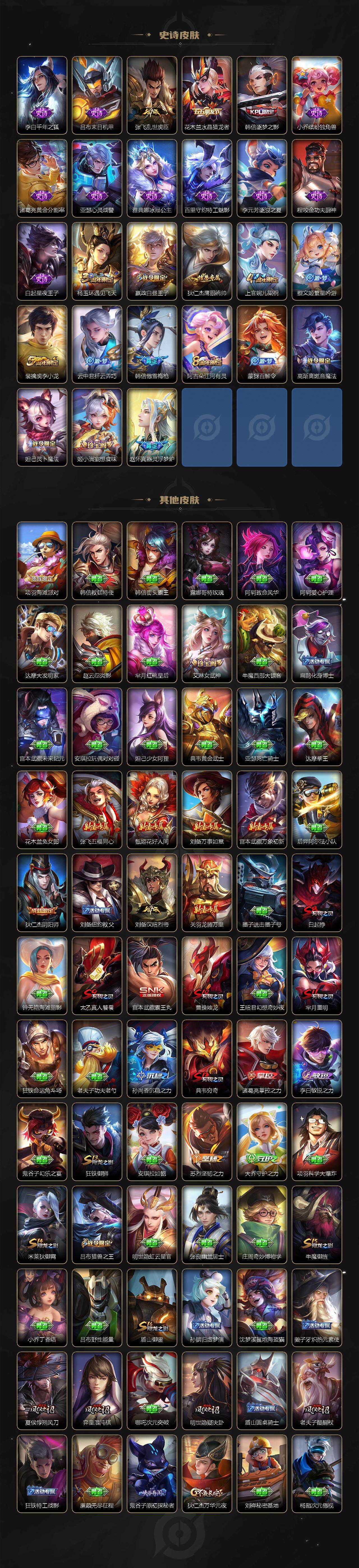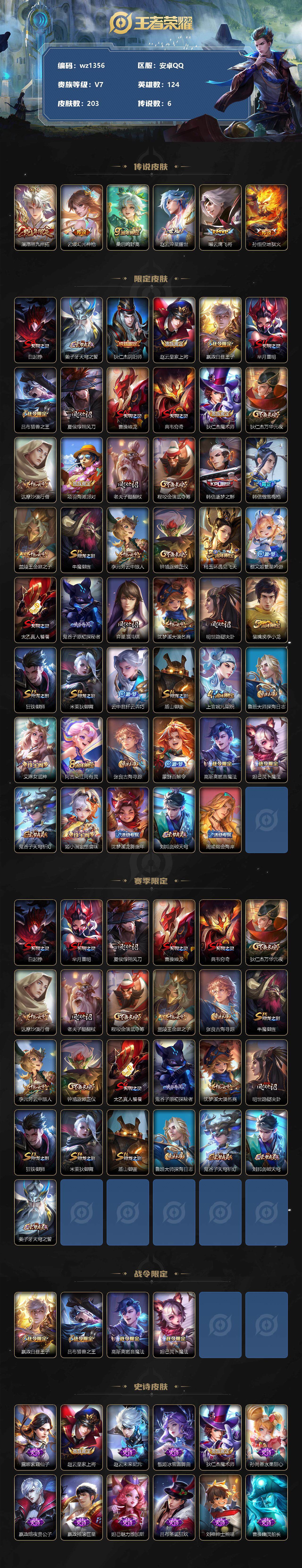 【账号佳】【王者荣耀】【编号:3339551】【可二次实名】【wz1356】【商品标题】:安卓Q-V7-尊贵铂金II段位-124英雄-203皮肤-0典藏-0珍品无双-0无双-0珍品传说-6传说-38史诗 【传说皮肤】:澜愿照九州拓,云缨幻光神枪,桑启鸣野蒿,赵云淬星耀世,曜云鹰飞将,孙悟空地狱火 【限定皮肤】:白起狰,姜子牙天穹之誓,狄仁杰阴阳师,赵云皇家上将,嬴政白昼王子,芈月重明,吕布猎兽之王,夏侯惇朔风刀,曹操烛龙,典韦穷奇,狄仁杰魔术师,狄仁杰万华元夜,达摩沙漠行僧,项羽海滩派对,老夫子醍醐杖,程咬金演武夺筹,韩信逐梦之影,韩信傲雪梅枪,兰陵王金庭之子,牛魔御旌,李元芳云中旅人,钟馗驱傩正仪,杨玉环遇见飞天,蔡文姬繁星吟游,太乙真人饕餮,鬼谷子原初探秘者,弈星混沌棋,沈梦溪大漠名商,明世隐疑决卦,裴擒虎李小龙,狂铁御狮,米莱狄御霄,云中君纤云弄巧,盾山御銮,上官婉儿梁祝,鲁班大师探海日志,艾琳女武神,阿古朵江河有灵,张良古海寻踪,蒙犽百解令,高渐离燃音魔法,妲己灵卜魔法,鬼谷子天穹祈灯,姬小满妄想食味,沈梦溪龙舞盛年,刘邦剑破天穹,周瑜熔金海岸 【赛季限定】:白起狰,芈月重明,夏侯惇朔风刀,曹操烛龙,典韦穷奇,狄仁杰万华元夜,达摩沙漠行僧,老夫子醍醐杖,程咬金演武夺筹,兰陵王金庭之子,张良古海寻踪,牛魔御旌,李元芳云中旅人,钟馗驱傩正仪,太乙真人饕餮,鬼谷子原初探秘者,弈星混沌棋,沈梦溪大漠名商,明世隐疑决卦,狂铁御狮,米莱狄御霄,盾山御銮,鲁班大师探海日志,鬼谷子天穹祈灯,刘邦剑破天穹,姜子牙天穹之誓 【战令限定】:嬴政白昼王子,吕布猎兽之王,高渐离燃音魔法,妲己灵卜魔法 【史诗皮肤】:露娜紫霞仙子,赵云皇家上将,赵云未来纪元,甄姬冰雪圆舞曲,狄仁杰魔术师,孙尚香水果甜心,嬴政暗夜贵公子,嬴政摇滚巨星,妲己魅力维加斯,吕布圣诞狂欢,刘禅绅士熊喵,曹操幽灵船长,李白千年之狐,吕布末日机甲,张飞乱世虎臣,花木兰水晶猎龙者,韩信逐梦之影,小乔缤纷独角兽,诸葛亮黄金分割率,亚瑟心灵战警,雅典娜冰冠公主,百里守约特工魅影,李元芳逐浪之夏,程咬金功夫厨神,白起星夜王子,杨玉环遇见飞天,嬴政白昼王子,狄仁杰鹰眼统帅,上官婉儿梁祝,蔡文姬繁星吟游,裴擒虎李小龙,云中君纤云弄巧,韩信傲雪梅枪,阿古朵江河有灵,蒙犽百解令,妲己灵卜魔法,高渐离燃音魔法,姬小满妄想食味,赵怀真器灵浮梦炉 【其他皮肤】:项羽海滩派对,韩信教廷特使,韩信街头霸王,露娜哥特玫瑰,阿轲致命风华,阿轲爱心护理,达摩大发明家,赵云忍炎影,芈月红桃皇后,艾琳女武神,牛魔西部大镖客,扁鹊化身博士,宫本武藏未来纪元,安琪拉玩偶对对碰,妲己少女阿狸,典韦黄金武士,亚瑟死亡骑士,达摩拳王,花木兰兔女郎,张飞五福同心,甄姬花好人间,刘备万事如意,宫本武藏万象初新,后羿阿尔法小队,狄仁杰阴阳师,刘备纽约教父,刘备汉昭烈帝,关羽龙腾万里,墨子进击墨子号,白起狰,钟无艳海滩丽影,太乙真人饕餮,宫本武藏霸王丸,曹操烛龙,王昭君幻想奇妙夜,芈月重明,狂铁命运角斗场,老夫子功夫老勺,孙尚香沉稳之力,典韦穷奇,诸葛亮掌控之力,李白敏锐之力,鬼谷子幻乐之宴,狂铁御狮,安琪拉如懿,苏烈坚韧之力,大乔守护之力,项羽科学大爆炸,米莱狄御霄,吕布猎兽之王,明世隐虹云星官,张良幽兰居士,庄周奇妙博物学,牛魔御旌,小乔丁香结,吕布野性能量,盾山御銮,孙膑归虚梦演,沈梦溪鲨炮海盗猫,姜子牙炽热元素使,夏侯惇朔风刀,弈星混沌棋,哪吒次元突破,明世隐疑决卦,盾山圆桌骑士,老夫子醍醐杖,狂铁特工战影,廉颇无尽征程,鬼谷子原初探秘者,狄仁杰万华元夜,刘禅秘密基地,杨戬次元傲视,程咬金演武夺筹,张良缤纷绘卷,钟馗驱傩正仪,鲁班大师乓乓大师,达摩沙漠行僧,程咬金无双福将,兰陵王金庭之子,沈梦溪大漠名商,李元芳云中旅人,猪八戒潮玩探月行,鲁班大师探海日志,张良古海寻踪,钟无艳聚星闪耀,亚连破局者,兰陵王幻夜行动,后羿完美运算,鬼谷子天穹祈灯,妲己灵卜魔法,海诺时空谍影,朵莉亚金色潮汐,廉颇功夫炙烤,沈梦溪龙舞盛年,刘邦剑破天穹,姜子牙天穹之誓,周瑜熔金海岸,东皇太一噬灭天穹,太乙真人谧流熔炉,西施雪境奇遇,姜子牙星梦巡礼,达摩爆裂喵拳,少司缘灵卦秘语,明世隐景韶洛都,戈娅玫蓝誓约,钟馗虚灵犬护,苏烈春野闲踪,空空儿戏梦巡演,鲁班七号福禄兄弟,鲁班七号木偶奇遇记,高渐离金属狂潮,露娜绯红之刃,程咬金华尔街大亨,曹操超能战警,孙膑未来旅行,孙悟空西部大镖客,周瑜海军大将,后羿精灵王,刘禅英喵野望,兰陵王隐刃,李白范海辛,钟馗地府判官,李元芳特种部队,刘邦圣殿之光,虞姬加勒比小姐,关羽天启骑士,夏侯惇战争骑士,雅典娜战争女神,马可波罗激情绿茵,苍维京掠夺者,杨戬埃及法老,诸葛亮星航指挥官,黄忠芝加哥教父,大乔伊势巫女,干将莫邪第七人偶,铠龙域领主,百里守约绝影神枪,百里玄策威尼斯狂欢