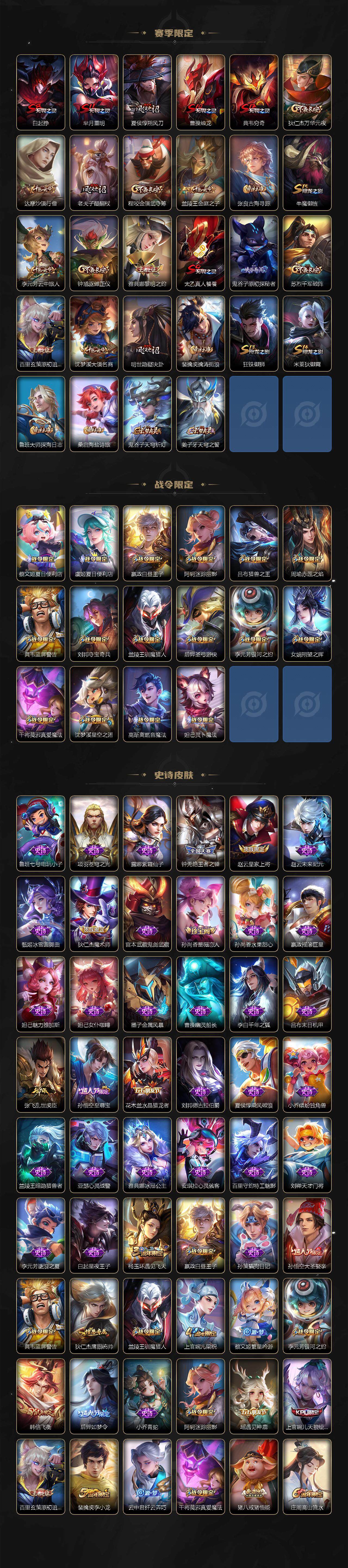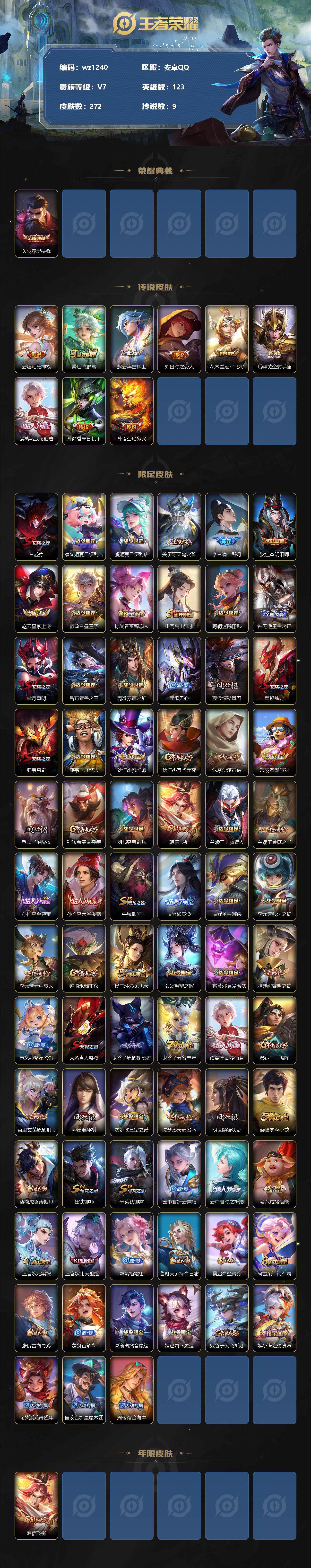 【账号佳】【王者荣耀】【编号:3339635】【可二次实名】【wz1240】【商品标题】:安卓Q-V7-永恒钻石II段位-123英雄-272皮肤-1典藏-0珍品无双-0无双-0珍品传说-9传说-70史诗 【荣耀典藏】:关羽赤影疾锋 【传说皮肤】:云缨幻光神枪,桑启鸣野蒿,赵云淬星耀世,刘备时之恋人,花木兰冠军飞将,后羿黄金射手座,诸葛亮武陵仙君,孙尚香末日机甲,孙悟空地狱火 【限定皮肤】:白起狰,蔡文姬夏日便利店,虞姬夏日便利店,姜子牙天穹之誓,李白谪仙醉月,狄仁杰阴阳师,赵云皇家上将,嬴政白昼王子,孙尚香蔷薇恋人,庄周高山流水,阿轲迷踪丽影,钟无艳王者之锤,芈月重明,吕布猎兽之王,周瑜赤莲之焰,元歌无心,夏侯惇朔风刀,曹操烛龙,典韦穷奇,典韦蓝屏警告,狄仁杰魔术师,狄仁杰万华元夜,达摩沙漠行僧,项羽海滩派对,老夫子醍醐杖,程咬金演武夺筹,刘邦夺宝奇兵,韩信飞衡,兰陵王驯魔猎人,兰陵王金庭之子,孙悟空至尊宝,孙悟空大圣娶亲,牛魔御旌,后羿如梦令,后羿圣弓游侠,李元芳银河之约,李元芳云中旅人,钟馗驱傩正仪,杨玉环遇见飞天,女娲朔望之晖,干将莫邪真爱魔法,雅典娜黎明之约,蔡文姬繁星吟游,太乙真人饕餮,鬼谷子原初探秘者,鬼谷子五谷丰年,诸葛亮武陵仙君,苏烈千军破阵,百里玄策原初追逐者,弈星混沌棋,沈梦溪星空之诺,沈梦溪大漠名商,明世隐疑决卦,裴擒虎李小龙,裴擒虎擒涛扼浪,狂铁御狮,米莱狄御霄,云中君纤云弄巧,云中君时之祈愿,猪八戒猪悟能,上官婉儿梁祝,上官婉儿天狼绘梦者,嫦娥拒霜思,鲁班大师探海日志,桑启海盐诗旅,阿古朵江河有灵,张良古海寻踪,蒙犽百解令,高渐离燃音魔法,妲己灵卜魔法,鬼谷子天穹祈灯,姬小满妄想食味,沈梦溪龙舞盛年,程咬金群星魔术团,周瑜熔金海岸 【年限皮肤】:韩信飞衡 【赛季限定】:白起狰,芈月重明,夏侯惇朔风刀,曹操烛龙,典韦穷奇,狄仁杰万华元夜,达摩沙漠行僧,老夫子醍醐杖,程咬金演武夺筹,兰陵王金庭之子,张良古海寻踪,牛魔御旌,李元芳云中旅人,钟馗驱傩正仪,雅典娜黎明之约,太乙真人饕餮,鬼谷子原初探秘者,苏烈千军破阵,百里玄策原初追逐者,弈星混沌棋,沈梦溪大漠名商,明世隐疑决卦,裴擒虎擒涛扼浪,狂铁御狮,米莱狄御霄,鲁班大师探海日志,桑启海盐诗旅,鬼谷子天穹祈灯,姜子牙天穹之誓 【战令限定】:蔡文姬夏日便利店,虞姬夏日便利店,嬴政白昼王子,阿轲迷踪丽影,吕布猎兽之王,周瑜赤莲之焰,典韦蓝屏警告,刘邦夺宝奇兵,兰陵王驯魔猎人,后羿圣弓游侠,李元芳银河之约,女娲朔望之晖,干将莫邪真爱魔法,沈梦溪星空之诺,高渐离燃音魔法,妲己灵卜魔法 【史诗皮肤】:鲁班七号电玩小子,项羽苍穹之光,露娜紫霞仙子,钟无艳王者之锤,赵云皇家上将,赵云未来纪元,甄姬冰雪圆舞曲,狄仁杰魔术师,宫本武藏鬼剑武藏,孙尚香蔷薇恋人,孙尚香水果甜心,嬴政摇滚巨星,妲己魅力维加斯,妲己女仆咖啡,墨子金属风暴,曹操幽灵船长,李白千年之狐,吕布末日机甲,张飞乱世虎臣,孙悟空至尊宝,花木兰水晶猎龙者,刘邦德古拉伯爵,夏侯惇乘风破浪,小乔缤纷独角兽,兰陵王暗隐猎兽者,亚瑟心灵战警,雅典娜冰冠公主,安琪拉心灵骇客,百里守约特工魅影,刘禅天才门将,李元芳逐浪之夏,白起星夜王子,杨玉环遇见飞天,嬴政白昼王子,孙策猫狗日记,孙悟空大圣娶亲,典韦蓝屏警告,狄仁杰鹰眼统帅,兰陵王驯魔猎人,上官婉儿梁祝,蔡文姬繁星吟游,李元芳银河之约,韩信飞衡,后羿如梦令,小乔青蛇,阿轲迷踪丽影,瑶遇见神鹿,上官婉儿天狼绘梦者,百里玄策原初追逐者,裴擒虎李小龙,云中君纤云弄巧,干将莫邪真爱魔法,猪八戒猪悟能,庄周高山流水,嫦娥拒霜思,雅典娜黎明之约,云中君时之祈愿,鬼谷子五谷丰年,元歌无心,阿古朵江河有灵,蒙犽百解令,妲己灵卜魔法,高渐离燃音魔法,姬小满妄想食味,蔡文姬夏日便利店,大司命东方月初,姬小满战舞者,亚连破空之剑,李白谪仙醉月,黄忠百相守梦,公孙离涂山容容 【其他皮肤】:项羽海滩派对,韩信教廷特使,韩信街头霸王,露娜哥特玫瑰,阿轲爱心护理,达摩大发明家,赵云忍炎影,程咬金星际陆战队,白起白色死神,武则天东方不败,扁鹊化身博士,宫本武藏未来纪元,安琪拉玩偶对对碰,孙膑天使之翼,姜子牙时尚教父,妲己少女阿狸,亚瑟死亡骑士,达摩拳王,花木兰兔女郎,张飞五福同心,甄姬花好人间,宫本武藏万象初新,后羿阿尔法小队,狄仁杰阴阳师,刘备纽约教父,刘备汉昭烈帝,关羽龙腾万里,墨子进击墨子号,白起狰,钟无艳海滩丽影,太乙真人饕餮,宫本武藏霸王丸,曹操烛龙,王昭君幻想奇妙夜,芈月重明,狂铁命运角斗场,老夫子功夫老勺,孙尚香沉稳之力,典韦穷奇,诸葛亮掌控之力,鬼谷子幻乐之宴,狂铁御狮,安琪拉如懿,苏烈坚韧之力,大乔守护之力,项羽科学大爆炸,米莱狄御霄,吕布猎兽之王,明世隐虹云星官,庄周奇妙博物学,牛魔御旌,女娲朔望之晖,小乔丁香结,吕布野性能量,孙膑归虚梦演