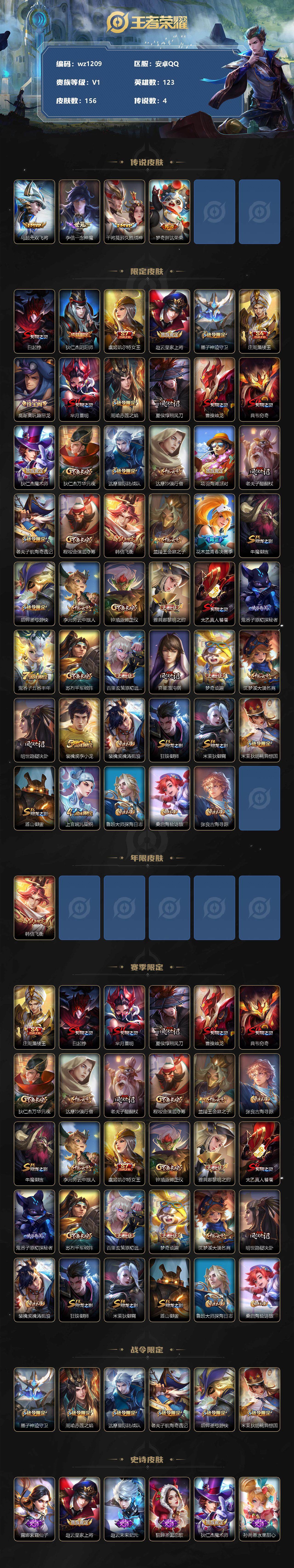 【账号佳】【王者荣耀】【编号:3339658】【可二次实名】【wz1209】【商品标题】:安卓Q-V1-永恒钻石II段位-123英雄-156皮肤-0典藏-0珍品无双-0无双-0珍品传说-4传说-25史诗 【传说皮肤】:马超无双飞将,李信一念神魔,干将莫邪久胜战神,梦奇胖达荣荣 【限定皮肤】:白起狰,狄仁杰阴阳师,虞姬凯尔特女王,赵云皇家上将,墨子神迹守卫,庄周蜃楼王,高渐离玩趣恶龙,芈月重明,周瑜赤莲之焰,夏侯惇朔风刀,曹操烛龙,典韦穷奇,狄仁杰魔术师,狄仁杰万华元夜,达摩星际陆战队,达摩沙漠行僧,项羽海滩派对,老夫子醍醐杖,老夫子航海奇遇记,程咬金演武夺筹,韩信飞衡,兰陵王金庭之子,花木兰青春决赛季,牛魔御旌,后羿圣弓游侠,李元芳云中旅人,钟馗驱傩正仪,雅典娜黎明之约,太乙真人饕餮,鬼谷子原初探秘者,鬼谷子五谷丰年,苏烈千军破阵,百里玄策原初追逐者,弈星混沌棋,梦奇顽趣,沈梦溪大漠名商,明世隐疑决卦,裴擒虎李小龙,裴擒虎擒涛扼浪,狂铁御狮,米莱狄御霄,米莱狄胡桃异想国,盾山御銮,上官婉儿梁祝,鲁班大师探海日志,桑启海盐诗旅,张良古海寻踪 【年限皮肤】:韩信飞衡 【赛季限定】:庄周蜃楼王,白起狰,芈月重明,夏侯惇朔风刀,曹操烛龙,典韦穷奇,狄仁杰万华元夜,达摩沙漠行僧,老夫子醍醐杖,程咬金演武夺筹,兰陵王金庭之子,张良古海寻踪,牛魔御旌,李元芳云中旅人,虞姬凯尔特女王,钟馗驱傩正仪,雅典娜黎明之约,太乙真人饕餮,鬼谷子原初探秘者,苏烈千军破阵,百里玄策原初追逐者,弈星混沌棋,梦奇顽趣,沈梦溪大漠名商,明世隐疑决卦,裴擒虎擒涛扼浪,狂铁御狮,米莱狄御霄,盾山御銮,鲁班大师探海日志,桑启海盐诗旅 【战令限定】:墨子神迹守卫,周瑜赤莲之焰,达摩星际陆战队,老夫子航海奇遇记,后羿圣弓游侠,米莱狄胡桃异想国 【史诗皮肤】:露娜紫霞仙子,赵云皇家上将,赵云未来纪元,貂蝉圣诞恋歌,狄仁杰魔术师,孙尚香水果甜心,李白千年之狐,吕布末日机甲,花木兰水晶猎龙者,花木兰青春决赛季,百里守约特工魅影,李元芳逐浪之夏,孙策猫狗日记,狄仁杰鹰眼统帅,上官婉儿梁祝,韩信飞衡,不知火舞魅语,百里玄策原初追逐者,裴擒虎李小龙,米莱狄胡桃异想国,老夫子航海奇遇记,雅典娜黎明之约,鬼谷子五谷丰年,梦奇顽趣,公孙离涂山容容 【其他皮肤】:项羽海滩派对,韩信教廷特使,韩信街头霸王,露娜哥特玫瑰,阿轲爱心护理,达摩大发明家,赵云白执事,赵云忍炎影,白起白色死神,扁鹊化身博士,扁鹊救世之瞳,宫本武藏未来纪元,安琪拉玩偶对对碰,妲己少女阿狸,典韦黄金武士,花木兰兔女郎,甄姬花好人间,刘备万事如意,宫本武藏万象初新,后羿阿尔法小队,狄仁杰阴阳师,庄周蜃楼王,刘备纽约教父,关羽龙腾万里,虞姬凯尔特女王,白起狰,钟无艳海滩丽影,太乙真人饕餮,宫本武藏霸王丸,曹操烛龙,芈月重明,老夫子功夫老勺,典韦穷奇,李白敏锐之力,鬼谷子幻乐之宴,狂铁御狮,项羽科学大爆炸,米莱狄御霄,庄周奇妙博物学,牛魔御旌,小乔丁香结,盾山御銮,高渐离玩趣恶龙,姜子牙炽热元素使,夏侯惇朔风刀,周瑜赤莲之焰,弈星混沌棋,哪吒次元突破,明世隐疑决卦,老夫子醍醐杖,廉颇无尽征程,鬼谷子原初探秘者,狄仁杰万华元夜,刘禅秘密基地,达摩星际陆战队,程咬金演武夺筹,钟馗驱傩正仪,墨子神迹守卫,鲁班大师乓乓大师,苏烈千军破阵,后羿圣弓游侠,达摩沙漠行僧,程咬金无双福将,兰陵王金庭之子,沈梦溪大漠名商,蒙恬蔚蓝守将,李元芳云中旅人,桑启海盐诗旅,猪八戒潮玩探月行,白起乐园追猎者,裴擒虎擒涛扼浪,鲁班大师探海日志,张良古海寻踪,后羿完美运算,廉颇功夫炙烤,东皇太一噬灭天穹,苍苍林狼骑,太乙真人谧流熔炉,典韦铁骨偃魂,姜子牙星梦巡礼,明世隐景韶洛都,戈娅玫蓝誓约,钟馗虚灵犬护,苏烈春野闲踪,张良灵野札记,甄姬逆浪荇歌,貂蝉异域舞娘,王昭君精灵公主,狄仁杰锦衣卫,孙膑未来旅行,孙悟空西部大镖客,刘禅英喵野望,钟馗地府判官,李元芳特种部队,刘邦圣殿之光,关羽天启骑士,夏侯惇战争骑士,雅典娜战争女神,马可波罗激情绿茵,杨戬埃及法老,太乙真人圆桌骑士,哪吒三太子,诸葛亮星航指挥官,大乔伊势巫女,干将莫邪第七人偶,铠龙域领主,百里守约绝影神枪,梦奇美梦成真,女娲尼罗河女神,公孙离花间舞,杨玉环霓裳曲,裴擒虎街头旋风,米莱狄精准探案法,元歌午夜歌剧院,孙策海之征途,司马懿魇语军师,李信灼热之刃,上官婉儿修竹墨客,瑶森,曜归虚梦演,马超幸存者,蒙犽归虚梦演,镜冰刃幻境,澜孤猎,司空震启蛰,云缨赤焰之缨,金蝉前尘 【内测皮肤】:高渐离玩趣恶龙 【营地ID】:92542443