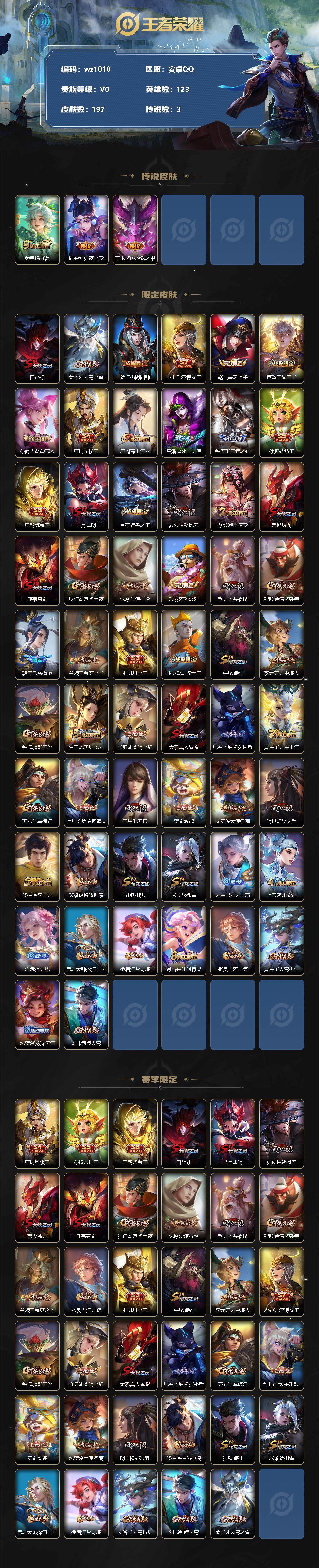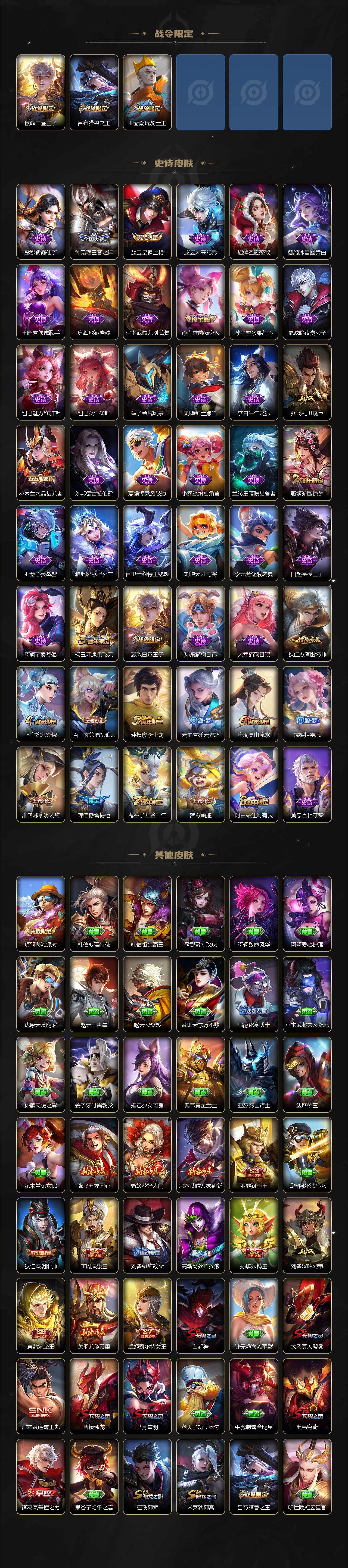 【账号佳】【王者荣耀】【编号:3339754】【可二次实名】【wz1010】【商品标题】:安卓Q-V0-最强王者段位-123英雄-197皮肤-0典藏-0珍品无双-0无双-0珍品传说-3传说-48史诗 【传说皮肤】:桑启鸣野蒿,貂蝉仲夏夜之梦,宫本武藏地狱之眼 【限定皮肤】:白起狰,姜子牙天穹之誓,狄仁杰阴阳师,虞姬凯尔特女王,赵云皇家上将,嬴政白昼王子,孙尚香蔷薇恋人,庄周蜃楼王,庄周高山流水,高渐离死亡摇滚,钟无艳王者之锤,孙膑妖精王,扁鹊炼金王,芈月重明,吕布猎兽之王,夏侯惇朔风刀,甄姬游园惊梦,曹操烛龙,典韦穷奇,狄仁杰万华元夜,达摩沙漠行僧,项羽海滩派对,老夫子醍醐杖,程咬金演武夺筹,韩信傲雪梅枪,兰陵王金庭之子,亚瑟狮心王,亚瑟潮玩骑士王,牛魔御旌,李元芳云中旅人,钟馗驱傩正仪,杨玉环遇见飞天,雅典娜黎明之约,太乙真人饕餮,鬼谷子原初探秘者,鬼谷子五谷丰年,苏烈千军破阵,百里玄策原初追逐者,弈星混沌棋,梦奇顽趣,沈梦溪大漠名商,明世隐疑决卦,裴擒虎李小龙,裴擒虎擒涛扼浪,狂铁御狮,米莱狄御霄,云中君纤云弄巧,上官婉儿梁祝,嫦娥拒霜思,鲁班大师探海日志,桑启海盐诗旅,阿古朵江河有灵,张良古海寻踪,鬼谷子天穹祈灯,沈梦溪龙舞盛年,刘邦剑破天穹 【赛季限定】:庄周蜃楼王,孙膑妖精王,扁鹊炼金王,白起狰,芈月重明,夏侯惇朔风刀,曹操烛龙,典韦穷奇,狄仁杰万华元夜,达摩沙漠行僧,老夫子醍醐杖,程咬金演武夺筹,兰陵王金庭之子,张良古海寻踪,亚瑟狮心王,牛魔御旌,李元芳云中旅人,虞姬凯尔特女王,钟馗驱傩正仪,雅典娜黎明之约,太乙真人饕餮,鬼谷子原初探秘者,苏烈千军破阵,百里玄策原初追逐者,弈星混沌棋,梦奇顽趣,沈梦溪大漠名商,明世隐疑决卦,裴擒虎擒涛扼浪,狂铁御狮,米莱狄御霄,鲁班大师探海日志,桑启海盐诗旅,鬼谷子天穹祈灯,刘邦剑破天穹,姜子牙天穹之誓 【战令限定】:嬴政白昼王子,吕布猎兽之王,亚瑟潮玩骑士王 【史诗皮肤】:露娜紫霞仙子,钟无艳王者之锤,赵云皇家上将,赵云未来纪元,貂蝉圣诞恋歌,甄姬冰雪圆舞曲,王昭君偶像歌手,廉颇地狱岩魂,宫本武藏鬼剑武藏,孙尚香蔷薇恋人,孙尚香水果甜心,嬴政暗夜贵公子,妲己魅力维加斯,妲己女仆咖啡,墨子金属风暴,刘禅绅士熊喵,李白千年之狐,张飞乱世虎臣,花木兰水晶猎龙者,刘邦德古拉伯爵,夏侯惇乘风破浪,小乔缤纷独角兽,兰陵王暗隐猎兽者,甄姬游园惊梦,亚瑟心灵战警,雅典娜冰冠公主,百里守约特工魅影,刘禅天才门将,李元芳逐浪之夏,白起星夜王子,阿轲节奏热浪,杨玉环遇见飞天,嬴政白昼王子,孙策猫狗日记,大乔猫狗日记,狄仁杰鹰眼统帅,上官婉儿梁祝,百里玄策原初追逐者,裴擒虎李小龙,云中君纤云弄巧,庄周高山流水,嫦娥拒霜思,雅典娜黎明之约,韩信傲雪梅枪,鬼谷子五谷丰年,梦奇顽趣,阿古朵江河有灵,黄忠百相守梦 【其他皮肤】:项羽海滩派对,韩信教廷特使,韩信街头霸王,露娜哥特玫瑰,阿轲致命风华,阿轲爱心护理,达摩大发明家,赵云白执事,赵云忍炎影,武则天东方不败,扁鹊化身博士,宫本武藏未来纪元,孙膑天使之翼,姜子牙时尚教父,妲己少女阿狸,典韦黄金武士,亚瑟死亡骑士,达摩拳王,花木兰兔女郎,张飞五福同心,甄姬花好人间,宫本武藏万象初新,亚瑟狮心王,后羿阿尔法小队,狄仁杰阴阳师,庄周蜃楼王,刘备纽约教父,高渐离死亡摇滚,孙膑妖精王,刘备汉昭烈帝,扁鹊炼金王,关羽龙腾万里,虞姬凯尔特女王,白起狰,钟无艳海滩丽影,太乙真人饕餮,宫本武藏霸王丸,曹操烛龙,芈月重明,老夫子功夫老勺,牛魔制霸全明星,典韦穷奇,诸葛亮掌控之力,鬼谷子幻乐之宴,狂铁御狮,米莱狄御霄,吕布猎兽之王,明世隐虹云星官,庄周奇妙博物学,牛魔御旌,小乔丁香结,吕布野性能量,孙膑归虚梦演,沈梦溪鲨炮海盗猫,夏侯惇朔风刀,弈星混沌棋,哪吒次元突破,鲁班七号黑桃队长,明世隐疑决卦,老夫子醍醐杖,狂铁特工战影,鬼谷子原初探秘者,狄仁杰万华元夜,亚瑟潮玩骑士王,刘禅秘密基地,露娜瓷语鉴心,程咬金演武夺筹,张良缤纷绘卷,钟馗驱傩正仪,鲁班大师乓乓大师,苏烈千军破阵,马可波罗潮玩牛仔,达摩沙漠行僧,程咬金无双福将,兰陵王金庭之子,刘禅唤灵魔甲,沈梦溪大漠名商,蒙恬蔚蓝守将,李元芳云中旅人,桑启海盐诗旅,猪八戒潮玩探月行,裴擒虎擒涛扼浪,太乙真人劲辣红锅,鲁班大师探海日志,姬小满零食大作战,张良古海寻踪,鬼谷子天穹祈灯,廉颇功夫炙烤,沈梦溪龙舞盛年,刘邦剑破天穹,姜子牙天穹之誓,盘古敬我三分,东皇太一噬灭天穹,亚瑟动物派对,干将莫邪雾都夜雨,苍苍林狼骑,太乙真人谧流熔炉,典韦铁骨偃魂,影魅影绮裳,姜子牙星梦巡礼,明世隐景韶洛都,戈娅玫蓝誓约,刘备浪漫序章,苏烈春野闲踪,甄姬逆浪荇歌,莱西奥踏浪烽翎,鬼谷子克喵,鲁班七号木偶奇遇记,项羽帝国元帅,钟无艳生化警戒,貂蝉异域舞娘,王昭君精灵公主,狄仁杰锦衣卫,曹操死神来了,曹操超能