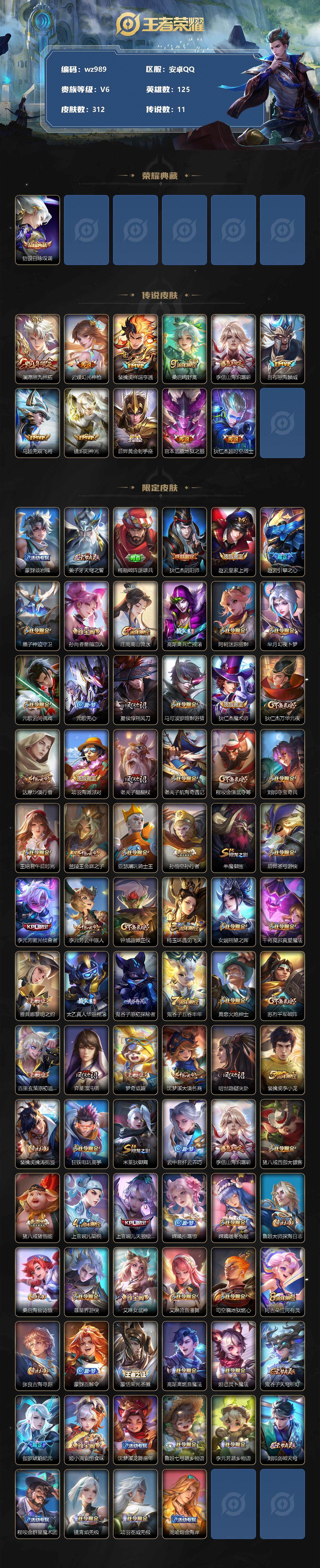 【账号佳】【王者荣耀】【编号:3339767】【可二次实名】【wz989】【商品标题】:安卓Q-V6-至尊星耀II段位-125英雄-312皮肤-1典藏-0珍品无双-0无双-0珍品传说-11传说-91史诗 【荣耀典藏】:铠银白咏叹调 【传说皮肤】:澜愿照九州拓,云缨幻光神枪,裴擒虎祥瑞亨通,桑启鸣野蒿,李信山海炽霜斩,吕布怒海麟威,马超无双飞将,镜炽阳神光,后羿黄金射手座,宫本武藏地狱之眼,狄仁杰超时空战士 【限定皮肤】:蒙犽顽岩魄,姜子牙天穹之誓,杨戬破阵退雄兵,狄仁杰阴阳师,赵云皇家上将,赵云引擎之心,墨子神迹守卫,孙尚香蔷薇恋人,庄周高山流水,高渐离死亡摇滚,阿轲迷踪丽影,芈月幻夜卜梦,元歌云间偶戏,元歌无心,夏侯惇朔风刀,马可波罗暗影游猎,狄仁杰魔术师,狄仁杰万华元夜,达摩沙漠行僧,项羽海滩派对,老夫子醍醐杖,老夫子航海奇遇记,程咬金演武夺筹,刘邦夺宝奇兵,王昭君午后时光,兰陵王金庭之子,亚瑟潮玩骑士王,孙悟空孙行者,牛魔御旌,后羿圣弓游侠,李元芳匿光侦查者,李元芳云中旅人,钟馗驱傩正仪,杨玉环遇见飞天,女娲朔望之晖,干将莫邪真爱魔法,雅典娜黎明之约,太乙真人华丽摇滚,鬼谷子原初探秘者,鬼谷子五谷丰年,黄忠火炮绅士,苏烈千军破阵,百里玄策原初追逐者,弈星混沌棋,梦奇顽趣,沈梦溪大漠名商,明世隐疑决卦,裴擒虎李小龙,裴擒虎擒涛扼浪,狂铁电玩高手,米莱狄御霄,云中君纤云弄巧,李信山海炽霜斩,猪八戒西部大镖客,猪八戒猪悟能,上官婉儿梁祝,上官婉儿天狼绘梦者,嫦娥拒霜思,嫦娥暖冬兔眠,鲁班大师探海日志,桑启海盐诗旅,暃星界游侠,艾琳女武神,艾琳流音漫舞,司空震地狱燃心,阿古朵江河有灵,张良古海寻踪,蒙犽百解令,蒙恬荣光圣徽,高渐离燃音魔法,妲己灵卜魔法,鬼谷子天穹祈灯,伽罗琥珀纪元,姬小满妄想食味,沈梦溪龙舞盛年,鲁班七号蔬乡物语,李元芳蔬乡物语,刘邦剑破天穹,程咬金群星魔术团,镜青焰无极,项羽苍威无极,周瑜熔金海岸 【年限皮肤】:李信山海炽霜斩 【赛季限定】:夏侯惇朔风刀,狄仁杰万华元夜,达摩沙漠行僧,老夫子醍醐杖,程咬金演武夺筹,兰陵王金庭之子,张良古海寻踪,牛魔御旌,李元芳云中旅人,钟馗驱傩正仪,雅典娜黎明之约,鬼谷子原初探秘者,苏烈千军破阵,百里玄策原初追逐者,弈星混沌棋,梦奇顽趣,沈梦溪大漠名商,明世隐疑决卦,裴擒虎擒涛扼浪,米莱狄御霄,鲁班大师探海日志,桑启海盐诗旅,鬼谷子天穹祈灯,蒙恬荣光圣徽,刘邦剑破天穹,姜子牙天穹之誓 【战令限定】:墨子神迹守卫,阿轲迷踪丽影,芈月幻夜卜梦,元歌云间偶戏,马可波罗暗影游猎,老夫子航海奇遇记,刘邦夺宝奇兵,王昭君午后时光,艾琳流音漫舞,亚瑟潮玩骑士王,后羿圣弓游侠,女娲朔望之晖,干将莫邪真爱魔法,黄忠火炮绅士,狂铁电玩高手,猪八戒西部大镖客,嫦娥暖冬兔眠,司空震地狱燃心,暃星界游侠,高渐离燃音魔法,妲己灵卜魔法,鲁班七号蔬乡物语,李元芳蔬乡物语,镜青焰无极,项羽苍威无极 【史诗皮肤】:鲁班七号电玩小子,露娜紫霞仙子,阿轲暗夜猫娘,赵云皇家上将,赵云未来纪元,貂蝉圣诞恋歌,甄姬冰雪圆舞曲,狄仁杰魔术师,廉颇地狱岩魂,宫本武藏鬼剑武藏,孙尚香蔷薇恋人,孙尚香水果甜心,妲己魅力维加斯,妲己女仆咖啡,墨子金属风暴,吕布圣诞狂欢,刘禅绅士熊喵,曹操幽灵船长,李白千年之狐,吕布末日机甲,赵云引擎之心,花木兰水晶猎龙者,刘邦德古拉伯爵,小乔缤纷独角兽,兰陵王暗隐猎兽者,诸葛亮黄金分割率,亚瑟心灵战警,雅典娜冰冠公主,安琪拉心灵骇客,百里守约特工魅影,铠曙光守护者,蔡文姬舞动绿茵,刘禅天才门将,李元芳逐浪之夏,白起星夜王子,阿轲节奏热浪,杨玉环遇见飞天,孙策猫狗日记,伽罗箭羽风息,狄仁杰鹰眼统帅,公孙离无限星赏官,上官婉儿梁祝,不知火舞魅语,阿轲迷踪丽影,橘右京修罗,上官婉儿天狼绘梦者,马可波罗暗影游猎,百里玄策原初追逐者,裴擒虎李小龙,云中君纤云弄巧,元歌云间偶戏,老夫子航海奇遇记,杨戬天秀启明,干将莫邪真爱魔法,沈梦溪月团寄思,钟馗乐园奇幻夜,孙悟空孙行者,猪八戒猪悟能,庄周高山流水,嫦娥拒霜思,黄忠火炮绅士,雅典娜黎明之约,澜赏金猎手,狂铁电玩高手,鬼谷子五谷丰年,元歌无心,梦奇顽趣,暃星界游侠,刘禅电玩爆裂旋风,李元芳匿光侦查者,司空震地狱燃心,阿古朵江河有灵,蒙犽百解令,妲己灵卜魔法,高渐离燃音魔法,蒙恬荣光圣徽,伽罗琥珀纪元,姬小满妄想食味,鲁班七号蔬乡物语,镜青焰无极,蒙犽顽岩魄,大司命东方月初,牛魔星界战将,孙膑茶境仙,赵怀真器灵浮梦炉,阿轲化蝶舞,刘禅鸭鸭历险记,狂铁龙之律动,扁鹊灵蛊蚀心,后羿石田雨龙,黄忠百相守梦,公孙离涂山容容 【其他皮肤】:项羽海滩派对,韩信教廷特使,韩信街头霸王,露娜哥特玫瑰,阿轲爱心护理,达摩大发明家,赵云白执事,赵云忍炎影,芈月红桃皇后,艾琳女武神,程咬金星际陆战队,白起白色死神,牛魔西部大镖客,扁鹊化
