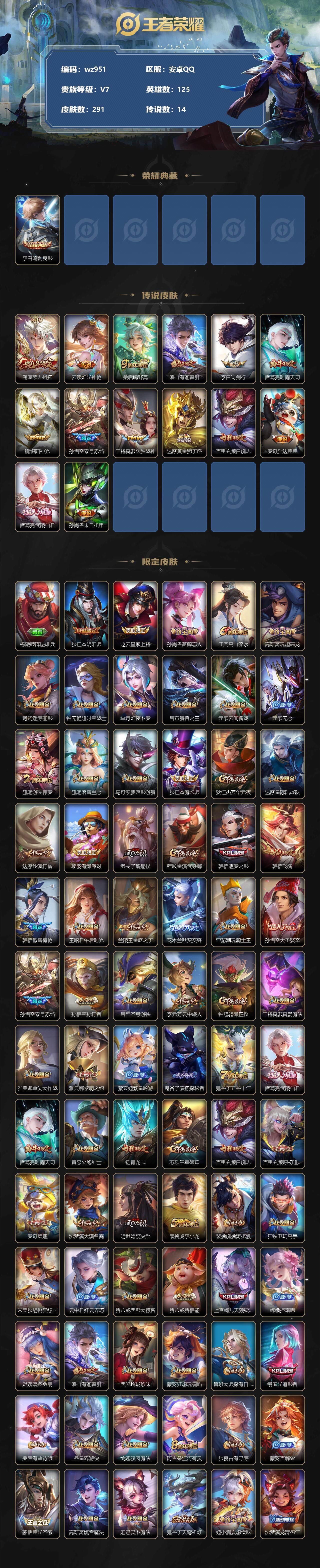 【账号佳】【王者荣耀】【编号:3339772】【可二次实名】【wz951】【商品标题】:安卓Q-V7-最强王者段位-125英雄-291皮肤-1典藏-0珍品无双-0无双-0珍品传说-14传说-92史诗 【荣耀典藏】:李白鸣剑曳影 【传说皮肤】:澜愿照九州拓,云缨幻光神枪,桑启鸣野蒿,曜山海苍雷引,李白诗剑行,诸葛亮时雨天司,镜炽阳神光,孙悟空零号赤焰,干将莫邪久胜战神,达摩黄金狮子座,百里玄策白虎志,梦奇胖达荣荣,诸葛亮武陵仙君,孙尚香末日机甲 【限定皮肤】:杨戬破阵退雄兵,狄仁杰阴阳师,赵云皇家上将,孙尚香蔷薇恋人,庄周高山流水,高渐离玩趣恶龙,阿轲迷踪丽影,钟无艳超时空战士,芈月幻夜卜梦,吕布猎兽之王,元歌云间偶戏,元歌无心,甄姬游园惊梦,甄姬落雪兰心,马可波罗暗影游猎,狄仁杰魔术师,狄仁杰万华元夜,达摩星际陆战队,达摩沙漠行僧,项羽海滩派对,老夫子醍醐杖,程咬金演武夺筹,韩信逐梦之影,韩信飞衡,韩信傲雪梅枪,王昭君午后时光,兰陵王金庭之子,花木兰默契交锋,亚瑟潮玩骑士王,孙悟空大圣娶亲,孙悟空零号赤焰,孙悟空孙行者,后羿圣弓游侠,李元芳云中旅人,钟馗驱傩正仪,干将莫邪真爱魔法,雅典娜单词大作战,雅典娜黎明之约,蔡文姬繁星吟游,鬼谷子原初探秘者,鬼谷子五谷丰年,诸葛亮武陵仙君,诸葛亮时雨天司,黄忠火炮绅士,铠青龙志,苏烈千军破阵,百里玄策白虎志,百里玄策原初追逐者,梦奇顽趣,沈梦溪大漠名商,明世隐疑决卦,裴擒虎李小龙,裴擒虎擒涛扼浪,狂铁电玩高手,米莱狄胡桃异想国,云中君纤云弄巧,猪八戒西部大镖客,猪八戒猪悟能,上官婉儿天狼绘梦者,嫦娥拒霜思,嫦娥暖冬兔眠,曜山海苍雷引,西施玲珑珍味,蒙犽狂想玩偶喵,鲁班大师探海日志,镜匿光追影者,桑启海盐诗旅,暃星界游侠,戈娅驭风魔法,阿古朵江河有灵,张良古海寻踪,蒙犽百解令,蒙恬荣光圣徽,高渐离燃音魔法,妲己灵卜魔法,鬼谷子天穹祈灯,姬小满妄想食味,沈梦溪龙舞盛年,刘邦剑破天穹,程咬金群星魔术团,镜青焰无极,项羽苍威无极 【年限皮肤】:百里玄策白虎志,铠青龙志,诸葛亮时雨天司,韩信飞衡,曜山海苍雷引 【赛季限定】:狄仁杰万华元夜,达摩沙漠行僧,老夫子醍醐杖,程咬金演武夺筹,兰陵王金庭之子,张良古海寻踪,李元芳云中旅人,钟馗驱傩正仪,雅典娜黎明之约,鬼谷子原初探秘者,苏烈千军破阵,百里玄策原初追逐者,梦奇顽趣,沈梦溪大漠名商,明世隐疑决卦,裴擒虎擒涛扼浪,鲁班大师探海日志,桑启海盐诗旅,鬼谷子天穹祈灯,蒙恬荣光圣徽,刘邦剑破天穹 【战令限定】:阿轲迷踪丽影,钟无艳超时空战士,芈月幻夜卜梦,吕布猎兽之王,元歌云间偶戏,甄姬落雪兰心,马可波罗暗影游猎,达摩星际陆战队,王昭君午后时光,亚瑟潮玩骑士王,后羿圣弓游侠,干将莫邪真爱魔法,雅典娜单词大作战,黄忠火炮绅士,狂铁电玩高手,米莱狄胡桃异想国,猪八戒西部大镖客,嫦娥暖冬兔眠,西施玲珑珍味,蒙犽狂想玩偶喵,暃星界游侠,戈娅驭风魔法,高渐离燃音魔法,妲己灵卜魔法,镜青焰无极,项羽苍威无极 【史诗皮肤】:鲁班七号电玩小子,项羽苍穹之光,露娜紫霞仙子,赵云皇家上将,赵云未来纪元,貂蝉圣诞恋歌,甄姬冰雪圆舞曲,王昭君偶像歌手,狄仁杰魔术师,廉颇地狱岩魂,宫本武藏鬼剑武藏,孙尚香蔷薇恋人,孙尚香水果甜心,嬴政摇滚巨星,妲己魅力维加斯,妲己女仆咖啡,墨子金属风暴,吕布圣诞狂欢,刘禅绅士熊喵,曹操幽灵船长,李白千年之狐,吕布末日机甲,张飞乱世虎臣,韩信白龙吟,花木兰水晶猎龙者,刘邦德古拉伯爵,韩信逐梦之影,夏侯惇乘风破浪,小乔缤纷独角兽,兰陵王暗隐猎兽者,诸葛亮黄金分割率,甄姬游园惊梦,雅典娜冰冠公主,安琪拉心灵骇客,百里守约特工魅影,铠曙光守护者,蔡文姬舞动绿茵,刘禅天才门将,李元芳逐浪之夏,程咬金功夫厨神,白起星夜王子,阿轲节奏热浪,孙策猫狗日记,大乔猫狗日记,铠青龙志,孙悟空大圣娶亲,狄仁杰鹰眼统帅,公孙离无限星赏官,蔡文姬繁星吟游,娜可露露晚萤,韩信飞衡,阿轲迷踪丽影,橘右京修罗,上官婉儿天狼绘梦者,马可波罗暗影游猎,蒙犽狂想玩偶喵,百里玄策原初追逐者,裴擒虎李小龙,云中君纤云弄巧,元歌云间偶戏,花木兰默契交锋,米莱狄胡桃异想国,干将莫邪真爱魔法,沈梦溪月团寄思,孙悟空孙行者,猪八戒猪悟能,庄周高山流水,司马懿暗渊魔法,嫦娥拒霜思,镜匿光追影者,黄忠火炮绅士,雅典娜黎明之约,韩信傲雪梅枪,澜赏金猎手,狂铁电玩高手,钟无艳超时空战士,鬼谷子五谷丰年,元歌无心,梦奇顽趣,暃星界游侠,刘禅电玩爆裂旋风,戈娅驭风魔法,阿古朵江河有灵,蒙犽百解令,周瑜雪夜绮愿,妲己灵卜魔法,高渐离燃音魔法,蒙恬荣光圣徽,姬小满妄想食味,镜青焰无极,牛魔星界战将,阿轲化蝶舞,狂铁龙之律动 【其他皮肤】:项羽海滩派对,韩信教廷特使,韩信街头霸王,露娜哥特玫瑰,阿轲爱心护理,达摩大发明家,赵云忍炎影,白起白色死神,牛魔西部大镖客,武则天东