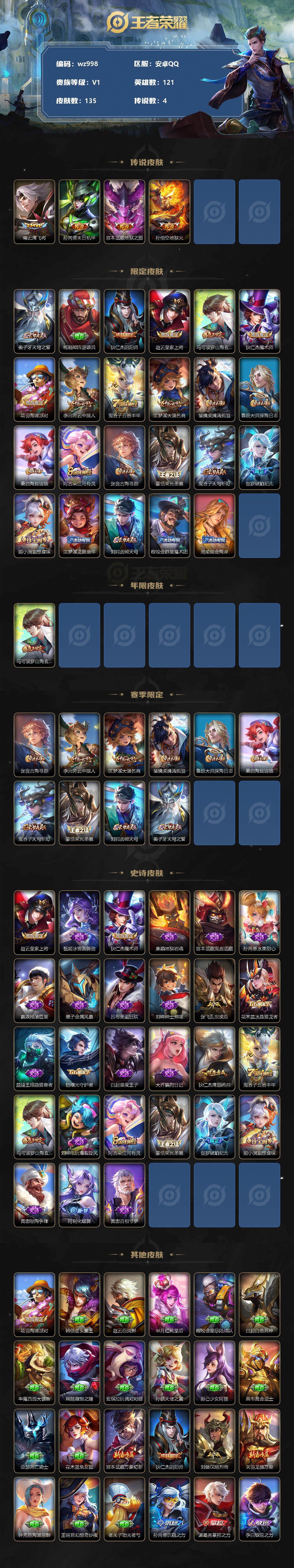 【账号佳】【王者荣耀】【编号:3339773】【可二次实名】【wz998】【商品标题】:安卓Q-V1-永恒钻石I段位-121英雄-135皮肤-0典藏-0珍品无双-0无双-0珍品传说-4传说-27史诗 【传说皮肤】:曜云鹰飞将,孙尚香末日机甲,宫本武藏地狱之眼,孙悟空地狱火 【限定皮肤】:姜子牙天穹之誓,杨戬破阵退雄兵,狄仁杰阴阳师,赵云皇家上将,马可波罗山海玄木吟,狄仁杰魔术师,项羽海滩派对,李元芳云中旅人,鬼谷子五谷丰年,沈梦溪大漠名商,裴擒虎擒涛扼浪,鲁班大师探海日志,桑启海盐诗旅,阿古朵江河有灵,张良古海寻踪,蒙恬荣光圣徽,鬼谷子天穹祈灯,伽罗琥珀纪元,姬小满妄想食味,沈梦溪龙舞盛年,刘邦剑破天穹,程咬金群星魔术团,周瑜熔金海岸 【年限皮肤】:马可波罗山海玄木吟 【赛季限定】:张良古海寻踪,李元芳云中旅人,沈梦溪大漠名商,裴擒虎擒涛扼浪,鲁班大师探海日志,桑启海盐诗旅,鬼谷子天穹祈灯,蒙恬荣光圣徽,刘邦剑破天穹,姜子牙天穹之誓 【史诗皮肤】:赵云皇家上将,甄姬冰雪圆舞曲,狄仁杰魔术师,廉颇地狱岩魂,宫本武藏鬼剑武藏,孙尚香水果甜心,嬴政摇滚巨星,墨子金属风暴,吕布圣诞狂欢,刘禅绅士熊喵,张飞乱世虎臣,花木兰水晶猎龙者,兰陵王暗隐猎兽者,铠曙光守护者,白起星夜王子,大乔猫狗日记,狄仁杰鹰眼统帅,鬼谷子五谷丰年,马可波罗山海玄木吟,刘禅电玩爆裂旋风,阿古朵江河有灵,蒙恬荣光圣徽,伽罗琥珀纪元,姬小满妄想食味,黄忠怒海争锋,阿轲化蝶舞,黄忠百相守梦 【其他皮肤】:项羽海滩派对,韩信街头霸王,赵云忍炎影,芈月红桃皇后,程咬金星际陆战队,白起白色死神,牛魔西部大镖客,扁鹊救世之瞳,安琪拉玩偶对对碰,孙膑天使之翼,妲己少女阿狸,典韦黄金武士,亚瑟死亡骑士,花木兰兔女郎,宫本武藏万象初新,狄仁杰阴阳师,刘备汉昭烈帝,关羽龙腾万里,钟无艳海滩丽影,王昭君幻想奇妙夜,老夫子功夫老勺,孙尚香沉稳之力,诸葛亮掌控之力,李白敏锐之力,苏烈坚韧之力,大乔守护之力,明世隐虹云星官,张良幽兰居士,姜子牙炽热元素使,哪吒次元突破,狂铁特工战影,露娜瓷语鉴心,鲁班大师乓乓大师,沈梦溪大漠名商,蒙恬蔚蓝守将,李元芳云中旅人,刘备潮玩造梦师,桑启海盐诗旅,海月幻泉雾影,猪八戒潮玩探月行,牛魔牛运亨通,裴擒虎擒涛扼浪,太乙真人劲辣红锅,鲁班大师探海日志,李元芳妄想特派,哪吒热血海滩,张良古海寻踪,亚连破局者,后羿完美运算,鬼谷子天穹祈灯,嫦娥漠中幻影,朵莉亚金色潮汐,亚瑟鸿运当头,沈梦溪龙舞盛年,钟无艳春野之旅,扁鹊无尽旅途,刘邦剑破天穹,盘古经纬探寻者,程咬金群星魔术团,大司命暗都幽影,杨戬破阵退雄兵,姜子牙天穹之誓,周瑜熔金海岸,东皇太一噬灭天穹,苍苍林狼骑,太乙真人谧流熔炉,典韦铁骨偃魂,明世隐景韶洛都,戈娅玫蓝誓约,刘备浪漫序章,钟馗虚灵犬护,苏烈春野闲踪,张良灵野札记,甄姬逆浪荇歌,云中君云械蓝图,庄周锦麟游梦,莱西奥踏浪烽翎,鬼谷子克喵,哪吒罗小黑战记,鲁班七号木偶奇遇记,项羽帝国元帅,貂蝉异域舞娘,曹操超能战警,后羿精灵王,李白范海辛,虞姬加勒比小姐,夏侯惇战争骑士,马可波罗激情绿茵,黄忠芝加哥教父,百里守约绝影神枪,百里玄策威尼斯狂欢,女娲尼罗河女神,杨玉环霓裳曲,弈星踏雪寻梅,司马懿魇语军师,云中君荷鲁斯之眼,马超幸存者,蒙犽归虚梦演,澜孤猎,司空震启蛰,云缨赤焰之缨,暃碧珀绯影 【内测皮肤】:狂铁特工战影 【营地ID】:1847593359