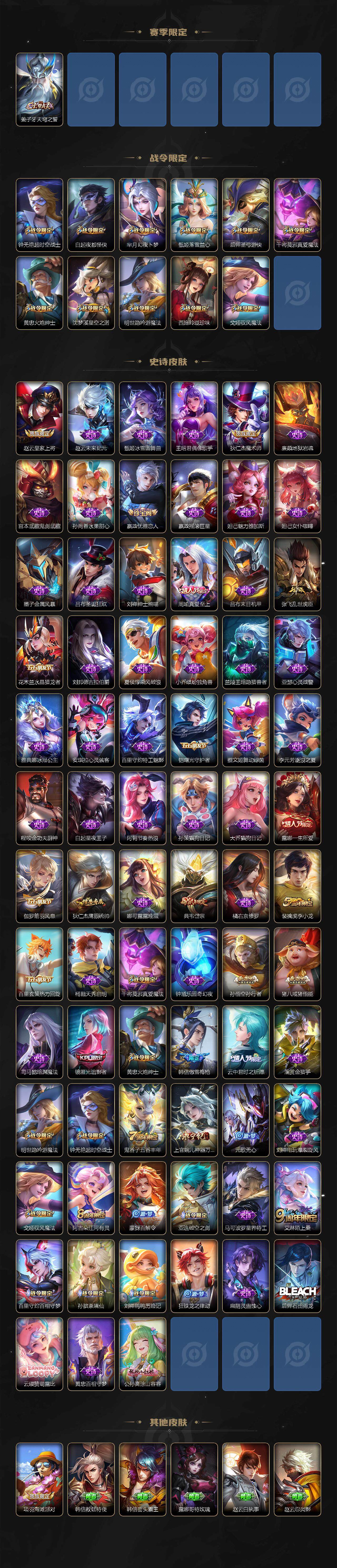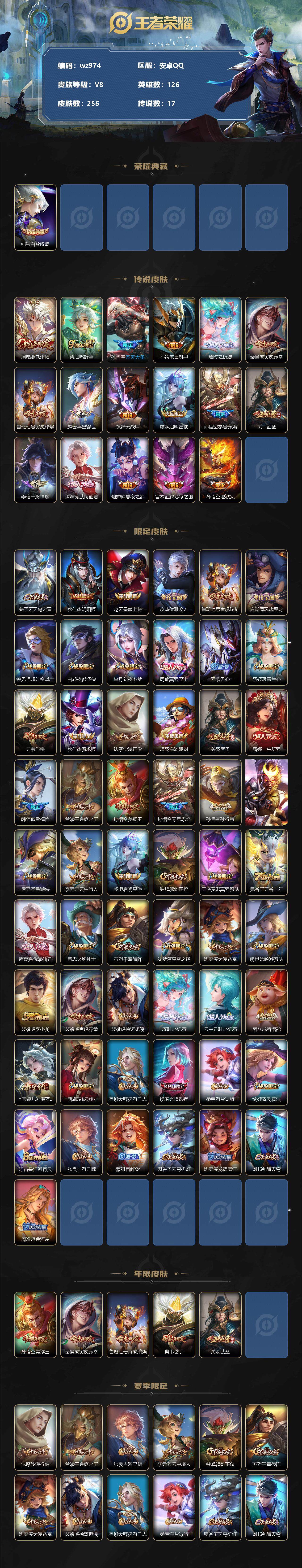 【账号佳】【王者荣耀】【编号:3339774】【可二次实名】【wz974】【商品标题】:安卓Q-V8-永恒钻石II段位-126英雄-256皮肤-1典藏-0珍品无双-0无双-0珍品传说-17传说-75史诗 【荣耀典藏】:铠银白咏叹调 【传说皮肤】:澜愿照九州拓,桑启鸣野蒿,孙悟空齐天大圣,孙策末日机甲,瑶时之祈愿,裴擒虎寅虎赤拳,鲁班七号寅虎瑞焰,赵云淬星耀世,铠绛天战甲,虞姬启明星使,孙悟空零号赤焰,关羽武圣,李信一念神魔,诸葛亮武陵仙君,貂蝉仲夏夜之梦,宫本武藏地狱之眼,孙悟空地狱火 【限定皮肤】:姜子牙天穹之誓,狄仁杰阴阳师,赵云皇家上将,嬴政优雅恋人,鲁班七号寅虎瑞焰,高渐离玩趣恶龙,钟无艳超时空战士,白起夜都怪侠,芈月幻夜卜梦,周瑜真爱至上,元歌无心,甄姬落雪兰心,典韦岱宗,狄仁杰魔术师,达摩沙漠行僧,项羽海滩派对,关羽武圣,露娜一生所爱,韩信傲雪梅枪,兰陵王金庭之子,孙悟空美猴王,孙悟空零号赤焰,孙悟空孙行者,孙悟空齐天大圣,后羿圣弓游侠,李元芳云中旅人,虞姬启明星使,钟馗驱傩正仪,干将莫邪真爱魔法,鬼谷子五谷丰年,诸葛亮武陵仙君,黄忠火炮绅士,苏烈千军破阵,沈梦溪星空之诺,沈梦溪大漠名商,明世隐吟游魔法,裴擒虎李小龙,裴擒虎寅虎赤拳,裴擒虎擒涛扼浪,瑶时之祈愿,云中君时之祈愿,猪八戒猪悟能,上官婉儿神器万象笔,西施玲珑珍味,鲁班大师探海日志,镜匿光追影者,桑启海盐诗旅,戈娅驭风魔法,阿古朵江河有灵,张良古海寻踪,蒙犽百解令,鬼谷子天穹祈灯,沈梦溪龙舞盛年,刘邦剑破天穹,周瑜熔金海岸 【年限皮肤】:孙悟空美猴王,裴擒虎寅虎赤拳,鲁班七号寅虎瑞焰,典韦岱宗,关羽武圣 【赛季限定】:达摩沙漠行僧,兰陵王金庭之子,张良古海寻踪,李元芳云中旅人,钟馗驱傩正仪,苏烈千军破阵,沈梦溪大漠名商,裴擒虎擒涛扼浪,鲁班大师探海日志,桑启海盐诗旅,鬼谷子天穹祈灯,刘邦剑破天穹,姜子牙天穹之誓 【战令限定】:钟无艳超时空战士,白起夜都怪侠,芈月幻夜卜梦,甄姬落雪兰心,后羿圣弓游侠,干将莫邪真爱魔法,黄忠火炮绅士,沈梦溪星空之诺,明世隐吟游魔法,西施玲珑珍味,戈娅驭风魔法 【史诗皮肤】:赵云皇家上将,赵云未来纪元,甄姬冰雪圆舞曲,王昭君偶像歌手,狄仁杰魔术师,廉颇地狱岩魂,宫本武藏鬼剑武藏,孙尚香水果甜心,嬴政优雅恋人,嬴政摇滚巨星,妲己魅力维加斯,妲己女仆咖啡,墨子金属风暴,吕布圣诞狂欢,刘禅绅士熊喵,周瑜真爱至上,吕布末日机甲,张飞乱世虎臣,花木兰水晶猎龙者,刘邦德古拉伯爵,夏侯惇乘风破浪,小乔缤纷独角兽,兰陵王暗隐猎兽者,亚瑟心灵战警,雅典娜冰冠公主,安琪拉心灵骇客,百里守约特工魅影,铠曙光守护者,蔡文姬舞动绿茵,李元芳逐浪之夏,程咬金功夫厨神,白起星夜王子,阿轲节奏热浪,孙策猫狗日记,大乔猫狗日记,露娜一生所爱,伽罗箭羽风息,狄仁杰鹰眼统帅,娜可露露晚萤,典韦岱宗,橘右京修罗,裴擒虎李小龙,百里玄策热力回旋,杨戬天秀启明,干将莫邪真爱魔法,钟馗乐园奇幻夜,孙悟空孙行者,猪八戒猪悟能,司马懿暗渊魔法,镜匿光追影者,黄忠火炮绅士,韩信傲雪梅枪,云中君时之祈愿,澜赏金猎手,明世隐吟游魔法,钟无艳超时空战士,鬼谷子五谷丰年,上官婉儿神器万象笔,元歌无心,刘禅电玩爆裂旋风,戈娅驭风魔法,阿古朵江河有灵,蒙犽百解令,亚连破空之剑,马可波罗星界特工,艾琳陌上桑,百里守约百相守梦,孙膑茶境仙,刘禅鸭鸭历险记,狂铁龙之律动,扁鹊灵蛊蚀心,后羿石田雨龙,云缨赞萌露比,黄忠百相守梦,公孙离涂山容容 【其他皮肤】:项羽海滩派对,韩信教廷特使,韩信街头霸王,露娜哥特玫瑰,赵云白执事,赵云忍炎影,芈月红桃皇后,牛魔西部大镖客,扁鹊化身博士,孙膑天使之翼,姜子牙时尚教父,妲己少女阿狸,典韦黄金武士,亚瑟死亡骑士,达摩拳王,孙悟空美猴王,花木兰兔女郎,甄姬花好人间,刘备万事如意,宫本武藏万象初新,狄仁杰阴阳师,刘备纽约教父,刘备汉昭烈帝,关羽龙腾万里,钟无艳海滩丽影,王昭君幻想奇妙夜,狂铁命运角斗场,老夫子功夫老勺,孙尚香沉稳之力,诸葛亮掌控之力,李白敏锐之力,鬼谷子幻乐之宴,苏烈坚韧之力,大乔守护之力,明世隐虹云星官,吕布野性能量,高渐离玩趣恶龙,沈梦溪鲨炮海盗猫,沈梦溪星空之诺,哪吒次元突破,狂铁特工战影,刘禅秘密基地,杨戬次元傲视,张良缤纷绘卷,钟馗驱傩正仪,鲁班大师乓乓大师,苏烈千军破阵,后羿圣弓游侠,典韦铁甲之心,妲己紫罗兰之誓,马可波罗潮玩牛仔,达摩沙漠行僧,芈月幻夜卜梦,程咬金无双福将,刘邦虎啸剑宗,白起夜都怪侠,兰陵王金庭之子,刘禅唤灵魔甲,米莱狄契约魔法,沈梦溪大漠名商,蒙恬蔚蓝守将,甄姬落雪兰心,李元芳云中旅人,桑启海盐诗旅,海月幻泉雾影,猪八戒潮玩探月行,白起乐园追猎者,裴擒虎擒涛扼浪,太乙真人劲辣红锅,莱西奥西部游侠,鲁班大师探海日志,西施玲珑珍味,姬小满零食大作战,李元芳妄想特派,哪吒热血海滩