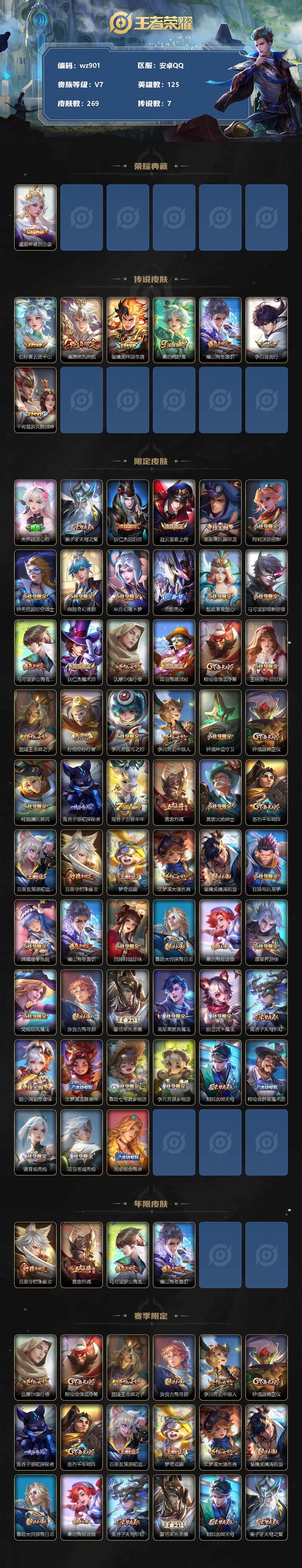 【账号佳】【王者荣耀】【编号:3339797】【可二次实名】【wz901】【商品标题】:安卓Q-V7-最强王者段位-125英雄-269皮肤-1典藏-0珍品无双-0无双-0珍品传说-7传说-73史诗 【荣耀典藏】:虞姬神鉴启示录 【传说皮肤】:公孙离云诺千山,澜愿照九州拓,裴擒虎祥瑞亨通,桑启鸣野蒿,曜山海苍雷引,李白诗剑行,干将莫邪久胜战神 【限定皮肤】:大乔绒语心约,姜子牙天穹之誓,狄仁杰阴阳师,赵云皇家上将,高渐离玩趣恶龙,阿轲迷踪丽影,钟无艳超时空战士,扁鹊奇幻香踪,芈月幻夜卜梦,元歌无心,甄姬落雪兰心,马可波罗暗影游猎,马可波罗山海玄木吟,狄仁杰魔术师,达摩沙漠行僧,项羽海滩派对,程咬金演武夺筹,王昭君午后时光,兰陵王金庭之子,孙悟空孙行者,李元芳银河之约,李元芳云中旅人,钟馗神迹守卫,钟馗驱傩正仪,杨戬潮玩骑兵,鬼谷子原初探秘者,鬼谷子五谷丰年,黄忠烈魂,黄忠火炮绅士,苏烈千军破阵,百里玄策原初追逐者,百里守约朱雀志,梦奇顽趣,沈梦溪大漠名商,裴擒虎擒涛扼浪,狂铁电玩高手,嫦娥暖冬兔眠,曜山海苍雷引,西施玲珑珍味,鲁班大师探海日志,桑启海盐诗旅,暃星界游侠,戈娅驭风魔法,张良古海寻踪,蒙恬荣光圣徽,高渐离燃音魔法,妲己灵卜魔法,鬼谷子天穹祈灯,姬小满妄想食味,沈梦溪龙舞盛年,鲁班七号蔬乡物语,李元芳蔬乡物语,刘邦剑破天穹,程咬金群星魔术团,镜青焰无极,项羽苍威无极,周瑜熔金海岸 【年限皮肤】:百里守约朱雀志,黄忠烈魂,马可波罗山海玄木吟,曜山海苍雷引 【赛季限定】:达摩沙漠行僧,程咬金演武夺筹,兰陵王金庭之子,张良古海寻踪,李元芳云中旅人,钟馗驱傩正仪,鬼谷子原初探秘者,苏烈千军破阵,百里玄策原初追逐者,梦奇顽趣,沈梦溪大漠名商,裴擒虎擒涛扼浪,鲁班大师探海日志,桑启海盐诗旅,鬼谷子天穹祈灯,蒙恬荣光圣徽,刘邦剑破天穹,姜子牙天穹之誓 【战令限定】:阿轲迷踪丽影,钟无艳超时空战士,扁鹊奇幻香踪,芈月幻夜卜梦,甄姬落雪兰心,马可波罗暗影游猎,王昭君午后时光,李元芳银河之约,钟馗神迹守卫,杨戬潮玩骑兵,黄忠火炮绅士,狂铁电玩高手,嫦娥暖冬兔眠,西施玲珑珍味,暃星界游侠,戈娅驭风魔法,高渐离燃音魔法,妲己灵卜魔法,鲁班七号蔬乡物语,李元芳蔬乡物语,镜青焰无极,项羽苍威无极 【史诗皮肤】:露娜紫霞仙子,赵云皇家上将,赵云未来纪元,貂蝉圣诞恋歌,王昭君偶像歌手,狄仁杰魔术师,廉颇地狱岩魂,宫本武藏鬼剑武藏,孙尚香水果甜心,嬴政摇滚巨星,妲己魅力维加斯,墨子金属风暴,曹操幽灵船长,李白千年之狐,吕布末日机甲,张飞乱世虎臣,韩信白龙吟,花木兰水晶猎龙者,刘邦德古拉伯爵,夏侯惇乘风破浪,兰陵王暗隐猎兽者,诸葛亮黄金分割率,亚瑟心灵战警,安琪拉心灵骇客,百里守约特工魅影,铠曙光守护者,刘禅天才门将,李元芳逐浪之夏,程咬金功夫厨神,白起星夜王子,阿轲节奏热浪,孙策猫狗日记,百里守约朱雀志,伽罗箭羽风息,狄仁杰鹰眼统帅,李元芳银河之约,娜可露露晚萤,阿轲迷踪丽影,橘右京修罗,黄忠烈魂,孙尚香时之恋人,马可波罗暗影游猎,百里玄策原初追逐者,孙悟空孙行者,司马懿暗渊魔法,黄忠火炮绅士,澜赏金猎手,狂铁电玩高手,钟无艳超时空战士,鬼谷子五谷丰年,元歌无心,梦奇顽趣,暃星界游侠,马可波罗山海玄木吟,扁鹊奇幻香踪,刘禅电玩爆裂旋风,戈娅驭风魔法,妲己灵卜魔法,高渐离燃音魔法,蒙恬荣光圣徽,姬小满妄想食味,鲁班七号蔬乡物语,镜青焰无极,亚连破空之剑,艾琳陌上桑,百里守约百相守梦,牛魔星界战将,孙膑茶境仙,赵怀真器灵浮梦炉,狄仁杰绮世丹青,阿轲化蝶舞,狂铁龙之律动,黄忠百相守梦,公孙离涂山容容 【其他皮肤】:项羽海滩派对,韩信教廷特使,韩信街头霸王,露娜哥特玫瑰,阿轲爱心护理,赵云忍炎影,芈月红桃皇后,程咬金星际陆战队,白起白色死神,牛魔西部大镖客,扁鹊化身博士,扁鹊救世之瞳,安琪拉玩偶对对碰,孙膑天使之翼,姜子牙时尚教父,妲己少女阿狸,典韦黄金武士,亚瑟死亡骑士,达摩拳王,花木兰兔女郎,张飞五福同心,甄姬花好人间,刘备万事如意,后羿阿尔法小队,狄仁杰阴阳师,刘备纽约教父,刘备汉昭烈帝,关羽龙腾万里,墨子进击墨子号,钟无艳海滩丽影,王昭君幻想奇妙夜,狂铁命运角斗场,老夫子功夫老勺,孙尚香沉稳之力,诸葛亮掌控之力,李白敏锐之力,鬼谷子幻乐之宴,苏烈坚韧之力,明世隐虹云星官,吕布野性能量,钟馗神迹守卫,孙膑归虚梦演,高渐离玩趣恶龙,沈梦溪鲨炮海盗猫,姜子牙炽热元素使,哪吒次元突破,狂铁特工战影,鬼谷子原初探秘者,刘禅秘密基地,露娜瓷语鉴心,程咬金演武夺筹,张良缤纷绘卷,钟馗驱傩正仪,鲁班大师乓乓大师,苏烈千军破阵,马可波罗潮玩牛仔,达摩沙漠行僧,芈月幻夜卜梦,程咬金无双福将,兰陵王金庭之子,刘禅唤灵魔甲,王昭君午后时光,沈梦溪大漠名商,蒙犽胡桃狂想曲,蒙恬蔚蓝守将,甄姬落雪兰心,李元芳云中旅人,戈娅危途狂花,刘