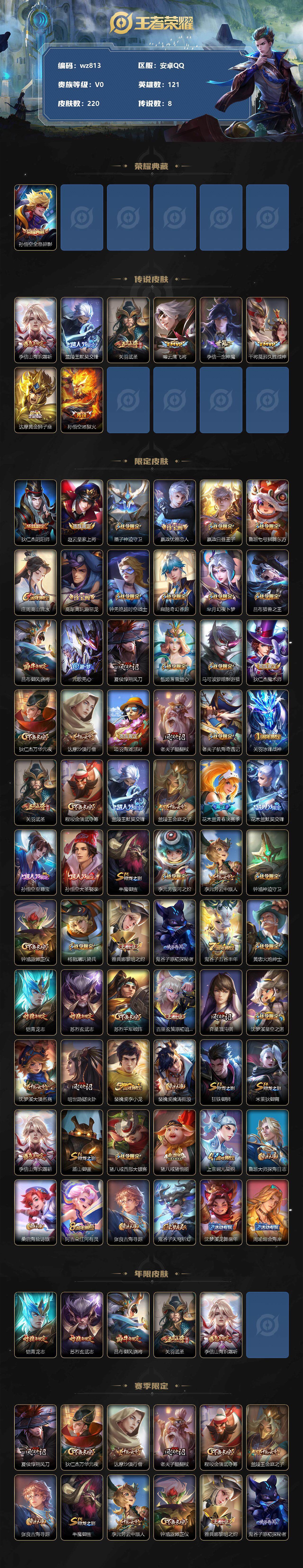 【账号佳】【王者荣耀】【编号:3339840】【可二次实名】【wz813】【商品标题】:安卓Q-V0-尊贵铂金IV段位-121英雄-220皮肤-1典藏-0珍品无双-0无双-0珍品传说-8传说-69史诗 【荣耀典藏】:孙悟空全息碎影 【传说皮肤】:李信山海炽霜斩,兰陵王默契交锋,关羽武圣,曜云鹰飞将,李信一念神魔,干将莫邪久胜战神,达摩黄金狮子座,孙悟空地狱火 【限定皮肤】:狄仁杰阴阳师,赵云皇家上将,墨子神迹守卫,嬴政优雅恋人,嬴政白昼王子,鲁班七号狮舞东方,庄周高山流水,高渐离玩趣恶龙,钟无艳超时空战士,扁鹊奇幻香踪,芈月幻夜卜梦,吕布猎兽之王,吕布御风骁将,元歌无心,夏侯惇朔风刀,甄姬落雪兰心,马可波罗暗影游猎,狄仁杰魔术师,狄仁杰万华元夜,达摩沙漠行僧,项羽海滩派对,老夫子醍醐杖,老夫子航海奇遇记,关羽冰锋战神,关羽武圣,程咬金演武夺筹,兰陵王默契交锋,兰陵王金庭之子,花木兰青春决赛季,花木兰默契交锋,孙悟空至尊宝,孙悟空大圣娶亲,牛魔御旌,李元芳银河之约,李元芳云中旅人,钟馗神迹守卫,钟馗驱傩正仪,杨戬潮玩骑兵,雅典娜黎明之约,鬼谷子原初探秘者,鬼谷子五谷丰年,黄忠火炮绅士,铠青龙志,苏烈玄武志,苏烈千军破阵,百里玄策原初追逐者,弈星混沌棋,沈梦溪星空之诺,沈梦溪大漠名商,明世隐疑决卦,裴擒虎李小龙,裴擒虎擒涛扼浪,狂铁御狮,米莱狄御霄,李信山海炽霜斩,盾山御銮,猪八戒西部大镖客,猪八戒猪悟能,上官婉儿梁祝,鲁班大师探海日志,桑启海盐诗旅,阿古朵江河有灵,张良古海寻踪,鬼谷子天穹祈灯,沈梦溪龙舞盛年,周瑜熔金海岸 【年限皮肤】:铠青龙志,苏烈玄武志,吕布御风骁将,关羽武圣,李信山海炽霜斩 【赛季限定】:夏侯惇朔风刀,狄仁杰万华元夜,达摩沙漠行僧,老夫子醍醐杖,程咬金演武夺筹,兰陵王金庭之子,张良古海寻踪,牛魔御旌,李元芳云中旅人,钟馗驱傩正仪,雅典娜黎明之约,鬼谷子原初探秘者,苏烈千军破阵,百里玄策原初追逐者,弈星混沌棋,沈梦溪大漠名商,明世隐疑决卦,裴擒虎擒涛扼浪,狂铁御狮,米莱狄御霄,盾山御銮,鲁班大师探海日志,桑启海盐诗旅,鬼谷子天穹祈灯 【战令限定】:墨子神迹守卫,嬴政白昼王子,鲁班七号狮舞东方,钟无艳超时空战士,扁鹊奇幻香踪,芈月幻夜卜梦,吕布猎兽之王,甄姬落雪兰心,马可波罗暗影游猎,老夫子航海奇遇记,李元芳银河之约,钟馗神迹守卫,杨戬潮玩骑兵,黄忠火炮绅士,沈梦溪星空之诺,猪八戒西部大镖客 【史诗皮肤】:鲁班七号电玩小子,项羽苍穹之光,露娜紫霞仙子,赵云皇家上将,赵云未来纪元,貂蝉圣诞恋歌,甄姬冰雪圆舞曲,王昭君偶像歌手,狄仁杰魔术师,廉颇地狱岩魂,宫本武藏鬼剑武藏,孙尚香水果甜心,嬴政优雅恋人,嬴政摇滚巨星,妲己魅力维加斯,妲己女仆咖啡,墨子金属风暴,吕布圣诞狂欢,刘禅绅士熊喵,曹操幽灵船长,李白千年之狐,吕布末日机甲,张飞乱世虎臣,韩信白龙吟,关羽冰锋战神,孙悟空至尊宝,花木兰水晶猎龙者,刘邦德古拉伯爵,夏侯惇乘风破浪,小乔缤纷独角兽,兰陵王暗隐猎兽者,诸葛亮黄金分割率,亚瑟心灵战警,花木兰青春决赛季,百里守约特工魅影,铠曙光守护者,蔡文姬舞动绿茵,刘禅天才门将,李元芳逐浪之夏,程咬金功夫厨神,白起星夜王子,嬴政白昼王子,孙策猫狗日记,铠青龙志,孙悟空大圣娶亲,苏烈玄武志,伽罗箭羽风息,鲁班七号狮舞东方,狄仁杰鹰眼统帅,上官婉儿梁祝,李元芳银河之约,娜可露露晚萤,不知火舞魅语,橘右京修罗,马可波罗暗影游猎,百里玄策原初追逐者,裴擒虎李小龙,吕布御风骁将,花木兰默契交锋,老夫子航海奇遇记,杨戬天秀启明,猪八戒猪悟能,庄周高山流水,黄忠火炮绅士,雅典娜黎明之约,钟无艳超时空战士,鬼谷子五谷丰年,元歌无心,扁鹊奇幻香踪,阿古朵江河有灵 【其他皮肤】:项羽海滩派对,韩信教廷特使,韩信街头霸王,阿轲爱心护理,达摩大发明家,赵云白执事,赵云忍炎影,芈月红桃皇后,白起白色死神,扁鹊化身博士,宫本武藏未来纪元,安琪拉玩偶对对碰,孙膑天使之翼,姜子牙时尚教父,妲己少女阿狸,典韦黄金武士,亚瑟死亡骑士,达摩拳王,花木兰兔女郎,张飞五福同心,刘备万事如意,宫本武藏万象初新,狄仁杰阴阳师,刘备纽约教父,刘备汉昭烈帝,关羽龙腾万里,钟无艳海滩丽影,宫本武藏霸王丸,王昭君幻想奇妙夜,狂铁命运角斗场,老夫子功夫老勺,牛魔制霸全明星,孙尚香沉稳之力,诸葛亮掌控之力,鬼谷子幻乐之宴,狂铁御狮,苏烈坚韧之力,大乔守护之力,项羽科学大爆炸,米莱狄御霄,吕布猎兽之王,明世隐虹云星官,牛魔御旌,钟馗神迹守卫,盾山御銮,孙膑归虚梦演,高渐离玩趣恶龙,沈梦溪鲨炮海盗猫,姜子牙炽热元素使,夏侯惇朔风刀,沈梦溪星空之诺,弈星混沌棋,哪吒次元突破,明世隐疑决卦,盾山圆桌骑士,老夫子醍醐杖,猪八戒西部大镖客,狂铁特工战影,廉颇无尽征程,鬼谷子原初探秘者,狄仁杰万华元夜,杨戬次元傲视,程咬金演武夺筹,张良缤纷绘卷