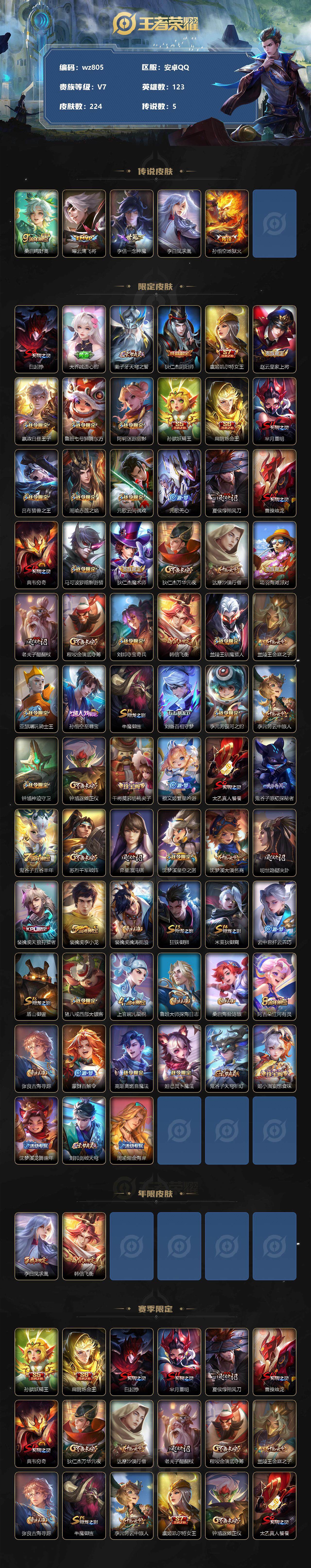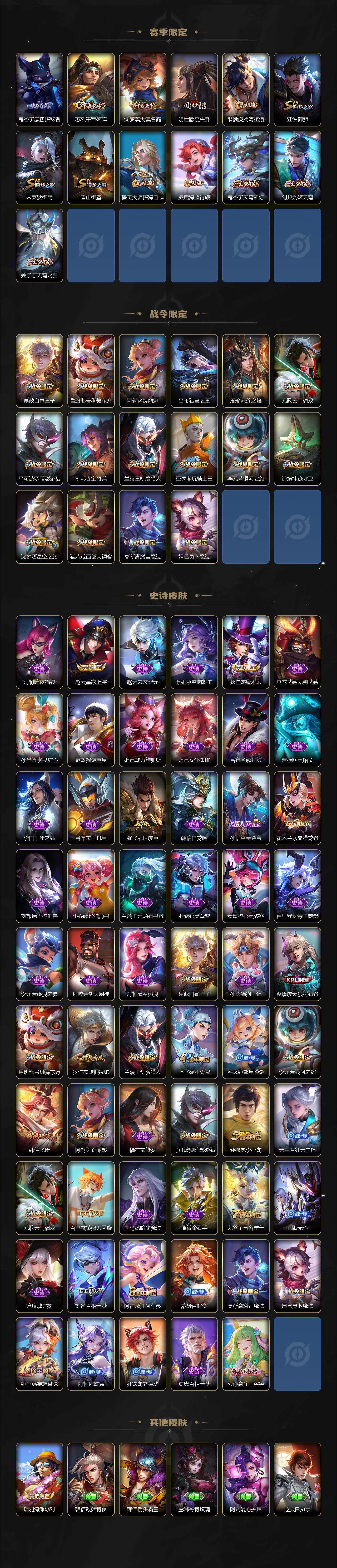【账号佳】【王者荣耀】【编号:3339841】【可二次实名】【wz805】【商品标题】:安卓Q-V7-最强王者段位-123英雄-224皮肤-0典藏-0珍品无双-0无双-0珍品传说-5传说-58史诗 【传说皮肤】:桑启鸣野蒿,曜云鹰飞将,李信一念神魔,李白凤求凰,孙悟空地狱火 【限定皮肤】:白起狰,大乔绒语心约,姜子牙天穹之誓,狄仁杰阴阳师,虞姬凯尔特女王,赵云皇家上将,嬴政白昼王子,鲁班七号狮舞东方,阿轲迷踪丽影,孙膑妖精王,扁鹊炼金王,芈月重明,吕布猎兽之王,周瑜赤莲之焰,元歌云间偶戏,元歌无心,夏侯惇朔风刀,曹操烛龙,典韦穷奇,马可波罗暗影游猎,狄仁杰魔术师,狄仁杰万华元夜,达摩沙漠行僧,项羽海滩派对,老夫子醍醐杖,程咬金演武夺筹,刘邦夺宝奇兵,韩信飞衡,兰陵王驯魔猎人,兰陵王金庭之子,亚瑟潮玩骑士王,孙悟空至尊宝,牛魔御旌,刘备百相守梦,李元芳银河之约,李元芳云中旅人,钟馗神迹守卫,钟馗驱傩正仪,干将莫邪胡桃夹子,蔡文姬繁星吟游,太乙真人饕餮,鬼谷子原初探秘者,鬼谷子五谷丰年,苏烈千军破阵,弈星混沌棋,沈梦溪星空之诺,沈梦溪大漠名商,明世隐疑决卦,裴擒虎天狼狩猎者,裴擒虎李小龙,裴擒虎擒涛扼浪,狂铁御狮,米莱狄御霄,云中君纤云弄巧,盾山御銮,猪八戒西部大镖客,上官婉儿梁祝,鲁班大师探海日志,桑启海盐诗旅,阿古朵江河有灵,张良古海寻踪,蒙犽百解令,高渐离燃音魔法,妲己灵卜魔法,鬼谷子天穹祈灯,姬小满妄想食味,沈梦溪龙舞盛年,刘邦剑破天穹,周瑜熔金海岸 【年限皮肤】:李白凤求凰,韩信飞衡 【赛季限定】:孙膑妖精王,扁鹊炼金王,白起狰,芈月重明,夏侯惇朔风刀,曹操烛龙,典韦穷奇,狄仁杰万华元夜,达摩沙漠行僧,老夫子醍醐杖,程咬金演武夺筹,兰陵王金庭之子,张良古海寻踪,牛魔御旌,李元芳云中旅人,虞姬凯尔特女王,钟馗驱傩正仪,太乙真人饕餮,鬼谷子原初探秘者,苏烈千军破阵,弈星混沌棋,沈梦溪大漠名商,明世隐疑决卦,裴擒虎擒涛扼浪,狂铁御狮,米莱狄御霄,盾山御銮,鲁班大师探海日志,桑启海盐诗旅,鬼谷子天穹祈灯,刘邦剑破天穹,姜子牙天穹之誓 【战令限定】:嬴政白昼王子,鲁班七号狮舞东方,阿轲迷踪丽影,吕布猎兽之王,周瑜赤莲之焰,元歌云间偶戏,马可波罗暗影游猎,刘邦夺宝奇兵,兰陵王驯魔猎人,亚瑟潮玩骑士王,李元芳银河之约,钟馗神迹守卫,沈梦溪星空之诺,猪八戒西部大镖客,高渐离燃音魔法,妲己灵卜魔法 【史诗皮肤】:阿轲暗夜猫娘,赵云皇家上将,赵云未来纪元,甄姬冰雪圆舞曲,狄仁杰魔术师,宫本武藏鬼剑武藏,孙尚香水果甜心,嬴政摇滚巨星,妲己魅力维加斯,妲己女仆咖啡,吕布圣诞狂欢,曹操幽灵船长,李白千年之狐,吕布末日机甲,张飞乱世虎臣,韩信白龙吟,孙悟空至尊宝,花木兰水晶猎龙者,刘邦德古拉伯爵,小乔缤纷独角兽,兰陵王暗隐猎兽者,亚瑟心灵战警,安琪拉心灵骇客,百里守约特工魅影,李元芳逐浪之夏,程咬金功夫厨神,阿轲节奏热浪,嬴政白昼王子,孙策猫狗日记,裴擒虎天狼狩猎者,鲁班七号狮舞东方,狄仁杰鹰眼统帅,兰陵王驯魔猎人,上官婉儿梁祝,蔡文姬繁星吟游,李元芳银河之约,韩信飞衡,阿轲迷踪丽影,橘右京修罗,马可波罗暗影游猎,裴擒虎李小龙,云中君纤云弄巧,元歌云间偶戏,百里玄策热力回旋,司马懿暗渊魔法,澜赏金猎手,鬼谷子五谷丰年,元歌无心,镜玫瑰异探,刘备百相守梦,阿古朵江河有灵,蒙犽百解令,妲己灵卜魔法,高渐离燃音魔法,姬小满妄想食味,阿轲化蝶舞,狂铁龙之律动,黄忠百相守梦,公孙离涂山容容 【其他皮肤】:项羽海滩派对,韩信教廷特使,韩信街头霸王,露娜哥特玫瑰,阿轲爱心护理,赵云白执事,赵云忍炎影,程咬金星际陆战队,白起白色死神,武则天东方不败,扁鹊化身博士,扁鹊救世之瞳,庄周鲤鱼之梦,宫本武藏未来纪元,安琪拉玩偶对对碰,妲己少女阿狸,典韦黄金武士,亚瑟死亡骑士,达摩拳王,花木兰兔女郎,张飞五福同心,甄姬花好人间,后羿阿尔法小队,狄仁杰阴阳师,孙膑妖精王,扁鹊炼金王,关羽龙腾万里,虞姬凯尔特女王,墨子进击墨子号,白起狰,钟无艳海滩丽影,太乙真人饕餮,宫本武藏霸王丸,曹操烛龙,芈月重明,狂铁命运角斗场,老夫子功夫老勺,孙尚香沉稳之力,典韦穷奇,李白敏锐之力,鬼谷子幻乐之宴,狂铁御狮,苏烈坚韧之力,米莱狄御霄,吕布猎兽之王,明世隐虹云星官,牛魔御旌,小乔丁香结,吕布野性能量,钟馗神迹守卫,盾山御銮,沈梦溪鲨炮海盗猫,姜子牙炽热元素使,夏侯惇朔风刀,周瑜赤莲之焰,沈梦溪星空之诺,弈星混沌棋,哪吒次元突破,鲁班七号黑桃队长,明世隐疑决卦,刘邦夺宝奇兵,盾山圆桌骑士,老夫子醍醐杖,猪八戒西部大镖客,狂铁特工战影,鬼谷子原初探秘者,狄仁杰万华元夜,亚瑟潮玩骑士王,刘禅秘密基地,露娜瓷语鉴心,程咬金演武夺筹,张良缤纷绘卷,钟馗驱傩正仪,鲁班大师乓乓大师,苏烈千军破阵,干将莫邪胡桃夹子,达摩沙漠行僧,程咬金无双福将,兰陵王金庭之子