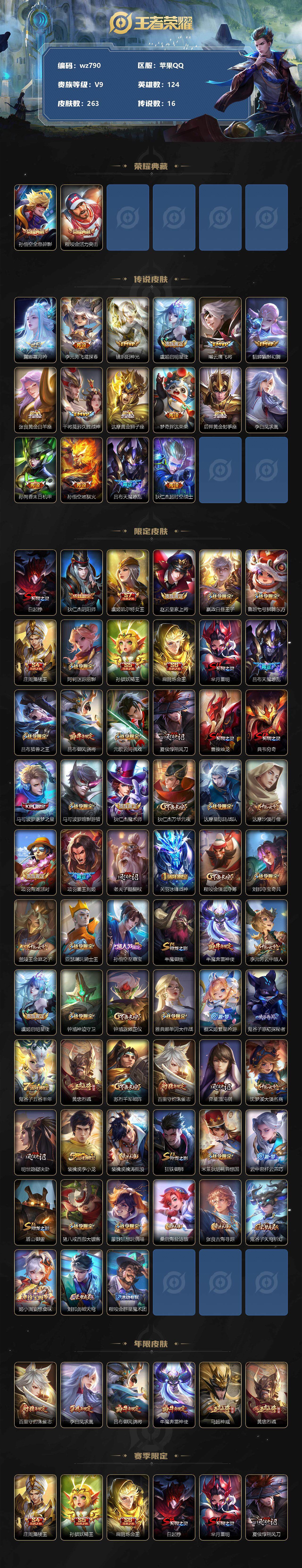 【账号佳】【王者荣耀】【编号:3339848】【可二次实名】【wz790】【商品标题】:苹果Q-V9-至尊星耀I段位-124英雄-263皮肤-2典藏-0珍品无双-0无双-0珍品传说-16传说-58史诗 【荣耀典藏】:孙悟空全息碎影,程咬金活力突击 【传说皮肤】:露娜霜月吟,李元芳飞鸢探春,镜炽阳神光,虞姬启明星使,曜云鹰飞将,貂蝉猫影幻舞,张良黄金白羊座,干将莫邪久胜战神,达摩黄金狮子座,梦奇胖达荣荣,后羿黄金射手座,李白凤求凰,孙尚香末日机甲,孙悟空地狱火,吕布天魔缭乱,狄仁杰超时空战士 【限定皮肤】:白起狰,狄仁杰阴阳师,虞姬凯尔特女王,赵云皇家上将,嬴政白昼王子,鲁班七号狮舞东方,庄周蜃楼王,阿轲迷踪丽影,孙膑妖精王,扁鹊炼金王,芈月重明,吕布天魔缭乱,吕布猎兽之王,吕布御风骁将,元歌云间偶戏,夏侯惇朔风刀,曹操烛龙,典韦穷奇,马可波罗逐梦之星,马可波罗暗影游猎,狄仁杰魔术师,狄仁杰万华元夜,达摩星际陆战队,达摩沙漠行僧,项羽海滩派对,项羽霸王别姬,老夫子醍醐杖,关羽冰锋战神,程咬金演武夺筹,刘邦夺宝奇兵,兰陵王金庭之子,亚瑟潮玩骑士王,孙悟空至尊宝,牛魔御旌,牛魔奔雷神使,李元芳云中旅人,虞姬启明星使,钟馗神迹守卫,钟馗驱傩正仪,雅典娜单词大作战,蔡文姬繁星吟游,鬼谷子原初探秘者,鬼谷子五谷丰年,黄忠烈魂,苏烈千军破阵,百里守约朱雀志,弈星混沌棋,沈梦溪大漠名商,明世隐疑决卦,裴擒虎李小龙,裴擒虎擒涛扼浪,狂铁御狮,米莱狄胡桃异想国,云中君纤云弄巧,盾山御銮,猪八戒西部大镖客,蒙犽狂想玩偶喵,桑启海盐诗旅,张良古海寻踪,鬼谷子天穹祈灯,姬小满妄想食味,刘邦剑破天穹,程咬金群星魔术团 【年限皮肤】:百里守约朱雀志,李白凤求凰,吕布御风骁将,牛魔奔雷神使,马超神威,黄忠烈魂 【赛季限定】:庄周蜃楼王,孙膑妖精王,扁鹊炼金王,白起狰,芈月重明,夏侯惇朔风刀,曹操烛龙,典韦穷奇,狄仁杰万华元夜,达摩沙漠行僧,老夫子醍醐杖,程咬金演武夺筹,兰陵王金庭之子,张良古海寻踪,牛魔御旌,李元芳云中旅人,虞姬凯尔特女王,钟馗驱傩正仪,鬼谷子原初探秘者,苏烈千军破阵,弈星混沌棋,沈梦溪大漠名商,明世隐疑决卦,裴擒虎擒涛扼浪,狂铁御狮,盾山御銮,桑启海盐诗旅,鬼谷子天穹祈灯,刘邦剑破天穹 【战令限定】:嬴政白昼王子,鲁班七号狮舞东方,阿轲迷踪丽影,吕布猎兽之王,元歌云间偶戏,马可波罗暗影游猎,达摩星际陆战队,刘邦夺宝奇兵,亚瑟潮玩骑士王,钟馗神迹守卫,雅典娜单词大作战,米莱狄胡桃异想国,猪八戒西部大镖客,蒙犽狂想玩偶喵 【史诗皮肤】:鲁班七号电玩小子,项羽苍穹之光,露娜紫霞仙子,阿轲暗夜猫娘,赵云皇家上将,赵云未来纪元,甄姬冰雪圆舞曲,王昭君偶像歌手,狄仁杰魔术师,廉颇地狱岩魂,宫本武藏鬼剑武藏,孙尚香水果甜心,嬴政摇滚巨星,妲己魅力维加斯,墨子龙骑士,墨子金属风暴,吕布圣诞狂欢,吕布末日机甲,韩信白龙吟,项羽霸王别姬,关羽冰锋战神,孙悟空至尊宝,花木兰水晶猎龙者,刘邦德古拉伯爵,夏侯惇乘风破浪,小乔缤纷独角兽,兰陵王暗隐猎兽者,马可波罗逐梦之星,亚瑟心灵战警,百里守约特工魅影,铠曙光守护者,蔡文姬舞动绿茵,刘禅天才门将,李元芳逐浪之夏,白起星夜王子,嬴政白昼王子,孙策猫狗日记,百里守约朱雀志,鲁班七号狮舞东方,狄仁杰鹰眼统帅,蔡文姬繁星吟游,阿轲迷踪丽影,橘右京修罗,瑶遇见神鹿,马超神威,黄忠烈魂,马可波罗暗影游猎,蒙犽狂想玩偶喵,裴擒虎李小龙,云中君纤云弄巧,元歌云间偶戏,牛魔奔雷神使,吕布御风骁将,米莱狄胡桃异想国,鬼谷子五谷丰年,姬小满妄想食味,狂铁龙之律动,公孙离涂山容容 【其他皮肤】:项羽海滩派对,韩信教廷特使,韩信街头霸王,露娜哥特玫瑰,达摩大发明家,赵云忍炎影,芈月红桃皇后,程咬金星际陆战队,程咬金爱与正义,白起白色死神,牛魔西部大镖客,扁鹊化身博士,庄周鲤鱼之梦,宫本武藏未来纪元,安琪拉玩偶对对碰,孙膑天使之翼,姜子牙时尚教父,妲己少女阿狸,典韦黄金武士,亚瑟死亡骑士,达摩拳王,花木兰兔女郎,张飞五福同心,甄姬花好人间,刘备万事如意,宫本武藏万象初新,后羿阿尔法小队,狄仁杰阴阳师,庄周蜃楼王,刘备纽约教父,孙膑妖精王,刘备汉昭烈帝,扁鹊炼金王,关羽龙腾万里,虞姬凯尔特女王,墨子进击墨子号,白起狰,钟无艳海滩丽影,宫本武藏霸王丸,曹操烛龙,王昭君幻想奇妙夜,芈月重明,狂铁命运角斗场,老夫子功夫老勺,牛魔制霸全明星,孙尚香沉稳之力,典韦穷奇,诸葛亮掌控之力,李白敏锐之力,鬼谷子幻乐之宴,狂铁御狮,苏烈坚韧之力,大乔守护之力,项羽科学大爆炸,吕布猎兽之王,明世隐虹云星官,庄周奇妙博物学,牛魔御旌,小乔丁香结,吕布野性能量,钟馗神迹守卫,盾山御銮,沈梦溪鲨炮海盗猫,夏侯惇朔风刀,弈星混沌棋,哪吒次元突破,明世隐疑决卦,刘邦夺宝奇兵,盾山圆桌骑士,老夫子醍醐杖,猪八戒西部大镖客,狂铁特工战
