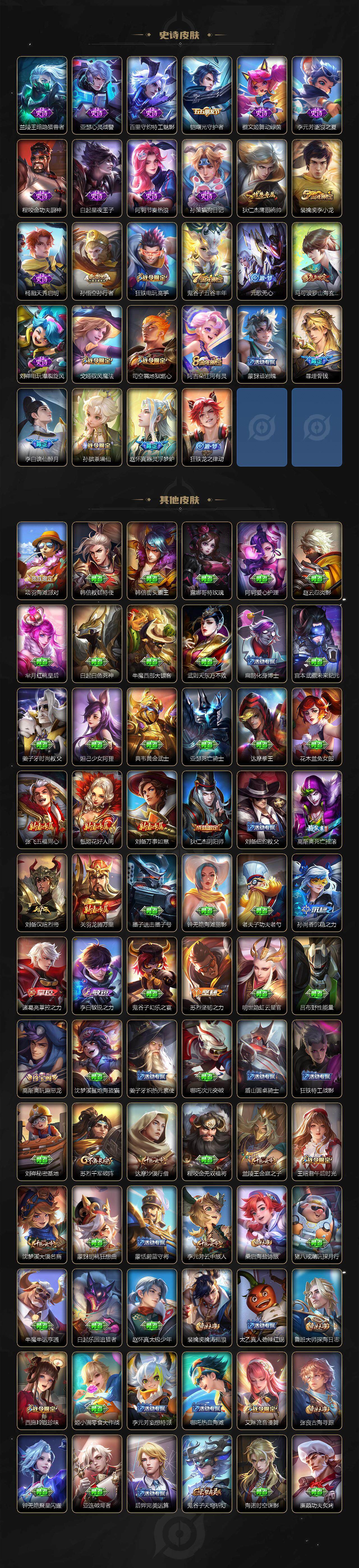 【账号佳】【王者荣耀】【编号:3339968】【可二次实名】【wz441】【商品标题】:安卓Q-V6-至尊星耀II段位-122英雄-191皮肤-1典藏-0珍品无双-0无双-0珍品传说-8传说-46史诗 【荣耀典藏】:韩信弑枪猎影 【传说皮肤】:虞姬愿照岁时盈,桑启鸣野蒿,孙策乘龙淬吴钩,赵云乘龙铭钟鼎,镜炽阳神光,李信一念神魔,花木兰冠军飞将,貂蝉仲夏夜之梦 【限定皮肤】:暃埋骨钱,蒙犽顽岩魄,姜子牙天穹之誓,李白谪仙醉月,狄仁杰阴阳师,赵云皇家上将,孙尚香蔷薇恋人,高渐离死亡摇滚,高渐离玩趣恶龙,元歌无心,马可波罗山海玄木吟,狄仁杰魔术师,达摩沙漠行僧,项羽海滩派对,王昭君午后时光,兰陵王金庭之子,孙悟空孙行者,李元芳云中旅人,鬼谷子五谷丰年,苏烈千军破阵,沈梦溪大漠名商,裴擒虎李小龙,裴擒虎擒涛扼浪,狂铁电玩高手,西施玲珑珍味,鲁班大师探海日志,桑启海盐诗旅,戈娅驭风魔法,艾琳流音漫舞,司空震地狱燃心,阿古朵江河有灵,张良古海寻踪,鬼谷子天穹祈灯,孙策乘龙淬吴钩,赵云乘龙铭钟鼎,沈梦溪龙舞盛年,周瑜熔金海岸 【年限皮肤】:马可波罗山海玄木吟,孙策乘龙淬吴钩,赵云乘龙铭钟鼎 【赛季限定】:达摩沙漠行僧,兰陵王金庭之子,张良古海寻踪,李元芳云中旅人,苏烈千军破阵,沈梦溪大漠名商,裴擒虎擒涛扼浪,鲁班大师探海日志,桑启海盐诗旅,鬼谷子天穹祈灯,姜子牙天穹之誓 【战令限定】:王昭君午后时光,艾琳流音漫舞,狂铁电玩高手,西施玲珑珍味,司空震地狱燃心,戈娅驭风魔法 【史诗皮肤】:露娜紫霞仙子,阿轲暗夜猫娘,赵云皇家上将,赵云未来纪元,甄姬冰雪圆舞曲,狄仁杰魔术师,宫本武藏鬼剑武藏,孙尚香蔷薇恋人,孙尚香水果甜心,嬴政暗夜贵公子,嬴政摇滚巨星,妲己魅力维加斯,妲己女仆咖啡,墨子金属风暴,吕布圣诞狂欢,张飞乱世虎臣,花木兰水晶猎龙者,刘邦德古拉伯爵,兰陵王暗隐猎兽者,亚瑟心灵战警,百里守约特工魅影,铠曙光守护者,蔡文姬舞动绿茵,李元芳逐浪之夏,程咬金功夫厨神,白起星夜王子,阿轲节奏热浪,孙策猫狗日记,狄仁杰鹰眼统帅,裴擒虎李小龙,杨戬天秀启明,孙悟空孙行者,狂铁电玩高手,鬼谷子五谷丰年,元歌无心,马可波罗山海玄木吟,刘禅电玩爆裂旋风,戈娅驭风魔法,司空震地狱燃心,阿古朵江河有灵,蒙犽顽岩魄,暃埋骨钱,李白谪仙醉月,孙膑茶境仙,赵怀真器灵浮梦炉,狂铁龙之律动 【其他皮肤】:项羽海滩派对,韩信教廷特使,韩信街头霸王,露娜哥特玫瑰,阿轲爱心护理,赵云忍炎影,芈月红桃皇后,白起白色死神,牛魔西部大镖客,武则天东方不败,扁鹊化身博士,宫本武藏未来纪元,姜子牙时尚教父,妲己少女阿狸,典韦黄金武士,亚瑟死亡骑士,达摩拳王,花木兰兔女郎,张飞五福同心,甄姬花好人间,刘备万事如意,狄仁杰阴阳师,刘备纽约教父,高渐离死亡摇滚,刘备汉昭烈帝,关羽龙腾万里,墨子进击墨子号,钟无艳海滩丽影,老夫子功夫老勺,孙尚香沉稳之力,诸葛亮掌控之力,李白敏锐之力,鬼谷子幻乐之宴,苏烈坚韧之力,明世隐虹云星官,吕布野性能量,高渐离玩趣恶龙,沈梦溪鲨炮海盗猫,姜子牙炽热元素使,哪吒次元突破,盾山圆桌骑士,狂铁特工战影,刘禅秘密基地,苏烈千军破阵,达摩沙漠行僧,程咬金无双福将,兰陵王金庭之子,王昭君午后时光,沈梦溪大漠名商,蒙犽胡桃狂想曲,蒙恬蔚蓝守将,李元芳云中旅人,桑启海盐诗旅,猪八戒潮玩探月行,牛魔牛运亨通,白起乐园追猎者,赵怀真太极少年,裴擒虎擒涛扼浪,太乙真人劲辣红锅,鲁班大师探海日志,西施玲珑珍味,姬小满零食大作战,李元芳妄想特派,哪吒热血海滩,艾琳流音漫舞,张良古海寻踪,钟无艳聚星闪耀,亚连破局者,后羿完美运算,鬼谷子天穹祈灯,海诺时空谍影,廉颇功夫炙烤,亚瑟鸿运当头,沈梦溪龙舞盛年,大司命暗都幽影,姜子牙天穹之誓,周瑜熔金海岸,盘古敬我三分,东皇太一噬灭天穹,干将莫邪雾都夜雨,苍苍林狼骑,太乙真人谧流熔炉,典韦铁骨偃魂,马超访茗客,影魅影绮裳,西施雪境奇遇,姜子牙星梦巡礼,东皇太一金福满堂,达摩爆裂喵拳,明世隐景韶洛都,戈娅玫蓝誓约,刘备浪漫序章,钟馗虚灵犬护,苏烈春野闲踪,张良灵野札记,阿古朵布丁狗之约,露娜命运加冕,姬小满小满鸭,白起死霸装,甄姬逆浪荇歌,庄周锦麟游梦,鲁班七号木偶奇遇记,项羽帝国元帅,露娜绯红之刃,貂蝉异域舞娘,老夫子潮流仙人,王昭君精灵公主,曹操超能战警,张良一千零一夜,孙悟空西部大镖客,刘禅英喵野望,李白范海辛,关羽天启骑士,蔡文姬蔷薇王座,马可波罗激情绿茵,杨戬埃及法老,太乙真人圆桌骑士,黄忠芝加哥教父,东皇太一东海龙王,铠龙域领主,百里守约绝影神枪,明世隐占星师,孙策海之征途,司马懿魇语军师,伽罗花见巫女,李信灼热之刃,上官婉儿修竹墨客,盘古创世神祝,云中君荷鲁斯之眼,马超幸存者,西施归虚梦演,澜孤猎,司空震启蛰,云缨赤焰之缨,金蝉前尘,暃碧珀绯影 【内测皮肤】:孙尚香蔷薇恋人,高渐离玩趣恶