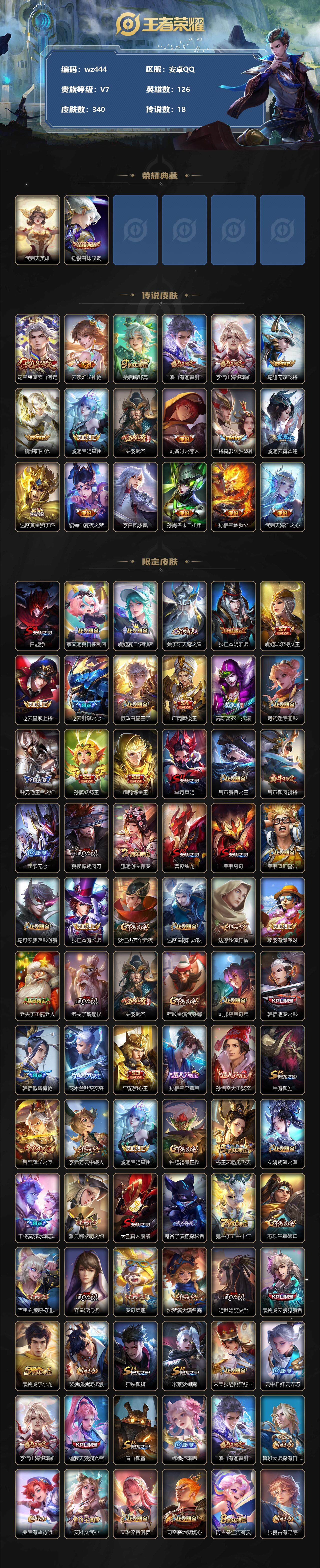 【账号佳】【王者荣耀】【编号:3339972】【可二次实名】【wz444】【商品标题】:安卓Q-V7-最强王者段位-126英雄-340皮肤-1典藏-0珍品无双-0无双-0珍品传说-18传说-97史诗 【荣耀典藏】:武则天英雄,铠银白咏叹调 【传说皮肤】:司空震愿照山河定,云缨幻光神枪,桑启鸣野蒿,曜山海苍雷引,李信山海炽霜斩,马超无双飞将,镜炽阳神光,虞姬启明星使,关羽武圣,刘备时之恋人,干将莫邪久胜战神,虞姬云霓雀翎,达摩黄金狮子座,貂蝉仲夏夜之梦,李白凤求凰,孙尚香末日机甲,孙悟空地狱火,武则天海洋之心 【限定皮肤】:白起狰,蔡文姬夏日便利店,虞姬夏日便利店,姜子牙天穹之誓,狄仁杰阴阳师,虞姬凯尔特女王,赵云皇家上将,赵云引擎之心,嬴政白昼王子,庄周蜃楼王,高渐离死亡摇滚,阿轲迷踪丽影,钟无艳王者之锤,孙膑妖精王,扁鹊炼金王,芈月重明,吕布猎兽之王,吕布御风骁将,元歌无心,夏侯惇朔风刀,甄姬游园惊梦,曹操烛龙,典韦穷奇,典韦蓝屏警告,马可波罗暗影游猎,狄仁杰魔术师,狄仁杰万华元夜,达摩星际陆战队,达摩沙漠行僧,项羽海滩派对,老夫子圣诞老人,老夫子醍醐杖,关羽武圣,程咬金演武夺筹,刘邦夺宝奇兵,韩信逐梦之影,韩信傲雪梅枪,花木兰默契交锋,亚瑟狮心王,孙悟空至尊宝,孙悟空大圣娶亲,牛魔御旌,后羿辉光之辰,李元芳云中旅人,虞姬启明星使,钟馗驱傩正仪,杨玉环遇见飞天,女娲朔望之晖,干将莫邪冰霜恋舞曲,雅典娜黎明之约,太乙真人饕餮,鬼谷子原初探秘者,鬼谷子五谷丰年,苏烈千军破阵,百里玄策原初追逐者,弈星混沌棋,梦奇顽趣,沈梦溪大漠名商,明世隐疑决卦,裴擒虎天狼狩猎者,裴擒虎李小龙,裴擒虎擒涛扼浪,狂铁御狮,米莱狄御霄,米莱狄胡桃异想国,云中君纤云弄巧,李信山海炽霜斩,伽罗天狼溯光者,盾山御銮,嫦娥拒霜思,曜山海苍雷引,鲁班大师探海日志,桑启海盐诗旅,艾琳女武神,艾琳流音漫舞,司空震地狱燃心,阿古朵江河有灵,张良古海寻踪,蒙恬荣光圣徽,高渐离燃音魔法,妲己灵卜魔法,鬼谷子天穹祈灯,鲁班七号蔬乡物语,李元芳蔬乡物语,刘邦剑破天穹,程咬金群星魔术团,关羽决胜骁骑,镜青焰无极,项羽苍威无极,周瑜熔金海岸 【年限皮肤】:李白凤求凰,后羿辉光之辰,吕布御风骁将,关羽武圣,李信山海炽霜斩,曜山海苍雷引 【赛季限定】:庄周蜃楼王,孙膑妖精王,扁鹊炼金王,白起狰,芈月重明,夏侯惇朔风刀,曹操烛龙,典韦穷奇,狄仁杰万华元夜,达摩沙漠行僧,老夫子醍醐杖,程咬金演武夺筹,张良古海寻踪,亚瑟狮心王,牛魔御旌,李元芳云中旅人,虞姬凯尔特女王,钟馗驱傩正仪,雅典娜黎明之约,太乙真人饕餮,鬼谷子原初探秘者,苏烈千军破阵,百里玄策原初追逐者,弈星混沌棋,梦奇顽趣,沈梦溪大漠名商,明世隐疑决卦,裴擒虎擒涛扼浪,狂铁御狮,米莱狄御霄,盾山御銮,鲁班大师探海日志,桑启海盐诗旅,鬼谷子天穹祈灯,蒙恬荣光圣徽,刘邦剑破天穹,姜子牙天穹之誓 【战令限定】:蔡文姬夏日便利店,虞姬夏日便利店,嬴政白昼王子,阿轲迷踪丽影,吕布猎兽之王,典韦蓝屏警告,马可波罗暗影游猎,达摩星际陆战队,刘邦夺宝奇兵,艾琳流音漫舞,女娲朔望之晖,米莱狄胡桃异想国,司空震地狱燃心,高渐离燃音魔法,妲己灵卜魔法,鲁班七号蔬乡物语,李元芳蔬乡物语,镜青焰无极,项羽苍威无极 【史诗皮肤】:鲁班七号电玩小子,项羽苍穹之光,露娜紫霞仙子,阿轲暗夜猫娘,钟无艳王者之锤,赵云皇家上将,赵云未来纪元,貂蝉圣诞恋歌,老夫子圣诞老人,甄姬冰雪圆舞曲,王昭君偶像歌手,狄仁杰魔术师,廉颇地狱岩魂,宫本武藏鬼剑武藏,孙尚香水果甜心,嬴政暗夜贵公子,嬴政摇滚巨星,妲己魅力维加斯,妲己女仆咖啡,墨子龙骑士,墨子金属风暴,吕布圣诞狂欢,刘禅绅士熊喵,曹操幽灵船长,李白千年之狐,张飞乱世虎臣,韩信白龙吟,孙悟空至尊宝,赵云引擎之心,花木兰水晶猎龙者,刘邦德古拉伯爵,韩信逐梦之影,夏侯惇乘风破浪,小乔缤纷独角兽,兰陵王暗隐猎兽者,诸葛亮黄金分割率,甄姬游园惊梦,亚瑟心灵战警,雅典娜冰冠公主,安琪拉心灵骇客,后羿辉光之辰,百里守约特工魅影,蔡文姬舞动绿茵,刘禅天才门将,李元芳逐浪之夏,程咬金功夫厨神,白起星夜王子,阿轲节奏热浪,杨玉环遇见飞天,嬴政白昼王子,孙策猫狗日记,大乔猫狗日记,干将莫邪冰霜恋舞曲,孙悟空大圣娶亲,典韦蓝屏警告,伽罗箭羽风息,裴擒虎天狼狩猎者,狄仁杰鹰眼统帅,娜可露露晚萤,小乔青蛇,阿轲迷踪丽影,瑶遇见神鹿,马可波罗暗影游猎,百里玄策原初追逐者,裴擒虎李小龙,云中君纤云弄巧,吕布御风骁将,花木兰默契交锋,米莱狄胡桃异想国,西施诗语江南,伽罗天狼溯光者,杨戬天秀启明,沈梦溪月团寄思,嫦娥拒霜思,雅典娜黎明之约,韩信傲雪梅枪,夏洛特永昼,鬼谷子五谷丰年,元歌无心,梦奇顽趣,镜玫瑰异探,司空震地狱燃心,阿古朵江河有灵,妲己灵卜魔法,高渐离燃音魔法,蒙恬荣光圣徽,鲁班七号蔬乡物语,镜青