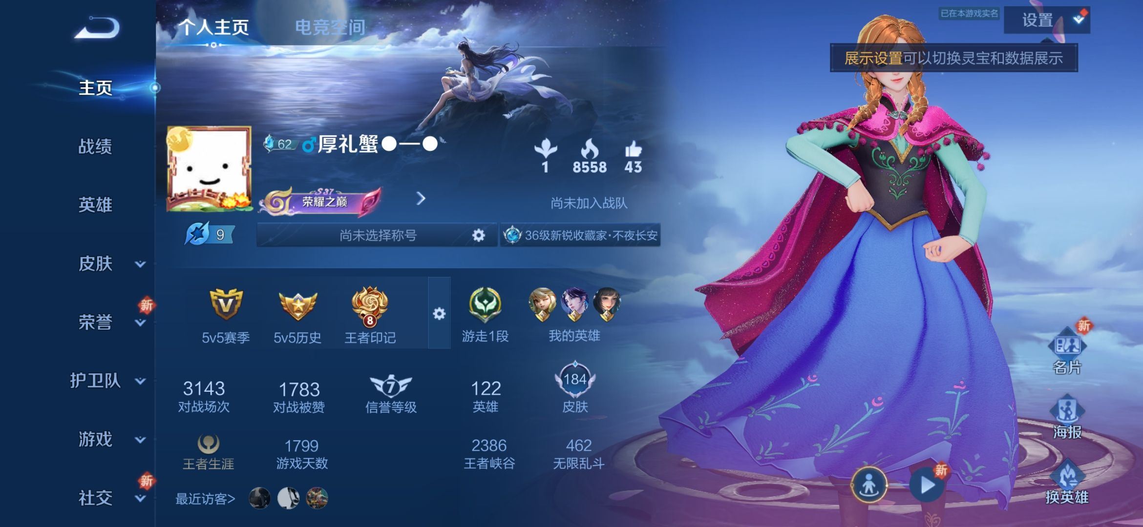 【账号佳】【王者荣耀】【编号:3341268】【可包人脸】wd2528-安卓手q337区-贵族7-122英雄-184皮肤-6传说-55史诗-62限定-82勇者-齐天大圣-山海苍雷引-诗剑行-淬星耀世-绛天战甲-一念神魔
