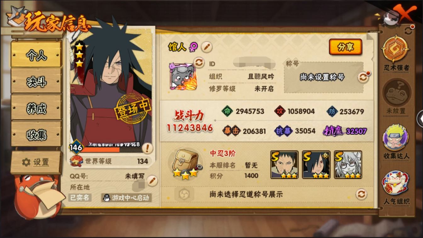 【账号佳】【火影忍者】【编号:182275】【可二次实名】002:11023ZY安卓QQ区V10【19S级忍者】【九喇嘛连结漩涡鸣人、永恒万花筒宇智波佐助、忍界大战春野樱、舞之豪杰自来也、大蛇丸、纲手、死门迈特凯、波风水门、猿飞日斩、秽土转生猿飞日斩、秽土转生千手柱间、木业创立宇智波斑、秽土转生.解宇智波斑、秽土转生宇智波鼬、忍界大战宇智波带土、四代目风影罗砂、忍界大战大野木、仙人模式药师兜、大筒木金式】【限时道具不保证剩余时间,段位仅限本赛季,喜欢速秒!!!手慢无!!!】
