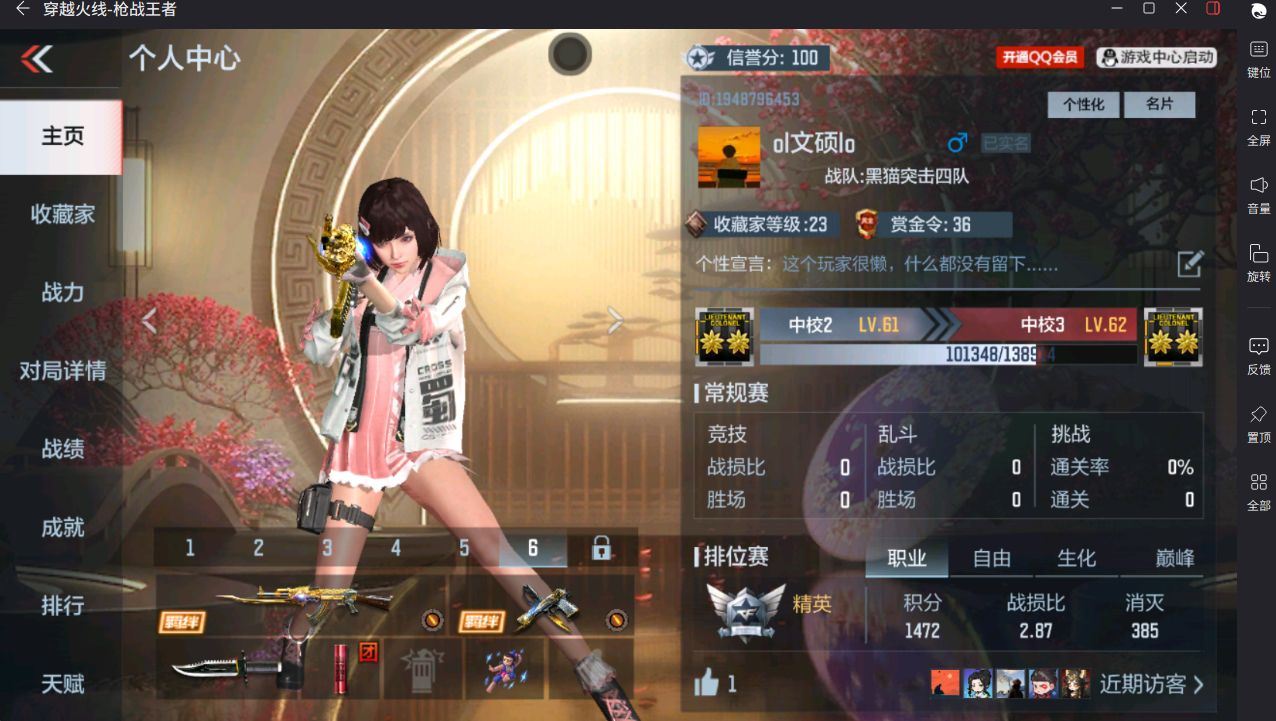 【账号佳】【枪战王者】【编号:460456】R47417 可二次安卓QQ【43v】【2王者】【王者之心+王者之魂】【AK无影+M4黑骑士+加特林堡垒+双持斯泰尔天使】【角色:关小雨】【皮肤:81式光明之神三足金乌】各种道具详情看截图、低价出售找回包 赔、截图展示段位不代 表实际段位,如赛季更新等不可抗拒因素发生变化、时限道具不保证所剩时间、标题未写送点劵默认不送【卖号买号首选亿梦】