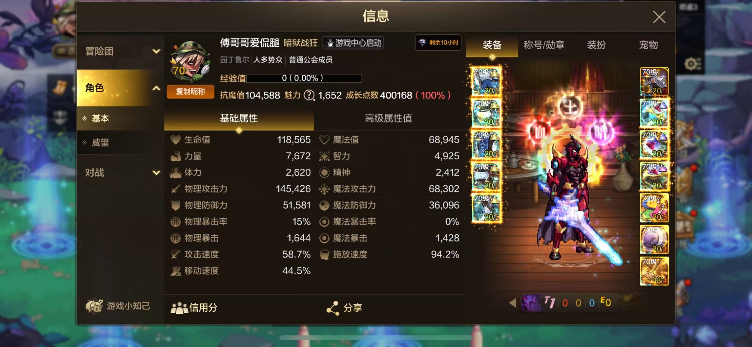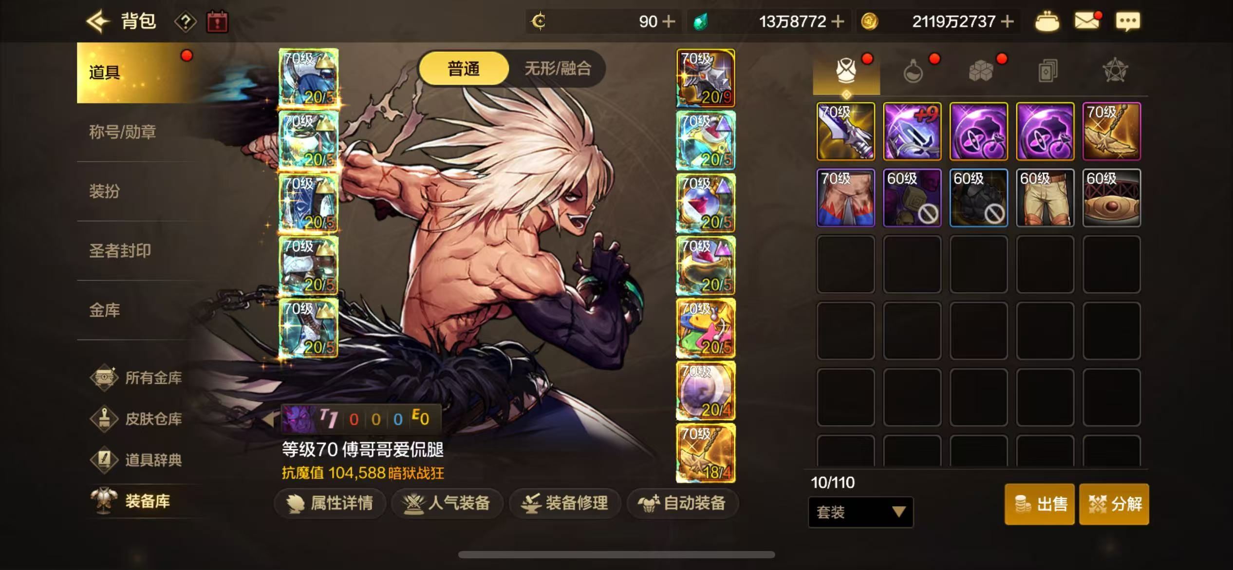 【账号佳】【DNF手游】【编号:5749】【手游Q区天帷巨兽-园丁鲁尔 全身20狂战 抗魔值104588】【天三修罗 抗魔值94264】【武神奶妈等 狂战仅一件18】