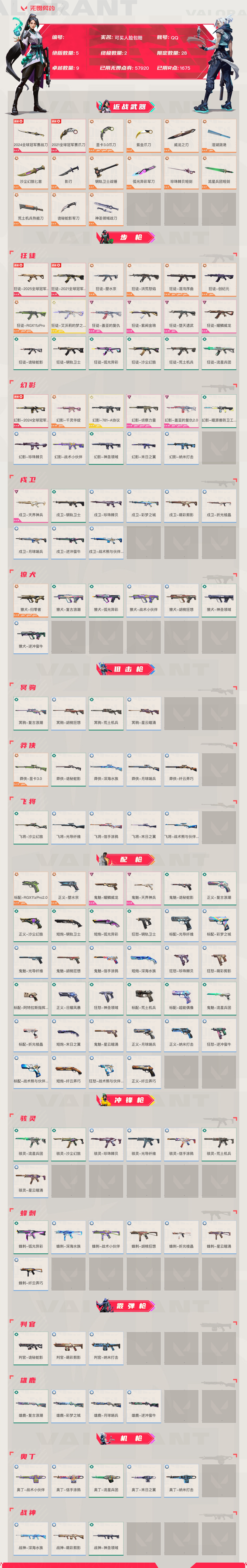 【账号佳】【无畏契约】【编号:39742】【6tnj3ahfe】lv281|铂金i, 刀皮数量15,呛皮数量122(绝版5限定28终极2卓越9);皮肤资产价值57920,已用r点1675;【刀皮】:近战武器-2024全球冠军赛战刀,近战武器-2021全球冠军赛爪刀,近战武器-显卡3.0爪刀,近战武器-紫金爪刀,近战武器-威龙之刃,近战武器-澄湖潋滟,近战武器-沙尘幻旅匕首,近战武器-影刃,近战武器-钢轨卫士战锤,近战武器-弧光异彩军刀,近战武器-珍珠棘贝短剑,近战武器-流星兵团短剑,近战武器-荒土机兵热能刀,近战武器-诡秘蛇影军刀,近战武器-神圣领域战刀; 【呛皮】:狂徒-2025全球冠军赛,狂徒-2021全球冠军赛,幻影-2024全球冠军赛,标配-rgx11zpro2.0,正义-塑水宗,狂徒-塑水宗,狂徒-洪荒怒焰,狂徒-混沌序曲,狂徒-创纪元,狂徒-rgx11zpro,幻影-千灵华绽,獠犬-归零者,莽侠-显卡3.0,狂徒-艾沃莉的梦之翼,幻影-781-a协议,鬼魅-耀鳞威龙,鬼魅-天界神兵,狂徒-盖亚的复仇,狂徒-紫阙金琅,狂徒-堕天遗武,狂徒-耀鳞威龙,幻影-侦察力量,幻影-盖亚的复仇2.0,戍卫-天界神兵,鬼魅-诡秘蛇影,正义-复古浪潮,正义-沙尘幻旅,短炮-钢轨卫士,短炮-弧光异彩,狂怒-钢轨卫士,骇灵-流星兵团,骇灵-沙尘幻旅,蜂刺-弧光异彩,判官-诡秘蛇影,雄鹿-复古浪潮,狂徒-诡秘蛇影,狂徒-钢轨卫士,狂徒-弧光异彩,狂徒-沙尘幻旅,幻影-噬源兽防卫工程,戍卫-钢轨卫士,獠犬-复古浪潮,獠犬-弧光异彩,冥驹-复古浪潮,飞将-沙尘幻旅,莽侠-诡秘蛇影,标配-光导纤维,标配-彩梦之城,鬼魅-光导纤维,鬼魅-胡桃狂想,鬼魅-信手涂鸦,短炮-深海水族,狂怒-珍珠棘贝,狂怒-萌彩剪影,骇灵-珍珠棘贝,骇灵-光导纤维,骇灵-信手涂鸦,蜂刺-深海水族,蜂刺-战术小伙伴,蜂刺-胡桃狂想,判官-萌彩剪影,雄鹿-彩梦之城,幻影-珍珠棘贝,幻影-战术小伙伴,戍卫-珍珠棘贝,戍卫-彩梦之城,戍卫-萌彩剪影,獠犬-战术小伙伴,獠犬-胡桃狂想,冥驹-胡桃狂想,飞将-光导纤维,飞将-信手涂鸦,莽侠-深海水族,奥丁-战术小伙伴,奥丁-信手涂鸦,战神-深海水族,战神-萌彩剪影,狂徒-荒土机兵,狂徒-流星兵团,幻影-神圣领域,獠犬-神圣领域,冥驹-荒土机兵,正义-日耀风暴,鬼魅-流星兵团,标配-阿特拉斯指挥部,标配-荒土机兵,标配-超能偶像,狂怒-神圣领域,骇灵-荒土机兵,奥丁-流星兵团,战神-神圣领域,幻影-末日之翼,幻影-纳米打击,戍卫-折光棱晶,戍卫-月球哨兵,戍卫-逆冲蛮牛,戍卫-战术熊与伙伴们,獠犬-逆冲蛮牛,冥驹-星云暗涌,莽侠-月球哨兵,莽侠-纤云弄巧,飞将-末日之翼,飞将-战术熊与伙伴们,正义-月球哨兵,正义-纳米打击,正义-纤云弄巧,鬼魅-星云暗涌,标配-折光棱晶,标配-战术熊与伙伴们,短炮-末日之翼,短炮-纤云弄巧,狂怒-逆冲蛮牛,狂怒-战术熊与伙伴们,骇灵-星云暗涌,蜂刺-折光棱晶,蜂刺-星云暗涌,蜂刺-纤云弄巧,判官-纳米打击,雄鹿-月球哨兵,雄鹿-逆冲蛮牛,奥丁-末日之翼,奥丁-纳米打击;【热门卡面】:势不可挡贤者卡面,势不可挡星礈卡面,分崩离析卡面,双城之战拥抱卡面,vctcn首冠卡面,情人节不死鸟卡面,2024全球冠军赛卡面,无畏契约吉祥物卡面,情人节猎枭卡面,虹吸式咖啡壶卡面,命运之手女皇卡面,万圣夜卡面,势不可挡盖可卡面,耀鳞威龙卡面,双城之战金克丝卡面,逆向独行卡面,清风徐来卡面,狼人猎手卡面,势不可挡ko卡面;【热门挂饰】:神中神挂饰,双城之战小蛋糕挂饰,2024全球冠军赛挂饰,糖葫芦挂饰,袖珍捷风挂饰,迷你机甲挂饰,云开见日挂饰,2021冠军巡回赛花火挂饰,传世莲华挂饰,耀鳞威龙挂饰,双城之战魄罗挂饰,鱼骨头挂饰,改变者全球冠军赛奖杯挂饰,针织蜜蜂挂饰,冬日絮语挂饰,高音谱号挂饰,幸运中国结挂饰,薰衣草之心挂饰,蓄势待滚挂饰;【热门喷漆】:纸箱小猫喷漆,真烦人喷漆,鼻尖上的蝴蝶喷漆,小丑猫喷漆,2024全球冠军赛喷漆,调大音量喷漆,捷风机器人喷漆,皮蛋萌舞喷漆,开心到爆炸喷漆,别挡我的路喷漆,情绪控制喷漆,双人比心喷漆,双击点赞喷漆,飓刃涂鸦喷漆,买装还是存钱喷漆,秘笈顺序喷漆,醒狮贺春喷漆,战术小伙伴喷漆,耀鳞威龙喷漆,幽影猫猫舞喷漆,这招不行了喷漆,红牌退场喷漆,口袋贤者喷漆,继续摇滚喷漆,撸到秃喷漆,看穿一切喷漆;详情看图【皮肤可能含有某些特权皮肤,具体以游戏内实际拥有为准】【qq】【可买人脸包赔】【官方截图】