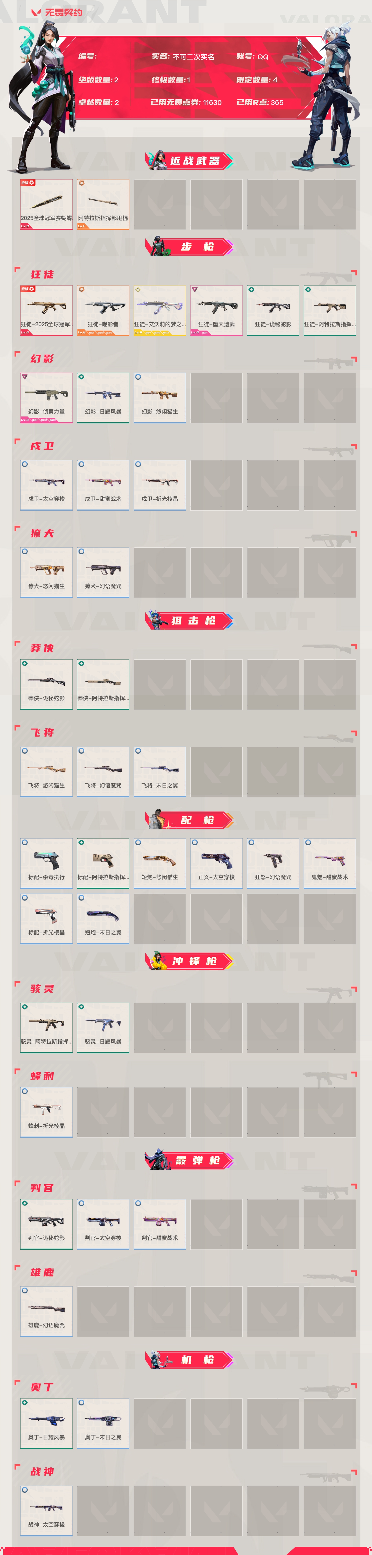 【账号佳】【无畏契约】【编号:39766】【6tnj3egdg】lv49|青铜iii, 刀皮数量2,呛皮数量37(绝版2限定4终极1卓越2);皮肤资产价值11630,已用r点365;【刀皮】:近战武器-2025全球冠军赛蝴蝶刀,近战武器-阿特拉斯指挥部甩棍; 【呛皮】:狂徒-2025全球冠军赛,狂徒-噬影者,狂徒-艾沃莉的梦之翼,狂徒-堕天遗武,幻影-侦察力量,判官-诡秘蛇影,狂徒-诡秘蛇影,莽侠-诡秘蛇影,标配-杀毒执行,狂徒-阿特拉斯指挥部,幻影-日耀风暴,莽侠-阿特拉斯指挥部,标配-阿特拉斯指挥部,骇灵-阿特拉斯指挥部,骇灵-日耀风暴,奥丁-日耀风暴,幻影-悠闲猫生,戍卫-太空穿梭,戍卫-甜蜜战术,戍卫-折光棱晶,獠犬-悠闲猫生,獠犬-幻语魔咒,飞将-悠闲猫生,飞将-幻语魔咒,飞将-末日之翼,正义-太空穿梭,鬼魅-甜蜜战术,标配-折光棱晶,短炮-悠闲猫生,短炮-末日之翼,狂怒-幻语魔咒,蜂刺-折光棱晶,判官-太空穿梭,判官-甜蜜战术,雄鹿-幻语魔咒,奥丁-末日之翼,战神-太空穿梭;【热门卡面】:双城之战金克丝卡面;【热门挂饰】:双城之战魄罗挂饰,神中神挂饰;【热门喷漆】:买装还是存钱喷漆;详情看图【皮肤可能含有某些特权皮肤,具体以游戏内实际拥有为准】【qq】【不可二次实名】【官方截图】
