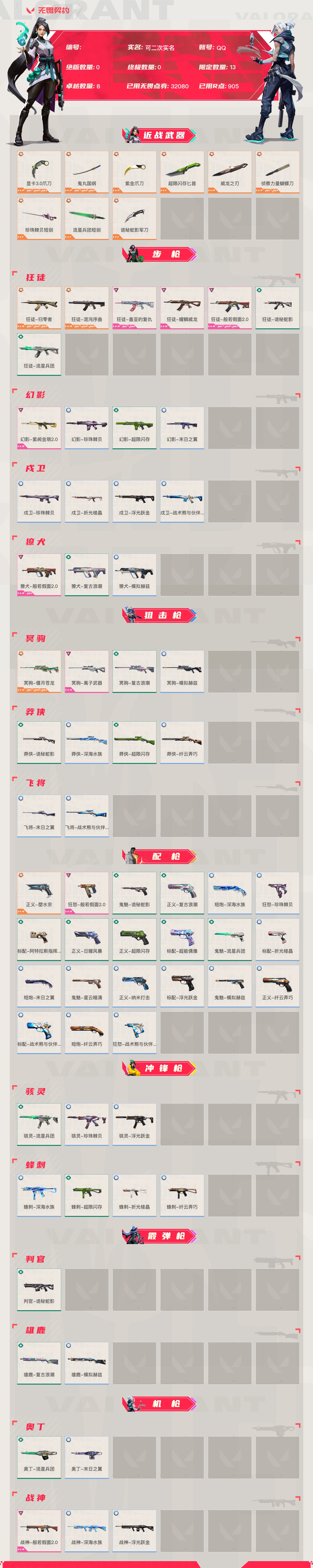 【账号佳】【无畏契约】【编号:39768】【6tnj3g12f】lv248|白银ii, 刀皮数量9,呛皮数量64(绝版0限定13终极0卓越8);皮肤资产价值32080,已用r点905;【刀皮】:近战武器-显卡3.0爪刀,近战武器-鬼丸国纲,近战武器-紫金爪刀,近战武器-超限闪存匕首,近战武器-威龙之刃,近战武器-侦察力量蝴蝶刀,近战武器-珍珠棘贝短剑,近战武器-流星兵团短剑,近战武器-诡秘蛇影军刀; 【呛皮】:正义-塑水宗,狂徒-归零者,狂徒-混沌序曲,冥驹-偃月苍龙,狂怒-般若假面2.0,狂徒-盖亚的复仇,狂徒-耀鳞威龙,狂徒-般若假面2.0,幻影-紫阙金琅2.0,獠犬-般若假面2.0,冥驹-离子武器,战神-般若假面2.0,鬼魅-诡秘蛇影,正义-复古浪潮,骇灵-流星兵团,判官-诡秘蛇影,雄鹿-复古浪潮,狂徒-诡秘蛇影,獠犬-复古浪潮,冥驹-复古浪潮,莽侠-诡秘蛇影,短炮-深海水族,狂怒-珍珠棘贝,骇灵-珍珠棘贝,蜂刺-深海水族,幻影-珍珠棘贝,戍卫-珍珠棘贝,莽侠-深海水族,战神-深海水族,狂徒-流星兵团,幻影-超限闪存,莽侠-超限闪存,正义-日耀风暴,正义-超限闪存,鬼魅-流星兵团,标配-阿特拉斯指挥部,标配-超能偶像,蜂刺-超限闪存,奥丁-流星兵团,幻影-末日之翼,戍卫-折光棱晶,戍卫-浮光跃金,戍卫-战术熊与伙伴们,獠犬-模拟赫兹,冥驹-模拟赫兹,莽侠-纤云弄巧,飞将-末日之翼,飞将-战术熊与伙伴们,正义-纳米打击,正义-纤云弄巧,鬼魅-星云暗涌,鬼魅-模拟赫兹,标配-折光棱晶,标配-浮光跃金,标配-战术熊与伙伴们,短炮-末日之翼,短炮-纤云弄巧,狂怒-战术熊与伙伴们,骇灵-浮光跃金,蜂刺-折光棱晶,蜂刺-纤云弄巧,雄鹿-模拟赫兹,奥丁-末日之翼,战神-浮光跃金;【热门卡面】:情人节猎枭卡面,势不可挡捷风卡面,双城之战金克丝卡面,双城之战拥抱卡面,无畏契约吉祥物卡面,贤者之泪卡面,势不可挡幽影卡面,虹吸式咖啡壶卡面;【热门挂饰】:薰衣草之心挂饰,神中神挂饰,双城之战小蛋糕挂饰,终章ko小金人挂饰,糖葫芦挂饰,迷你机甲挂饰,云开见日挂饰,传世莲华挂饰;【热门喷漆】:笑哭了喷漆,纸箱小猫喷漆,飓刃涂鸦喷漆,打得不错喷漆,皮蛋呼呼喷漆,小丑猫喷漆,复活我捷风喷漆,开心到爆炸喷漆,皮蛋萌舞喷漆,别挡我的路喷漆,买装还是存钱喷漆,情绪控制喷漆,双人比心喷漆,双击点赞喷漆;详情看图【皮肤可能含有某些特权皮肤,具体以游戏内实际拥有为准】【qq】【可二次实名】【官方截图】