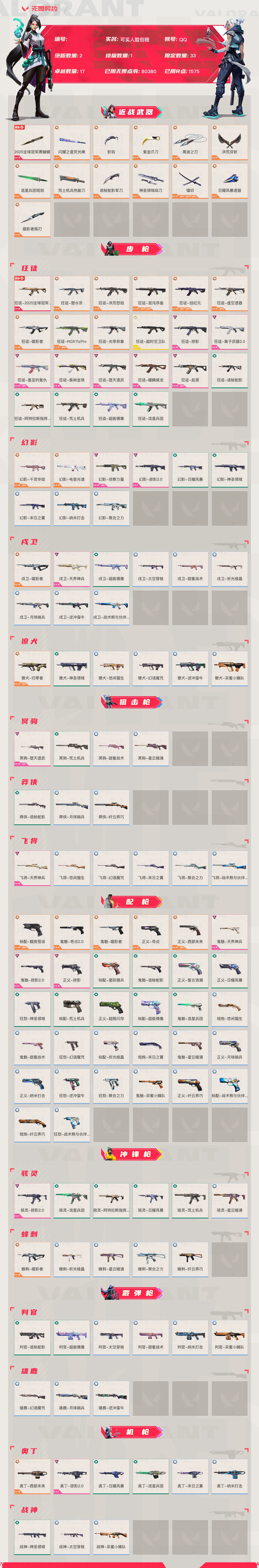 【账号佳】【无畏契约】【编号:39844】【64374gbgf】lv212|未定级, 刀皮数量13,呛皮数量120(绝版2限定33终极1卓越17);皮肤资产价值80380,已用r点1575;【刀皮】:近战武器-2025全球冠军赛蝴蝶刀,近战武器-闪耀之星荧光棒,近战武器-影钩,近战武器-紫金爪刀,近战武器-黑波之刃,近战武器-洪荒双斩,近战武器-流星兵团短剑,近战武器-荒土机兵热能刀,近战武器-诡秘蛇影军刀,近战武器-神圣领域战刀,近战武器-镭切,近战武器-日耀风暴遗器,近战武器-噬影者簇刃; 【呛皮】:狂徒-2025全球冠军赛,标配-黯夜怪谈,鬼魅-奇点2.0,鬼魅-噬影者,正义-奇点,正义-西部未来,蜂刺-噬影者,狂徒-塑水宗,狂徒-洪荒怒焰,狂徒-混沌序曲,狂徒-创纪元,狂徒-虚空遗器,狂徒-噬影者,狂徒-rgx11zpro,狂徒-光荣异象,幻影-千灵华绽,幻影-电音光谱,戍卫-噬影者,獠犬-归零者,奥丁-西部未来,狂徒-超时空卫队,鬼魅-天界神兵,鬼魅-掠影2.0,正义-掠影,骇灵-掠影2.0,狂徒-掠影,狂徒-离子武器2.0,狂徒-盖亚的复仇,狂徒-紫阙金琅,狂徒-堕天遗武,狂徒-耀鳞威龙,狂徒-起源,幻影-侦察力量,幻影-掠影2.0,戍卫-天界神兵,冥驹-堕天遗武,飞将-天界神兵,奥丁-掠影2.0,标配-星际猎兵,鬼魅-诡秘蛇影,正义-复古浪潮,骇灵-流星兵团,判官-诡秘蛇影,狂徒-诡秘蛇影,莽侠-诡秘蛇影,狂徒-阿特拉斯指挥部,狂徒-荒土机兵,狂徒-超能偶像,狂徒-流星兵团,幻影-日耀风暴,幻影-神圣领域,戍卫-超能偶像,獠犬-神圣领域,冥驹-荒土机兵,正义-日耀风暴,正义-超限闪存,鬼魅-流星兵团,标配-荒土机兵,标配-超能偶像,狂怒-神圣领域,骇灵-阿特拉斯指挥部,骇灵-日耀风暴,骇灵-荒土机兵,判官-超能偶像,奥丁-日耀风暴,奥丁-流星兵团,战神-神圣领域,幻影-末日之翼,幻影-纳米打击,幻影-聚合之力,戍卫-太空穿梭,戍卫-甜蜜战术,戍卫-折光棱晶,戍卫-月球哨兵,戍卫-逆冲蛮牛,戍卫-战术熊与伙伴们,獠犬-悠闲猫生,獠犬-幻语魔咒,獠犬-逆冲蛮牛,獠犬-采蜜小蜂队,冥驹-甜蜜战术,冥驹-星云暗涌,莽侠-月球哨兵,莽侠-纤云弄巧,飞将-悠闲猫生,飞将-幻语魔咒,飞将-末日之翼,飞将-聚合之力,飞将-战术熊与伙伴们,正义-月球哨兵,正义-纳米打击,正义-纤云弄巧,鬼魅-甜蜜战术,鬼魅-星云暗涌,鬼魅-采蜜小蜂队,标配-折光棱晶,标配-战术熊与伙伴们,短炮-悠闲猫生,短炮-末日之翼,短炮-纤云弄巧,狂怒-幻语魔咒,狂怒-逆冲蛮牛,狂怒-聚合之力,狂怒-战术熊与伙伴们,骇灵-星云暗涌,蜂刺-折光棱晶,蜂刺-星云暗涌,蜂刺-聚合之力,蜂刺-纤云弄巧,判官-太空穿梭,判官-甜蜜战术,判官-纳米打击,判官-采蜜小蜂队,雄鹿-幻语魔咒,雄鹿-月球哨兵,雄鹿-逆冲蛮牛,奥丁-末日之翼,奥丁-纳米打击,战神-太空穿梭,战神-采蜜小蜂队;【热门卡面】:贤者之泪卡面,双城之战金克丝卡面,情人节捷风卡面,噬影者卡面,势不可挡星礈卡面,分崩离析卡面,双城之战拥抱卡面,狼人猎手卡面,星宿灿烂猎枭卡面,超能偶像卡面;【热门挂饰】:薰衣草之心挂饰,神中神挂饰,双城之战小蛋糕挂饰,终章ko小金人挂饰,超能偶像挂饰,袖珍捷风挂饰,糖葫芦挂饰,迷你机甲挂饰,云开见日挂饰,传世莲华挂饰,幸运中国结挂饰;【热门喷漆】:捷风机器人喷漆,点赞喷漆,捷风跳peek喷漆,撸到秃喷漆,真烦人喷漆,鼻尖上的蝴蝶喷漆,调大音量喷漆,西奥大逃亡喷漆,小丑猫喷漆,超能偶像喷漆,开心到爆炸喷漆,皮蛋萌舞喷漆,别挡我的路喷漆,买装还是存钱喷漆,双击点赞喷漆,口袋贤者喷漆;详情看图【皮肤可能含有某些特权皮肤,具体以游戏内实际拥有为准】【qq】【可买人脸包赔】【官方截图】