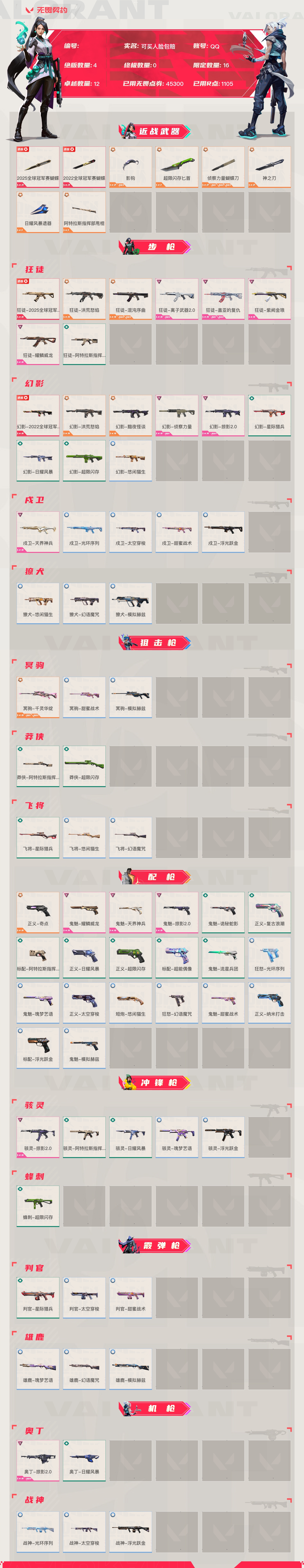 【账号佳】【无畏契约】【编号:39847】【6nll5cbcd】lv175|未定级, 刀皮数量8,呛皮数量70(绝版4限定16终极0卓越12);皮肤资产价值45300,已用r点1105;【刀皮】:近战武器-2025全球冠军赛蝴蝶刀,近战武器-2022全球冠军赛蝴蝶刀,近战武器-影钩,近战武器-超限闪存匕首,近战武器-侦察力量蝴蝶刀,近战武器-神之刃,近战武器-日耀风暴遗器,近战武器-阿特拉斯指挥部甩棍; 【呛皮】:狂徒-2025全球冠军赛,幻影-2022全球冠军赛,正义-奇点,狂徒-洪荒怒焰,狂徒-混沌序曲,幻影-洪荒怒焰,幻影-黯夜怪谈,冥驹-千灵华绽,鬼魅-耀鳞威龙,鬼魅-天界神兵,鬼魅-掠影2.0,骇灵-掠影2.0,狂徒-离子武器2.0,狂徒-盖亚的复仇,狂徒-紫阙金琅,狂徒-耀鳞威龙,幻影-侦察力量,幻影-掠影2.0,戍卫-天界神兵,奥丁-掠影2.0,鬼魅-诡秘蛇影,正义-复古浪潮,判官-星际猎兵,幻影-星际猎兵,飞将-星际猎兵,狂徒-阿特拉斯指挥部,幻影-日耀风暴,幻影-超限闪存,莽侠-阿特拉斯指挥部,莽侠-超限闪存,正义-日耀风暴,正义-超限闪存,鬼魅-流星兵团,标配-阿特拉斯指挥部,标配-超能偶像,骇灵-阿特拉斯指挥部,骇灵-日耀风暴,蜂刺-超限闪存,奥丁-日耀风暴,幻影-悠闲猫生,戍卫-光环序列,戍卫-太空穿梭,戍卫-甜蜜战术,戍卫-浮光跃金,獠犬-悠闲猫生,獠犬-幻语魔咒,獠犬-模拟赫兹,冥驹-甜蜜战术,冥驹-模拟赫兹,飞将-悠闲猫生,飞将-幻语魔咒,正义-太空穿梭,正义-纳米打击,鬼魅-瑰梦艺语,鬼魅-甜蜜战术,鬼魅-模拟赫兹,标配-浮光跃金,短炮-悠闲猫生,狂怒-光环序列,狂怒-幻语魔咒,骇灵-瑰梦艺语,骇灵-浮光跃金,判官-太空穿梭,判官-甜蜜战术,雄鹿-瑰梦艺语,雄鹿-幻语魔咒,雄鹿-模拟赫兹,战神-光环序列,战神-太空穿梭,战神-浮光跃金;【热门卡面】:势不可挡贤者卡面,势不可挡幽影卡面,超兽队海员丹卡面,超兽队大黄鸭卡面,超兽队黑曜熊卡面,超兽队烈火兔卡面,超兽队穿林闪卡面,双城之战拥抱卡面,vctcn首冠卡面,双城之战金克丝卡面;【热门挂饰】:蓄势待滚挂饰,飞刀挂饰,神中神挂饰,超兽队大黄鸭挂饰,超兽队穿林闪挂饰,超兽队海员丹挂饰,超兽队黑曜熊挂饰,超兽队烈火兔挂饰,双城之战小蛋糕挂饰,终章ko小金人挂饰,鱼骨头挂饰,薰衣草之心挂饰,糖葫芦挂饰,袖珍捷风挂饰,传世莲华挂饰,双城之战魄罗挂饰;【热门喷漆】:调大音量喷漆,捷风喷漆,鸭子步喷漆,幽影猫猫舞喷漆,2022全球冠军赛喷漆,捷风跳peek喷漆,超兽队喷漆,皮蛋呼呼喷漆,小丑猫喷漆,双击点赞喷漆,买装还是存钱喷漆,醒狮贺春喷漆;详情看图【皮肤可能含有某些特权皮肤,具体以游戏内实际拥有为准】【qq】【可买人脸包赔】【官方截图】