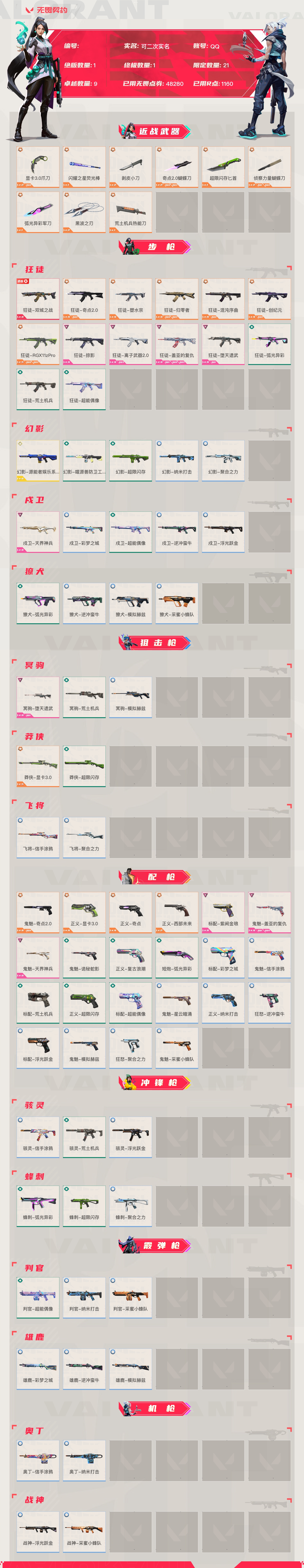 【账号佳】【无畏契约】【编号:39855】【6nll5f21b】lv167|未定级, 刀皮数量9,呛皮数量73(绝版1限定21终极1卓越9);皮肤资产价值48280,已用r点1160;【刀皮】:近战武器-显卡3.0爪刀,近战武器-闪耀之星荧光棒,近战武器-剥皮小刀,近战武器-奇点2.0蝴蝶刀,近战武器-超限闪存匕首,近战武器-侦察力量蝴蝶刀,近战武器-弧光异彩军刀,近战武器-黑波之刃,近战武器-荒土机兵热能刀; 【呛皮】:狂徒-双城之战,鬼魅-奇点2.0,正义-显卡3.0,正义-奇点,正义-西部未来,狂徒-奇点2.0,狂徒-塑水宗,狂徒-归零者,狂徒-混沌序曲,狂徒-创纪元,狂徒-rgx11zpro,莽侠-显卡3.0,幻影-源能者娱乐系统,标配-紫阙金琅,鬼魅-盖亚的复仇,鬼魅-天界神兵,狂徒-掠影,狂徒-离子武器2.0,狂徒-盖亚的复仇,狂徒-堕天遗武,戍卫-天界神兵,冥驹-堕天遗武,鬼魅-诡秘蛇影,正义-复古浪潮,短炮-弧光异彩,蜂刺-弧光异彩,狂徒-弧光异彩,幻影-噬源兽防卫工程,獠犬-弧光异彩,标配-彩梦之城,鬼魅-信手涂鸦,骇灵-信手涂鸦,雄鹿-彩梦之城,戍卫-彩梦之城,飞将-信手涂鸦,奥丁-信手涂鸦,狂徒-荒土机兵,狂徒-超能偶像,幻影-超限闪存,戍卫-超能偶像,冥驹-荒土机兵,莽侠-超限闪存,正义-超限闪存,标配-荒土机兵,标配-超能偶像,骇灵-荒土机兵,蜂刺-超限闪存,判官-超能偶像,幻影-纳米打击,幻影-聚合之力,戍卫-逆冲蛮牛,戍卫-浮光跃金,獠犬-逆冲蛮牛,獠犬-模拟赫兹,獠犬-采蜜小蜂队,冥驹-模拟赫兹,飞将-聚合之力,正义-纳米打击,鬼魅-星云暗涌,鬼魅-模拟赫兹,鬼魅-采蜜小蜂队,标配-浮光跃金,狂怒-逆冲蛮牛,狂怒-聚合之力,骇灵-浮光跃金,蜂刺-聚合之力,判官-纳米打击,判官-采蜜小蜂队,雄鹿-逆冲蛮牛,雄鹿-模拟赫兹,奥丁-纳米打击,战神-浮光跃金,战神-采蜜小蜂队;【热门卡面】:噬影者卡面,分崩离析卡面,双城之战拥抱卡面,双城之战姐妹卡面,vctcn首冠卡面,超能偶像卡面,rgx11zpro3.0卡面,双城之战金克丝卡面,分神的决斗者卡面;【热门挂饰】:v25第三幕神话挂饰,神中神挂饰,第九季超凡挂饰,双城之战小蛋糕挂饰,终章ko小金人挂饰,奇点2.0挂饰,超能偶像挂饰,糖葫芦挂饰,袖珍捷风挂饰,rgx11zpro3.0挂饰,传世莲华挂饰,双城之战魄罗挂饰,鱼骨头挂饰,冬日絮语挂饰;【热门喷漆】:鼻尖上的蝴蝶喷漆,买装还是存钱喷漆,战术小伙伴喷漆,皮蛋呼呼喷漆,奇点2.0喷漆,小丑猫喷漆,超能偶像喷漆,是猎枭不是夜宵喷漆,rgx11zpro3.0喷漆,双击点赞喷漆,醒狮贺春喷漆,蹦蹦小兔喷漆,继续摇滚喷漆,撸到秃喷漆,看穿一切喷漆,纸箱小猫喷漆,没有资金喷漆;详情看图【皮肤可能含有某些特权皮肤,具体以游戏内实际拥有为准】【qq】【可二次实名】【官方截图】