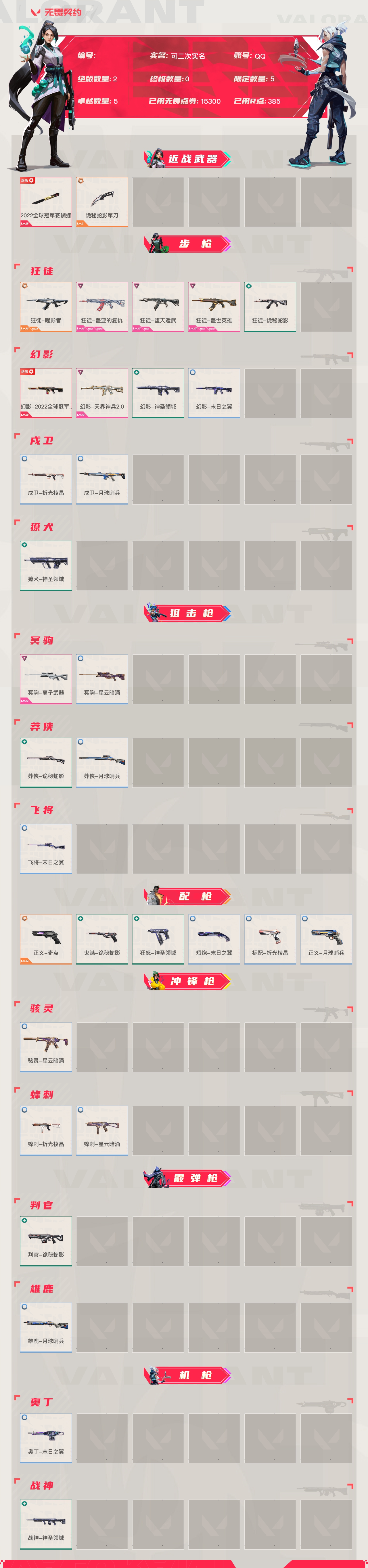 【账号佳】【无畏契约】【编号:39881】【69sjvc1ed】lv46|未定级, 刀皮数量2,呛皮数量30(绝版2限定5终极0卓越5);皮肤资产价值15300,已用r点385;【刀皮】:近战武器-2022全球冠军赛蝴蝶刀,近战武器-诡秘蛇影军刀; 【呛皮】:幻影-2022全球冠军赛,正义-奇点,狂徒-噬影者,狂徒-盖亚的复仇,狂徒-堕天遗武,狂徒-盖世英雄,幻影-天界神兵2.0,冥驹-离子武器,鬼魅-诡秘蛇影,判官-诡秘蛇影,狂徒-诡秘蛇影,莽侠-诡秘蛇影,幻影-神圣领域,獠犬-神圣领域,狂怒-神圣领域,战神-神圣领域,幻影-末日之翼,戍卫-折光棱晶,戍卫-月球哨兵,冥驹-星云暗涌,莽侠-月球哨兵,飞将-末日之翼,正义-月球哨兵,标配-折光棱晶,短炮-末日之翼,骇灵-星云暗涌,蜂刺-折光棱晶,蜂刺-星云暗涌,雄鹿-月球哨兵,奥丁-末日之翼;【热门卡面】:势不可挡星礈卡面,双城之战金克丝卡面;【热门挂饰】:双城之战魄罗挂饰,神中神挂饰,深度分割挂饰;【热门喷漆】:2022全球冠军赛喷漆,幽影猫猫舞喷漆,真烦人喷漆,放下武器喷漆;详情看图【皮肤可能含有某些特权皮肤,具体以游戏内实际拥有为准】【qq】【可二次实名】【官方截图】