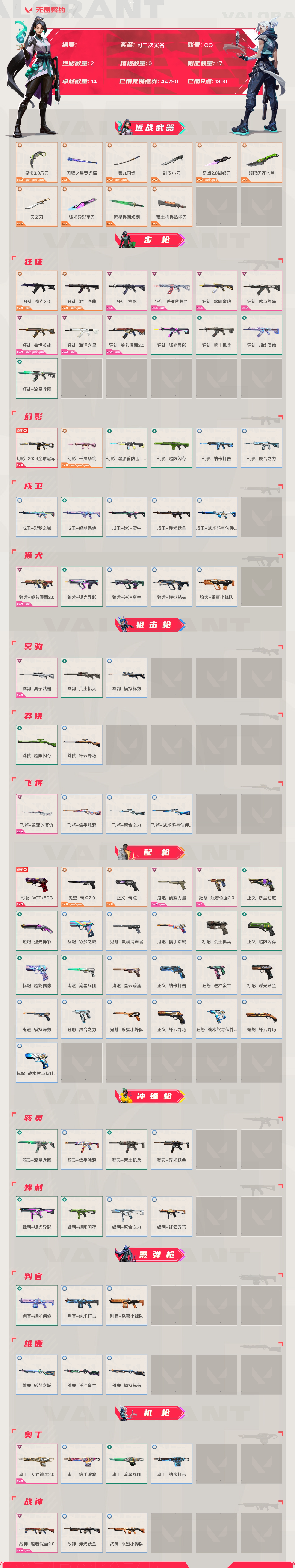【账号佳】【无畏契约】【编号:39882】【69sjv1aeb】lv272|未定级, 刀皮数量10,呛皮数量84(绝版2限定17终极0卓越14);皮肤资产价值44790,已用r点1300;【刀皮】:近战武器-显卡3.0爪刀,近战武器-闪耀之星荧光棒,近战武器-鬼丸国纲,近战武器-剥皮小刀,近战武器-奇点2.0蝴蝶刀,近战武器-超限闪存匕首,近战武器-天玄刀,近战武器-弧光异彩军刀,近战武器-流星兵团短剑,近战武器-荒土机兵热能刀; 【呛皮】:标配-vctxedg,幻影-2024全球冠军赛,鬼魅-奇点2.0,正义-奇点,狂徒-奇点2.0,狂徒-混沌序曲,幻影-千灵华绽,鬼魅-侦察力量,狂怒-般若假面2.0,狂徒-掠影,狂徒-盖亚的复仇,狂徒-紫阙金琅,狂徒-冰点凝冻,狂徒-盖世英雄,狂徒-海洋之星,狂徒-般若假面2.0,獠犬-般若假面2.0,冥驹-离子武器,飞将-盖亚的复仇,奥丁-天界神兵2.0,战神-般若假面2.0,正义-沙尘幻旅,短炮-弧光异彩,骇灵-流星兵团,蜂刺-弧光异彩,狂徒-弧光异彩,幻影-噬源兽防卫工程,獠犬-弧光异彩,标配-彩梦之城,鬼魅-灵魂消声者,鬼魅-信手涂鸦,骇灵-信手涂鸦,雄鹿-彩梦之城,戍卫-彩梦之城,飞将-信手涂鸦,奥丁-信手涂鸦,狂徒-荒土机兵,狂徒-超能偶像,狂徒-流星兵团,幻影-超限闪存,戍卫-超能偶像,冥驹-荒土机兵,莽侠-超限闪存,正义-超限闪存,鬼魅-流星兵团,标配-荒土机兵,标配-超能偶像,骇灵-荒土机兵,蜂刺-超限闪存,判官-超能偶像,奥丁-流星兵团,幻影-纳米打击,幻影-聚合之力,戍卫-逆冲蛮牛,戍卫-浮光跃金,戍卫-战术熊与伙伴们,獠犬-逆冲蛮牛,獠犬-模拟赫兹,獠犬-采蜜小蜂队,冥驹-模拟赫兹,莽侠-纤云弄巧,飞将-聚合之力,飞将-战术熊与伙伴们,正义-纳米打击,正义-纤云弄巧,鬼魅-星云暗涌,鬼魅-模拟赫兹,鬼魅-采蜜小蜂队,标配-浮光跃金,标配-战术熊与伙伴们,短炮-纤云弄巧,狂怒-逆冲蛮牛,狂怒-聚合之力,狂怒-战术熊与伙伴们,骇灵-浮光跃金,蜂刺-聚合之力,蜂刺-纤云弄巧,判官-纳米打击,判官-采蜜小蜂队,雄鹿-逆冲蛮牛,雄鹿-模拟赫兹,奥丁-纳米打击,战神-浮光跃金,战神-采蜜小蜂队;【热门卡面】:势不可挡芮娜卡面,势不可挡幽影卡面,情人节捷风卡面,势不可挡蝰蛇卡面,分崩离析卡面,万圣夜卡面,双城之战拥抱卡面,vctcn首冠卡面,情人节不死鸟卡面,无畏契约吉祥物卡面,势不可挡贤者卡面,神射企鹅卡面,超能偶像卡面,双城之战金克丝卡面,贤者之泪卡面;【热门挂饰】:神中神挂饰,双城之战小蛋糕挂饰,奇点2.0挂饰,终章ko小金人挂饰,鱼骨头挂饰,vctxedg挂饰,针织蜜蜂挂饰,袖珍捷风挂饰,糖葫芦挂饰,超能偶像挂饰,逮个正着挂饰,迷你机甲挂饰,云开见日挂饰,传世莲华挂饰,金角生辉挂饰,改变者全球冠军赛奖杯挂饰,809特遣队挂饰,冬日絮语挂饰,科尔宾之光挂饰,薰衣草之心挂饰,幸运中国结挂饰;【热门喷漆】:瞄这里喷漆,鼻尖上的蝴蝶喷漆,双人比心喷漆,鞠躬喷漆,奇点2.0喷漆,皮蛋呼呼喷漆,小丑猫喷漆,调大音量喷漆,超能偶像喷漆,随机武器喷漆,开心到爆炸喷漆,皮蛋萌舞喷漆,别挡我的路喷漆,买装还是存钱喷漆,双击点赞喷漆,醒狮贺春喷漆,放下武器喷漆,九命灵猫喷漆,口袋贤者喷漆,继续摇滚喷漆,撸到秃喷漆,看穿一切喷漆;详情看图【皮肤可能含有某些特权皮肤,具体以游戏内实际拥有为准】【qq】【可二次实名】【官方截图】