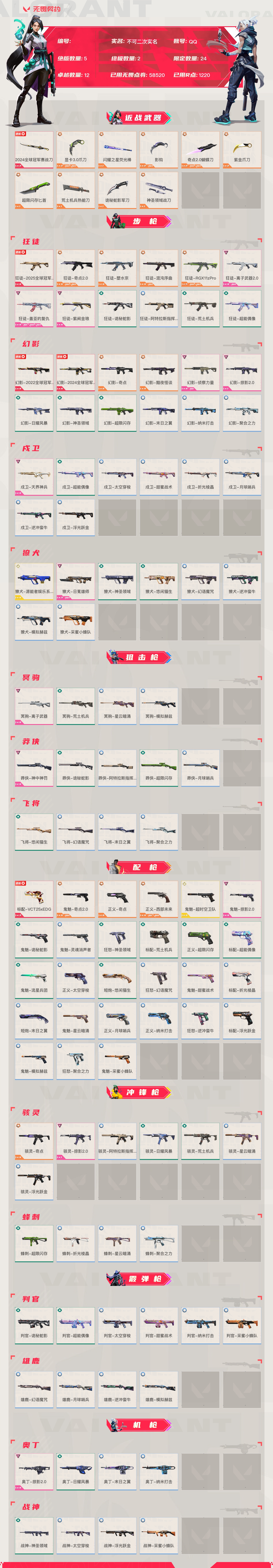 【账号佳】【无畏契约】【编号:41040】【69x8jfahc】lv165|未定级, 刀皮数量10,呛皮数量109(绝版5限定24终极2卓越12);皮肤资产价值58520,已用r点1220;【刀皮】:近战武器-2024全球冠军赛战刀,近战武器-显卡3.0爪刀,近战武器-闪耀之星荧光棒,近战武器-影钩,近战武器-奇点2.0蝴蝶刀,近战武器-紫金爪刀,近战武器-超限闪存匕首,近战武器-荒土机兵热能刀,近战武器-诡秘蛇影军刀,近战武器-神圣领域战刀; 【呛皮】:标配-vct25xedg,狂徒-2025全球冠军赛,幻影-2022全球冠军赛,幻影-2024全球冠军赛,鬼魅-奇点2.0,正义-奇点,正义-西部未来,骇灵-奇点,狂徒-奇点2.0,狂徒-塑水宗,狂徒-混沌序曲,狂徒-rgx11zpro,幻影-奇点,幻影-黯夜怪谈,鬼魅-超时空卫队,獠犬-源能者娱乐系统,鬼魅-掠影2.0,骇灵-掠影2.0,狂徒-离子武器2.0,狂徒-盖亚的复仇,狂徒-紫阙金琅,幻影-侦察力量,幻影-掠影2.0,戍卫-天界神兵,獠犬-日冕雄师,冥驹-离子武器,莽侠-神中神罚,奥丁-掠影2.0,鬼魅-诡秘蛇影,判官-诡秘蛇影,狂徒-诡秘蛇影,莽侠-诡秘蛇影,鬼魅-灵魂消声者,狂徒-阿特拉斯指挥部,狂徒-荒土机兵,狂徒-超能偶像,幻影-日耀风暴,幻影-神圣领域,幻影-超限闪存,戍卫-超能偶像,獠犬-神圣领域,冥驹-荒土机兵,莽侠-阿特拉斯指挥部,莽侠-超限闪存,正义-超限闪存,鬼魅-流星兵团,标配-荒土机兵,标配-超能偶像,狂怒-神圣领域,骇灵-阿特拉斯指挥部,骇灵-日耀风暴,骇灵-荒土机兵,蜂刺-超限闪存,判官-超能偶像,奥丁-日耀风暴,战神-神圣领域,幻影-末日之翼,幻影-纳米打击,幻影-聚合之力,戍卫-太空穿梭,戍卫-甜蜜战术,戍卫-折光棱晶,戍卫-月球哨兵,戍卫-逆冲蛮牛,戍卫-浮光跃金,獠犬-悠闲猫生,獠犬-幻语魔咒,獠犬-逆冲蛮牛,獠犬-模拟赫兹,獠犬-采蜜小蜂队,冥驹-星云暗涌,冥驹-模拟赫兹,莽侠-月球哨兵,飞将-悠闲猫生,飞将-幻语魔咒,飞将-末日之翼,飞将-聚合之力,正义-太空穿梭,正义-月球哨兵,正义-纳米打击,鬼魅-甜蜜战术,鬼魅-星云暗涌,鬼魅-模拟赫兹,鬼魅-采蜜小蜂队,标配-折光棱晶,标配-浮光跃金,短炮-悠闲猫生,短炮-末日之翼,狂怒-幻语魔咒,狂怒-逆冲蛮牛,狂怒-聚合之力,骇灵-星云暗涌,骇灵-浮光跃金,蜂刺-折光棱晶,蜂刺-星云暗涌,蜂刺-聚合之力,判官-太空穿梭,判官-甜蜜战术,判官-纳米打击,判官-采蜜小蜂队,雄鹿-幻语魔咒,雄鹿-月球哨兵,雄鹿-逆冲蛮牛,雄鹿-模拟赫兹,奥丁-末日之翼,奥丁-纳米打击,战神-太空穿梭,战神-浮光跃金,战神-采蜜小蜂队;【热门卡面】:清风徐来卡面,噬影者卡面,势不可挡星礈卡面,vct25xedg卡面,分崩离析卡面,超能偶像卡面,2024全球冠军赛卡面,势不可挡不死鸟卡面;【热门挂饰】:v25第三幕神话挂饰,双城之战魄罗挂饰,神中神挂饰,vctxedg挂饰,终章ko小金人挂饰,奇点2.0挂饰,超能偶像挂饰,2024全球冠军赛挂饰,袖珍捷风挂饰,糖葫芦挂饰,传世莲华挂饰;【热门喷漆】:飞吧不死鸟喷漆,真烦人喷漆,vctxedg喷漆,鼻尖上的蝴蝶喷漆,皮蛋呼呼喷漆,奇点2.0喷漆,小丑猫喷漆,撸到秃喷漆,超能偶像喷漆,2024全球冠军赛喷漆,复活我捷风喷漆,买装还是存钱喷漆,双击点赞喷漆,醒狮贺春喷漆;详情看图【皮肤可能含有某些特权皮肤,具体以游戏内实际拥有为准】【qq】【不可二次实名】【官方截图】