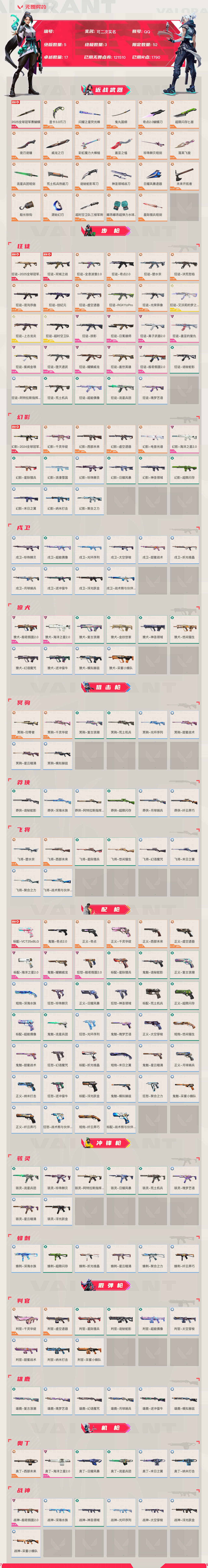 【账号佳】【无畏契约】【编号:41052】【69x8jhfe2】lv176|未定级, 刀皮数量23,呛皮数量168(绝版5限定52终极3卓越17);皮肤资产价值121510,已用r点1790;【刀皮】:近战武器-2025全球冠军赛蝴蝶刀,近战武器-显卡3.0爪刀,近战武器-闪耀之星荧光棒,近战武器-鬼丸国纲,近战武器-奇点2.0蝴蝶刀,近战武器-超限闪存匕首,近战武器-夜刃诡镰,近战武器-威龙之刃,近战武器-彩虹魔力大棒槌,近战武器-盖亚之愠,近战武器-珍珠棘贝短剑,近战武器-落英飞旋,近战武器-流星兵团短剑,近战武器-荒土机兵热能刀,近战武器-诡秘蛇影军刀,近战武器-神圣领域战刀,近战武器-日耀风暴遗器,近战武器-未来开拓者,近战武器-船长铁钩,近战武器-源始幻刃,近战武器-超时空卫队三棱军刺,近战武器-嘟昂嘟昂超弹力水球拳套,近战武器-星际猎兵短剑; 【呛皮】:标配-vct25xblg,狂徒-2025全球冠军赛,狂徒-双城之战,幻影-2024全球冠军赛,鬼魅-奇点2.0,正义-奇点,正义-千灵华绽,正义-西部未来,正义-虚空遗器,判官-千灵华绽,判官-虚空遗器,狂徒-全息波普2.0,狂徒-奇点2.0,狂徒-塑水宗,狂徒-洪荒怒焰,狂徒-混沌序曲,狂徒-创纪元,狂徒-虚空遗器,狂徒-rgx11zpro,狂徒-光荣异象,幻影-千灵华绽,幻影-西部未来,幻影-虚空遗器,幻影-电音光谱,冥驹-归零者,冥驹-千灵华绽,飞将-塑水宗,飞将-西部未来,奥丁-西部未来,狂徒-艾沃莉的梦之翼,狂徒-上古龙炎,狂徒-超时空卫队,标配-海洋之星2.0,鬼魅-耀鳞威龙,狂怒-般若假面2.0,狂徒-掠影,狂徒-日冕雄师,狂徒-离子武器2.0,狂徒-盖亚的复仇,狂徒-紫阙金琅,狂徒-堕天遗武,狂徒-耀鳞威龙,狂徒-盖世英雄,狂徒-般若假面2.0,幻影-海洋之星2.0,獠犬-般若假面2.0,獠犬-海洋之星2.0,奥丁-海洋之星2.0,战神-般若假面2.0,标配-星际猎兵,鬼魅-诡秘蛇影,正义-复古浪潮,骇灵-流星兵团,判官-星际猎兵,判官-诡秘蛇影,雄鹿-复古浪潮,狂徒-诡秘蛇影,幻影-星际猎兵,幻影-浪漫雪国,獠犬-复古浪潮,獠犬-金纹世家,冥驹-复古浪潮,飞将-星际猎兵,莽侠-诡秘蛇影,短炮-深海水族,狂怒-珍珠棘贝,骇灵-珍珠棘贝,蜂刺-深海水族,幻影-珍珠棘贝,戍卫-珍珠棘贝,莽侠-深海水族,战神-深海水族,狂徒-阿特拉斯指挥部,狂徒-荒土机兵,狂徒-超能偶像,狂徒-流星兵团,幻影-日耀风暴,幻影-神圣领域,幻影-超限闪存,戍卫-超能偶像,獠犬-神圣领域,冥驹-荒土机兵,莽侠-阿特拉斯指挥部,莽侠-超限闪存,正义-日耀风暴,正义-超限闪存,鬼魅-流星兵团,标配-荒土机兵,标配-超能偶像,狂怒-神圣领域,骇灵-阿特拉斯指挥部,骇灵-日耀风暴,骇灵-荒土机兵,蜂刺-超限闪存,判官-超能偶像,奥丁-日耀风暴,奥丁-流星兵团,战神-神圣领域,狂徒-瑰梦艺语,幻影-末日之翼,幻影-纳米打击,幻影-聚合之力,戍卫-光环序列,戍卫-太空穿梭,戍卫-甜蜜战术,戍卫-折光棱晶,戍卫-月球哨兵,戍卫-逆冲蛮牛,戍卫-浮光跃金,戍卫-战术熊与伙伴们,獠犬-悠闲猫生,獠犬-幻语魔咒,獠犬-逆冲蛮牛,獠犬-模拟赫兹,獠犬-采蜜小蜂队,冥驹-光环序列,冥驹-甜蜜战术,冥驹-星云暗涌,冥驹-模拟赫兹,莽侠-月球哨兵,莽侠-纤云弄巧,飞将-悠闲猫生,飞将-幻语魔咒,飞将-末日之翼,飞将-聚合之力,飞将-战术熊与伙伴们,正义-太空穿梭,正义-月球哨兵,正义-纳米打击,正义-纤云弄巧,鬼魅-瑰梦艺语,鬼魅-甜蜜战术,鬼魅-星云暗涌,鬼魅-模拟赫兹,鬼魅-采蜜小蜂队,标配-折光棱晶,标配-浮光跃金,标配-战术熊与伙伴们,短炮-悠闲猫生,短炮-末日之翼,短炮-纤云弄巧,狂怒-光环序列,狂怒-幻语魔咒,狂怒-逆冲蛮牛,狂怒-聚合之力,狂怒-战术熊与伙伴们,骇灵-瑰梦艺语,骇灵-星云暗涌,骇灵-浮光跃金,蜂刺-折光棱晶,蜂刺-星云暗涌,蜂刺-聚合之力,蜂刺-纤云弄巧,判官-太空穿梭,判官-甜蜜战术,判官-纳米打击,判官-采蜜小蜂队,雄鹿-瑰梦艺语,雄鹿-幻语魔咒,雄鹿-月球哨兵,雄鹿-逆冲蛮牛,雄鹿-模拟赫兹,奥丁-末日之翼,奥丁-纳米打击,战神-光环序列,战神-太空穿梭,战神-浮光跃金,战神-采蜜小蜂队;【热门卡面】:势不可挡幽影卡面,势不可挡不死鸟卡面,噬影者卡面,布鲁诺中校卡面,势不可挡星礈卡面,西部未来卡面,vct25xblg卡面,贤者之泪卡面,分崩离析卡面,双城之战拥抱卡面,vctcn首冠卡面,捣蛋鬼出没卡面,分神的决斗者卡面,超能偶像卡面,千灵华绽卡面,虹吸式咖啡壶卡面;【热门挂饰】:蓄势待滚挂饰,v25第三幕神话挂饰,双城之战魄罗挂饰,神中神挂饰,西部未来挂饰,好运喵挂饰,vctxblg挂饰,双城之战小蛋糕挂饰,双面黑猫挂饰,终章ko小金人挂饰,奇点2.0挂饰,鱼骨头挂饰,袖珍捷风挂饰,糖葫芦挂饰,超能偶像挂饰,改变者全球冠军赛奖杯挂饰,迷你机甲挂饰,千灵华绽挂饰,珍珠奶茶挂饰,云开见日挂饰,传世莲华挂饰,爱与和平挂饰;【热门喷漆】:战术小伙伴喷漆,不留痕迹喷漆,悲与喜喷漆,捷风跳peek喷漆,西部未来喷漆,真烦人喷漆,vctxblg喷漆,鼻尖上的蝴蝶喷漆,喵呜喷漆,皮蛋呼呼喷漆,奇点2.0喷漆,小丑猫喷漆,超能偶像喷漆,皮蛋萌舞喷漆,开心到爆炸喷漆,别挡我的路喷漆,纸箱小猫喷漆,买装还是存钱喷漆,情绪控制喷漆,双人比心喷漆,双击点赞喷漆;详情看图【皮肤可能含有某些特权皮肤,具体以游戏内实际拥有为准】【qq】【可二次实名】【官方截图】